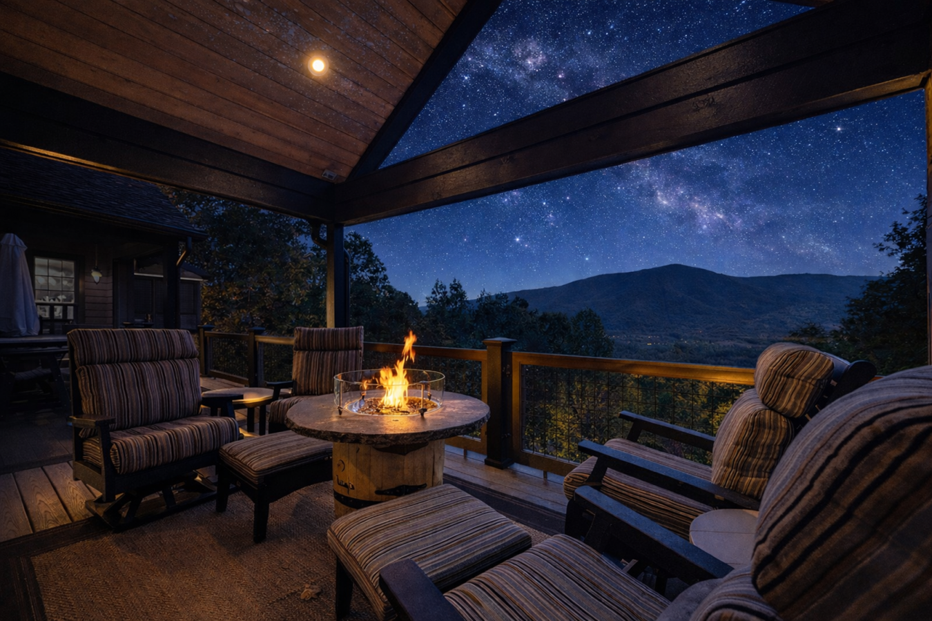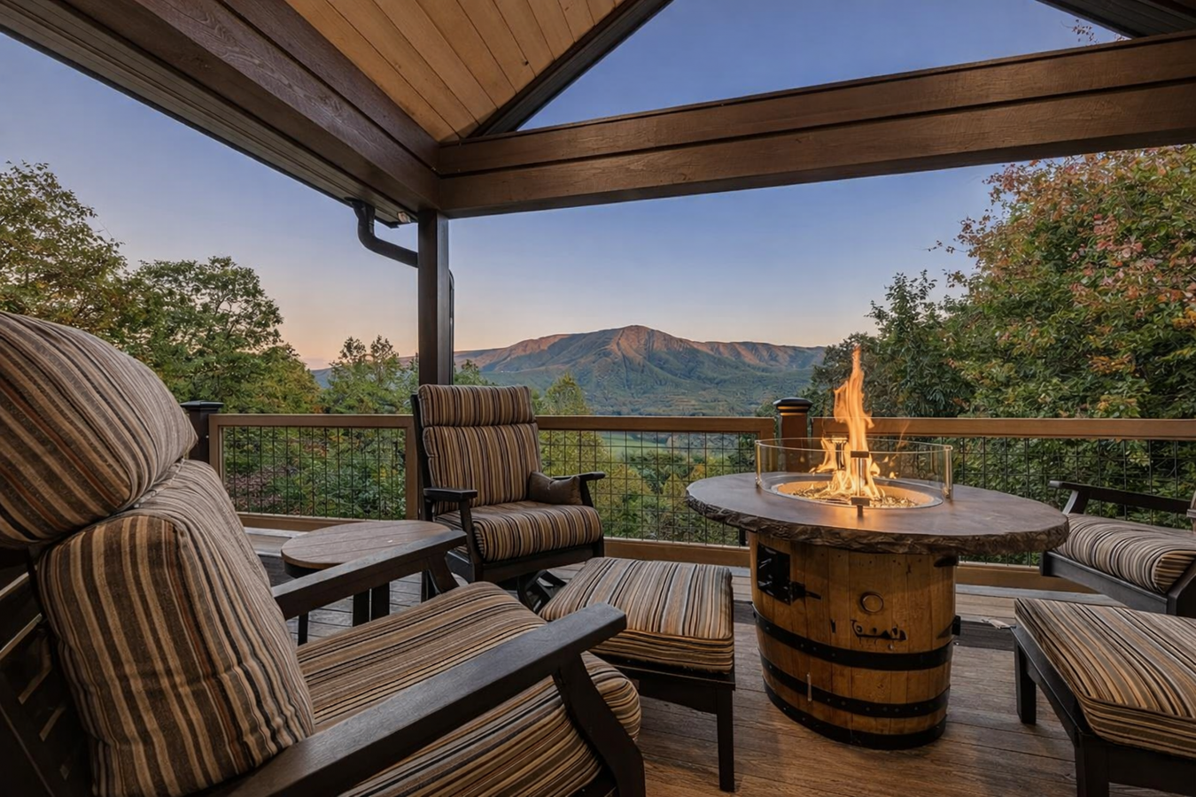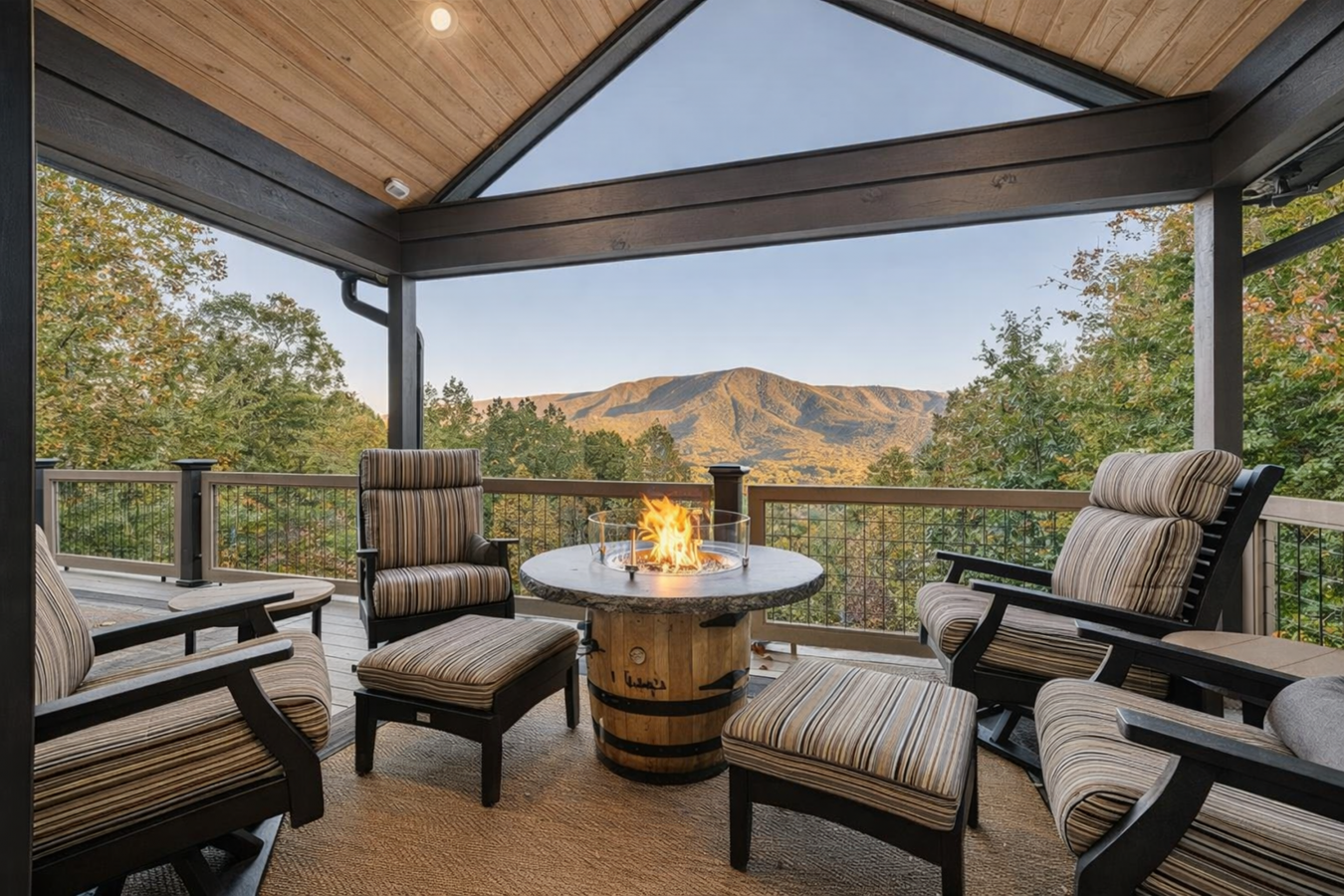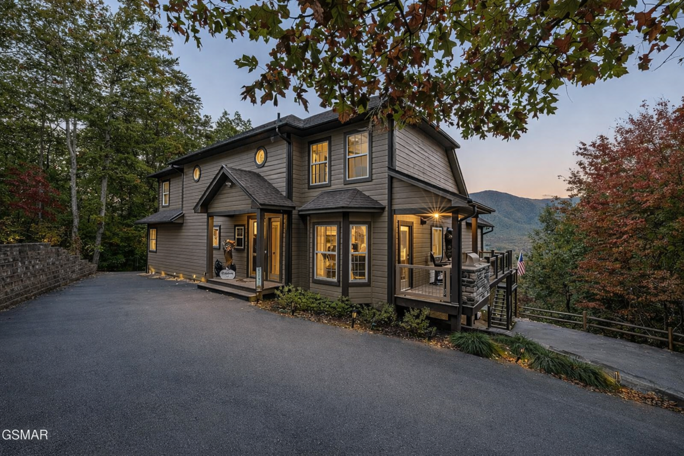 Commanding an elevated position above the valley within an exclusive gated enclave, this extraordinary mountain residence captures sweeping, unobstructed panoramas of the Great Smoky Mountains-views that unfold in quiet grandeur from nearly every room. Thoughtfully and comprehensively reimagined over the past four years, the home has been meticulously transformed by master Amish craftsmen from Ohio, resulting in a residence where timeless artistry meets restrained luxury. Spanning three impeccably finished levels, the home opens to a dramatic great room anchored by a soaring stone fireplace, hand-hewn timber beams, and expansive walls of glass that frame the mountains like living works of art. Every element has been curated to balance scale, warmth, and sophistication. The chefs kitchen is both refined and functional, featuring custom cabinetry, a six-burner Wolf range, JennAir appliances, granite countertops, and a bespoke coffee station-seamlessly flowing into gracious living and dining spaces enhanced by newly added coffered ceilings and rich hardwood floors throughout. Four tranquil bedrooms provide exceptional comfort and privacy, including a newly added lower-level suite created during the renovation. The primary suite is a private sanctuary, offering direct deck access, a striking fireplace feature wall, coffered ceiling detail, and a spa-inspired bath with new tile, dual vanities, and an oversized walk-in shower-designed for restoration and repose. Outdoor living is equally elevated. Multiple decks, rebuilt with Trex and redwood, invite you to take in the ever-changing mountain light, while a covered outdoor kitchen with Fire Magic grill and a boulder-lined fire pit patio create effortless spaces for intimate gatherings. A Generac whole-home generator ensures uninterrupted comfort, complemented by a heated finished garage, whole-home audio, comprehensive security, and an extensive list of premium upgrades available upon request. Located just minutes from the entrance to Great Smoky Mountains National Park-yet deliberately removed from the bustle of the tourist corridor-3460 Quail Way offers a rare combination of seclusion, craftsmanship, and enduring elegance. This is not a short-term rental or speculative investment; it is a legacy property, conceived for those who value privacy, permanence, and exceptional quality. This is mountain living, thoughtfully elevated.