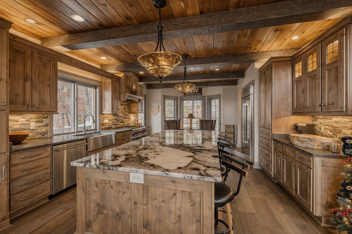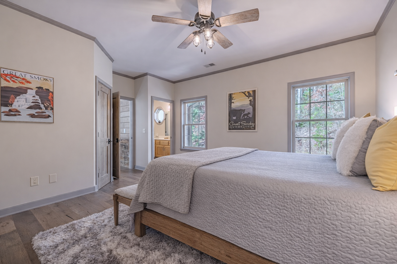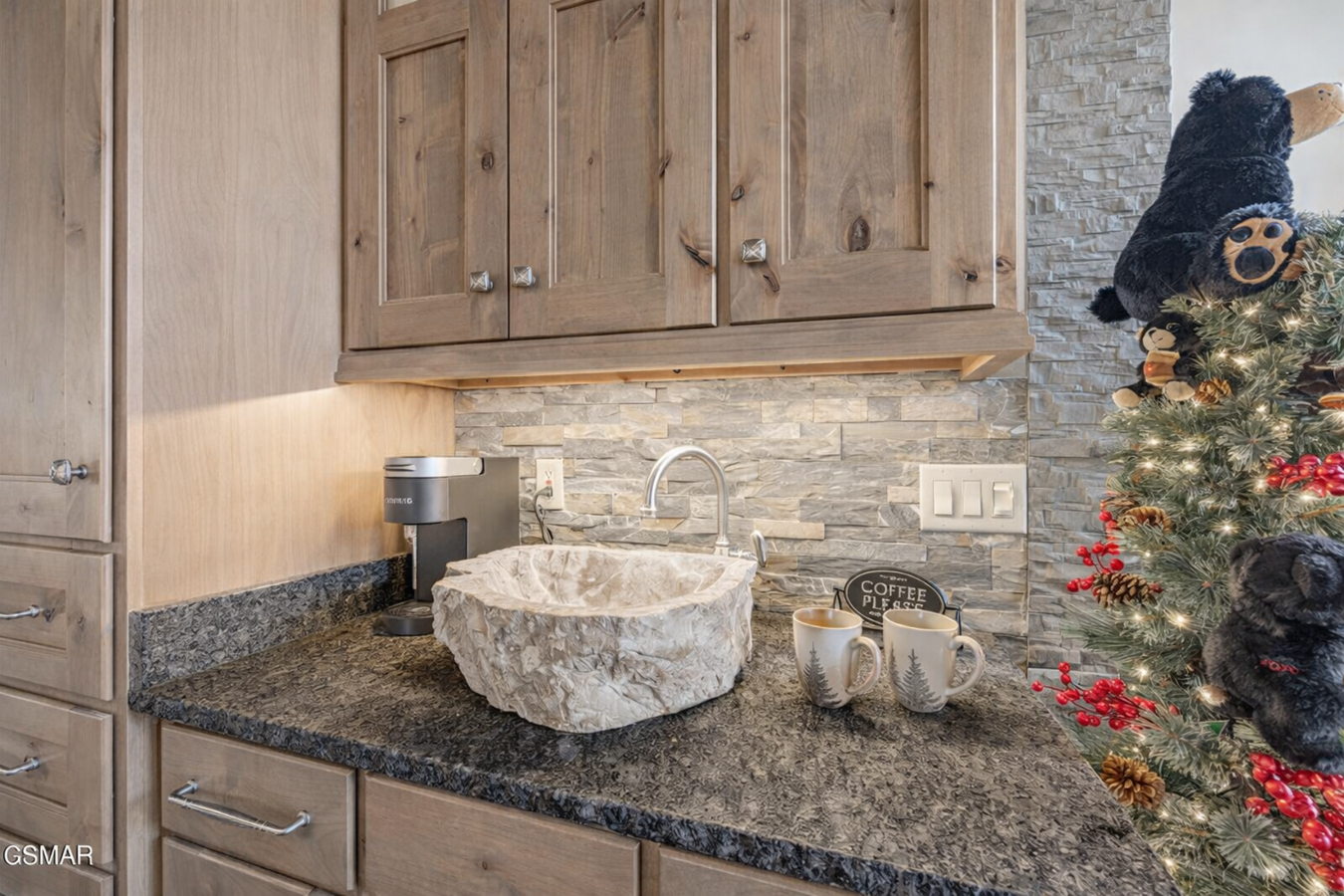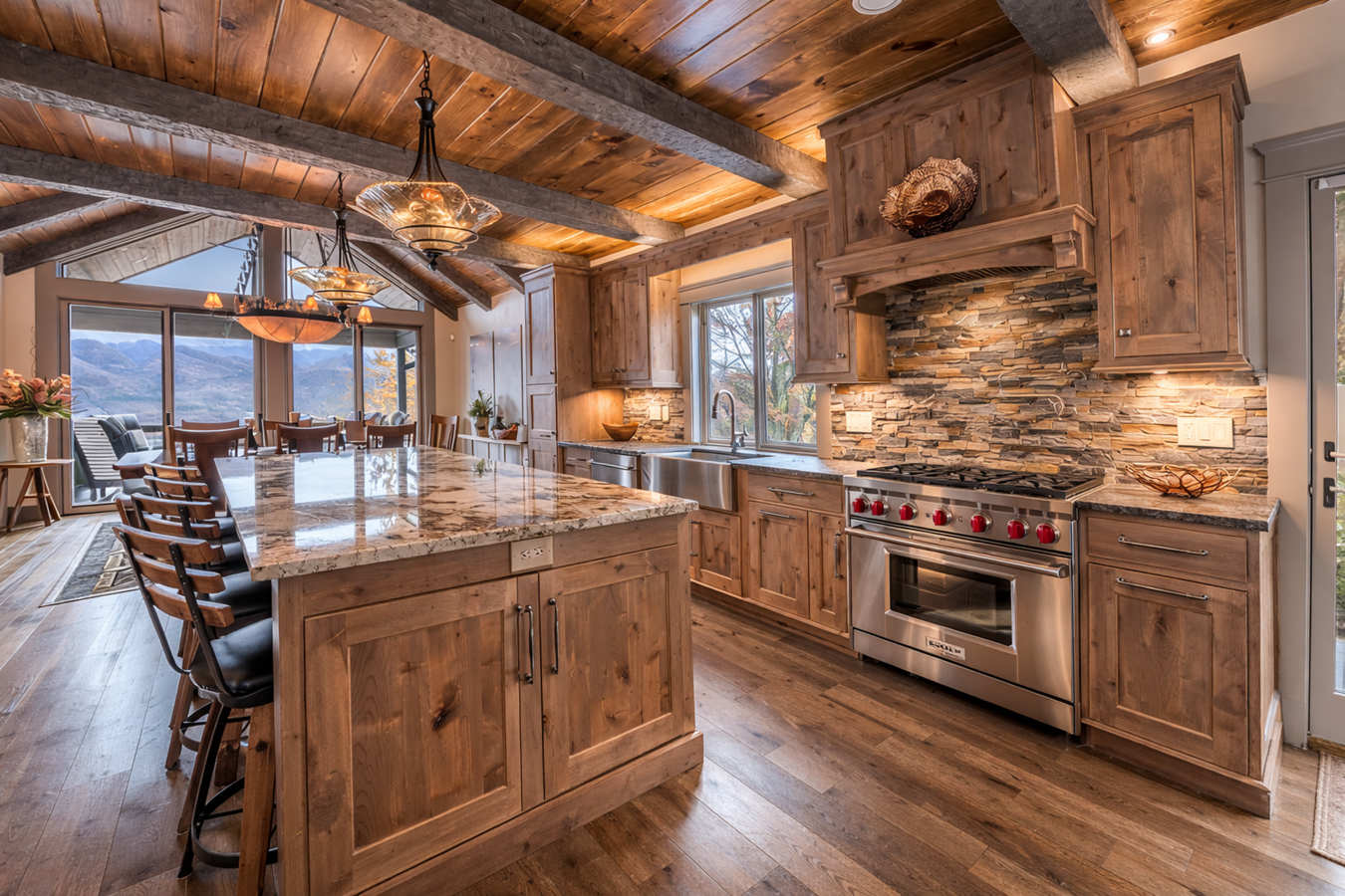Commanding an elevated position above the valley within an exclusive gated enclave, this extraordinary mountain residence captures sweeping, unobstructed panoramas of the Great Smoky Mountains-views that unfold in quiet grandeur from nearly every room. Thoughtfully and comprehensively reimagined over the past four years, the home has been meticulously transformed by master Amish craftsmen from Ohio, resulting in a residence where timeless artistry meets restrained luxury. Spanning three impeccably finished levels, the home opens to a dramatic great room anchored by a soaring stone fireplace, hand-hewn timber beams, and expansive walls of glass that frame the mountains like living works of art. Every element has been curated to balance scale, warmth, and sophistication. The chefs kitchen is both refined and functional, featuring custom cabinetry, a six-burner Wolf range, JennAir appliances, granite countertops, and a bespoke coffee station-seamlessly flowing into gracious living and dining spaces enhanced by newly added coffered ceilings and rich hardwood floors throughout. Four tranquil bedrooms provide exceptional comfort and privacy, including a newly added lower-level suite created during the renovation. The primary suite is a private sanctuary, offering direct deck access, a striking fireplace feature wall, coffered ceiling detail, and a spa-inspired bath with new tile, dual vanities, and an oversized walk-in shower-designed for restoration and repose. Outdoor living is equally elevated. Multiple decks, rebuilt with Trex and redwood, invite you to take in the ever-changing mountain light, while a covered outdoor kitchen with Fire Magic grill and a boulder-lined fire pit patio create effortless spaces for intimate gatherings. A Generac whole-home generator ensures uninterrupted comfort, complemented by a heated finished garage, whole-home audio, comprehensive security, and an extensive list of premium upgrades available upon request. Located just minutes from the entrance to Great Smoky Mountains National Park-yet deliberately removed from the bustle of the tourist corridor-3460 Quail Way offers a rare combination of seclusion, craftsmanship, and enduring elegance. This is not a short-term rental or speculative investment; it is a legacy property, conceived for those who value privacy, permanence, and exceptional quality. This is mountain living, thoughtfully elevated.
