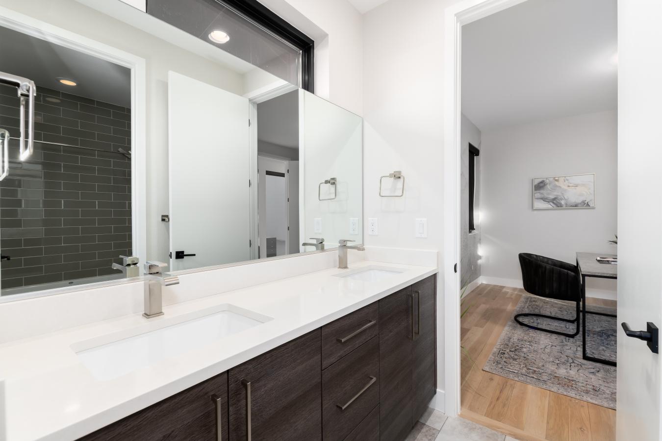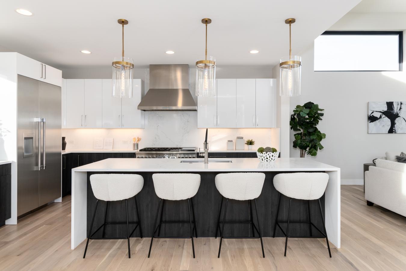 Set on an oversized rim lot in Discovery West, this Prairie-style home by MCD Homes blends clean lines with elevated detail. Inside, 10-foot ceilings and expansive windows frame rim views, filling the open living and dining spaces with natural light. At the heart of the home is a chefs kitchen with Thermador appliances and an oversized butlers pantry, ideal for everyday living and entertaining.