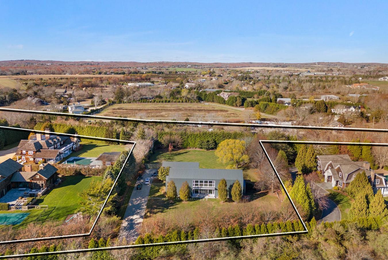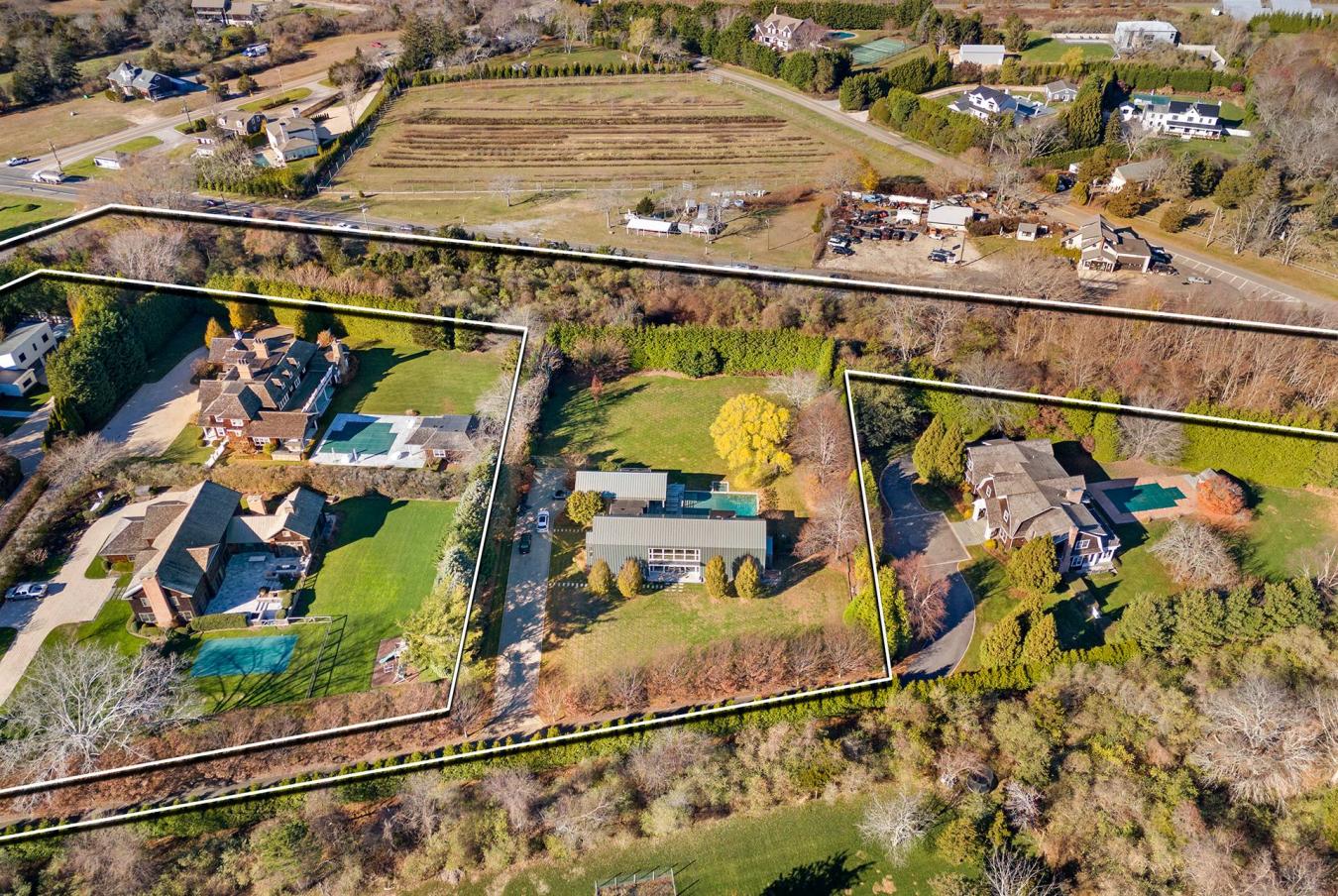 Enter into timeless sophistication with this Modern Barn - a striking architectural statement set on 6/- acres of lush, manicured grounds in the prestigious Water Mill South. Perfectly positioned moments from world-class ocean beaches and village amenities, this Hamptons retreat with a 4.76/- acre agricultural reserve wrapped around the property, offers 4 bedrooms, 4.5 bathrooms. Sleek, high-end appliances, generous prep space, and refined finishes make this kitchen a culinary centerpiece. Floor-to-ceiling Nano glass doors frame the heart of the home, creating expansive indoor-outdoor living space; Great for entertaining! Outdoors, a heated gunite pool with cascading waterfalls and a spa invites relaxation beneath the Hamptons sky. The primary suite serves as a private sanctuary, complete with a dedicated office. Upstairs, a sunlit lounge offers a sophisticated setting for leisure or entertaining, flanked by three luxurious ensuite bedrooms. The accessory structure enhances the propertys appeal, featuring a cozy studio, an upper loft area, full bath, and inviting family room, connected to the 2-car garage. The unfinished lower level has potential for spacious overflow space, including a gym, a media room and 2 additional bonus rooms. Thoughtfully curated in modern design, this South of the Highway residence embodies Hamptons Luxury and includes exponential opportunities on the agricultural reserve. The residential home sits on 1.21/- acres and the agricultural reserve is an overall 4.76/- acres, which completes this package, offering a total of 6/- acres.