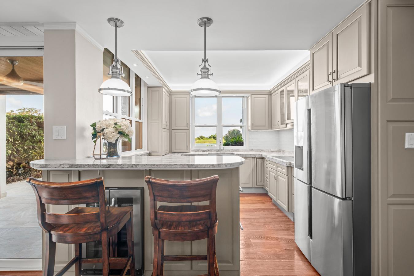 Welcome to Sunrise Beach! This beautifully maintained waterfront home offers a bright and open floor plan featuring 4 spacious bedrooms, 3 full bathrooms, and a dedicated home office. The meticulously updated kitchen showcases high-end finishes, premium appliances, and a large center island perfect for everyday living and entertaining.