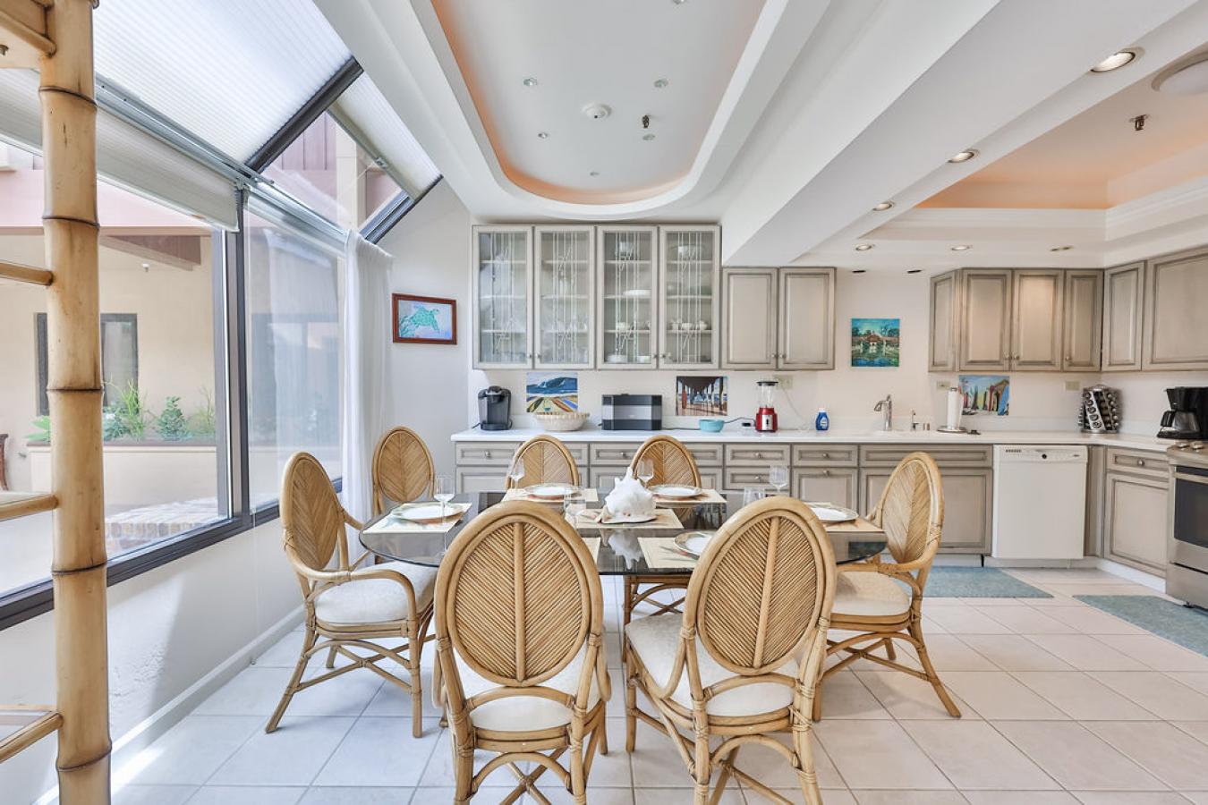 No expense was spared in the creation of this exceptional, one-of-a-kind oceanfront residence, offered completely turnkey with imported furnishings, curated artwork, rugs, and fully appointed kitchen and dining accoutrements. Originally purchased new in 2016, and formerly the model unit, the home underwent a meticulous 3.5-year renovation, resulting in a truly bespoke coastal retreat. This first-floor, direct ocean-facing unit features a private gated garden in Building One, protected by natural reefs and offering serene views across lush landscaping, a freshwater pond, and the sea beyond. Entry is through a custom handcrafted 2.5" steel-core door clad in cedar, set over an ipe threshold, designed to withstand hurricane-force conditions. The residence showcases the highest level of craftsmanship throughout: Belgian hurricane-rated double-pane glass with Argon gas, electric storm shutters, custom cedar wainscoting, millwork, built-ins, and trim, Farrow & Ball wallpaper accents, and ceilings ranging from 9--10 with Level 4 and 5 finishes. All interior doors are custom solid cedar, 8 high, with Italian magnetic retractable hardware. Designed as a fully integrated smart home, features include Hunter Douglas electric shades, Nest thermostats, U by Moen digital showers, WiFi-enabled appliances, hidden camera surveillance, remote storm shutters and screens, Cloud Edge doorbell, August WiFi deadbolt, hardwired 1GB WiFi nodes throughout, and lead-lined walls for sound and EMF insulation. The chefs kitchen is equipped with imported stone countertops from Italy, Turkey, and Kashmir, handmade Spanish tile backsplash, Thermador induction cooktop with retractable venting, double ovens, Fisher & Paykel dishwashers, multiple refrigerators, wine fridge, motion-activated faucet, custom cedar cabinetry, pantry, and outdoor buffet area--all fully stocked and included. Living spaces flow seamlessly to a covered patio with cedar-planked ceiling, electric sunscreens, ceiling fans, and a private landscaped garden with advanced drainage, irrigation, and lighting. A Dimplex Optimist fireplace--the only one of its kind in the Caribbean--features a hidden television behind a one-way mirror. The primary suite offers a custom walk-in cedar closet with layered lighting, built-ins, and displays, along with a spa-inspired bath featuring dual digital showers, double vanities, and extensive storage. Two additional guest bedrooms, a guest bath, powder room, and dedicated laundry complete the layout. Additional highlights include whole-home water filtration and softener, tankless hot water, dual-zone central AC with insulated ducting, generator-ready wiring, assigned parking with golf cart space, and extensive custom storage throughout. A rare opportunity to own an irreplaceable, design-forward oceanfront residence in the Caribbean.