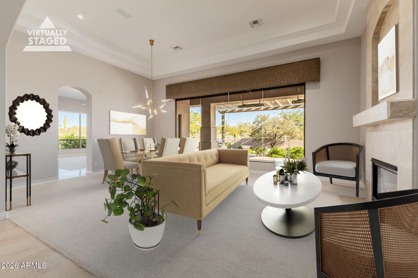 Prepare to be amazed! Owned solar APS bills average 23/month for the last 12 months. Check out this fantastic 4-bed, 3-bath residence now for sale in Encanto Norte! A stunning facade with tasteful stone accents, a manicured desert landscape, a 3-car garage with built-in cabinets, and a paver driveway are just the beginning. Come inside to discover a spacious dining/living area and family room, each with its own fireplace to make sure to stay warm & cozy. High ceilings, soft carpet in all the right places, modern light fixtures, and a neutral palette throughout! The gorgeous kitchen offers everything the aspiring chef needs: ample cabinetry, granite counters, a walk-in pantry, tile backsplash, stainless steel appliances, a prep island w/a breakfast bar, and a breakfast nook w/a lovely bay window. Relax & unwind in the grand primary suite, showcasing direct outdoor access, a walk-in closet, and a lavish bath with dual vanities & a jetted tub. Other bedrooms enjoy various features such as wood-look floors, plantation shutters, and access to a Jack & Jill bath! You will also find a cozy open den, ideal for an office or reading nook. The sizeable laundry room also comes equipped with extra cabinet space and a utility sink. Lastly, the wonderful backyard oasis with no neighbors behind includes a covered patio with commercial-grade heaters, an extended seating area with an attached pergola, a built-in BBQ, a freestanding hot tub, and a sparkling blue saltwater pool with a rock waterfall! The home of your dreams is here; hurry and act now!