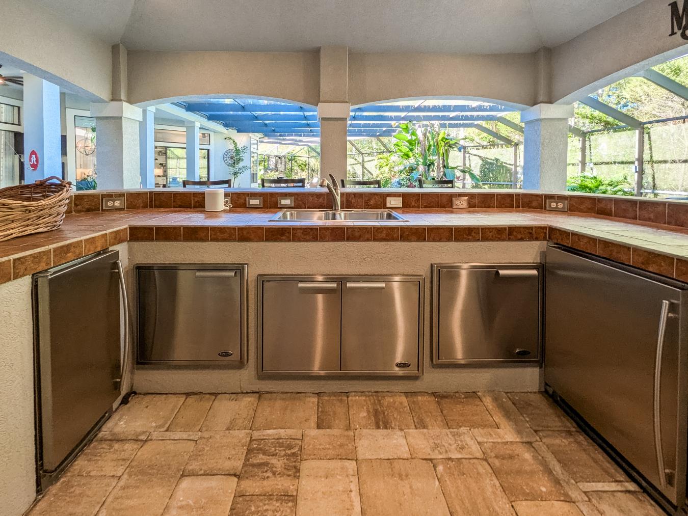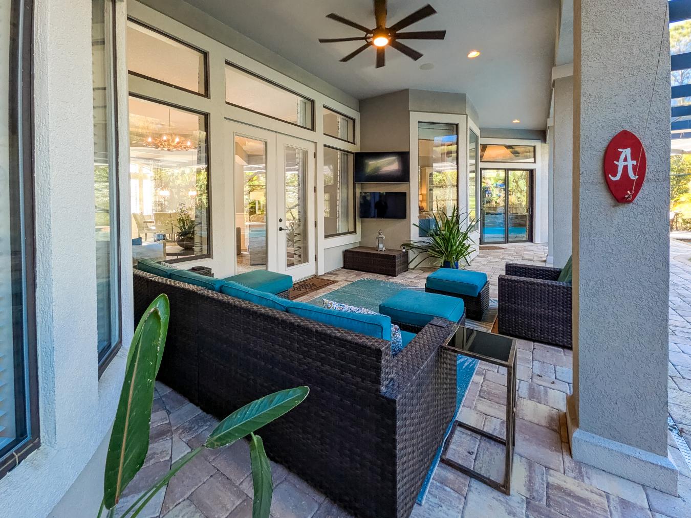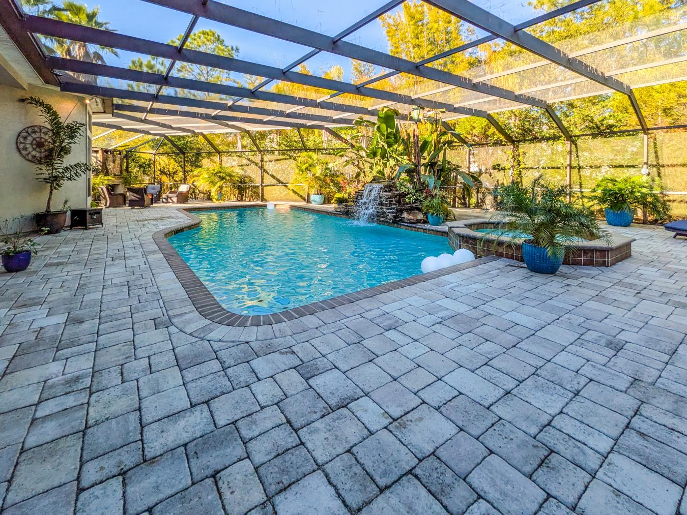 Welcome to luxury living in Highland Glen, a gated community with no CDD fees, where this exceptional home sits on an estate-sized .78-acre lot. Built for entertaining, the true showpiece is the resort-style backyard-featuring a summer kitchen and cabana, heated pool with a custom rock waterfall, hot tub, putting green, outdoor fireplace, pool bath, and outdoor shower.