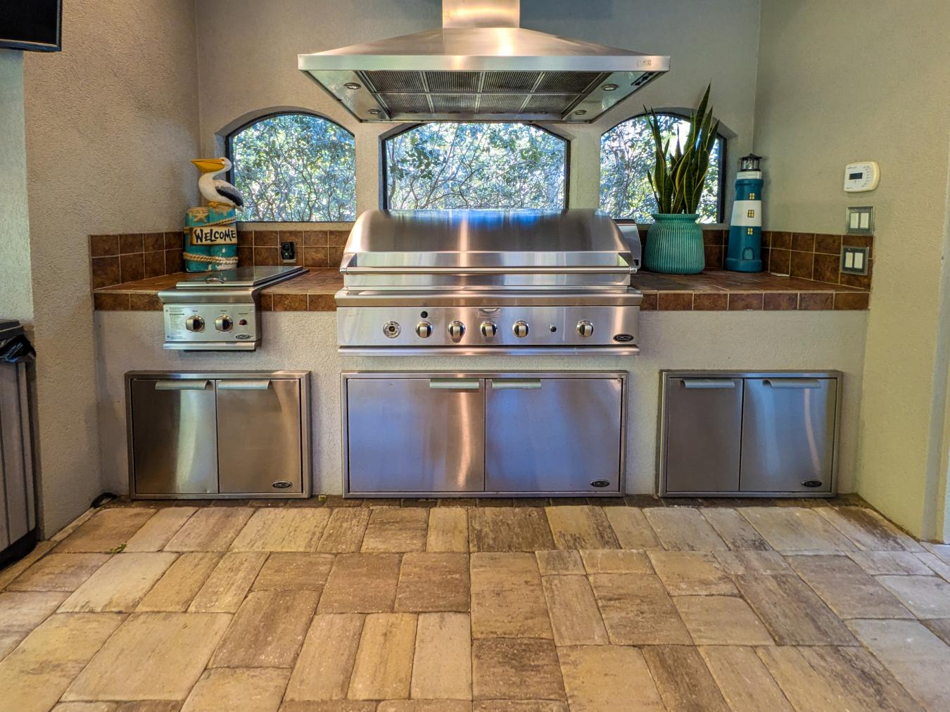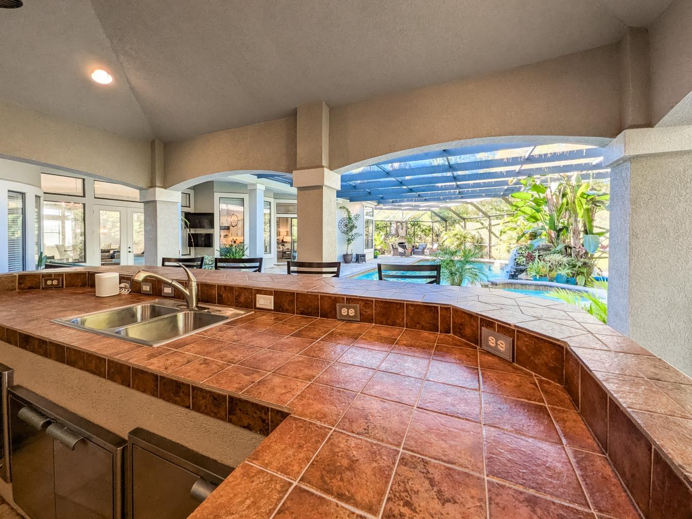 Welcome to luxury living in Highland Glen, a gated community with no CDD fees, where this exceptional home sits on an estate-sized .78-acre lot. Built for entertaining, the true showpiece is the resort-style backyard-featuring a summer kitchen and cabana, heated pool with a custom rock waterfall, hot tub, putting green, outdoor fireplace, pool bath, and outdoor shower. Your private oasis awaits! Inside, soaring ceilings fill the home with natural light, while crown molding and custom built-ins add timeless elegance. The chefs kitchen is anchored by a Sub-Zero refrigerator, a breakfast nook with a bay window, and gorgeous views. Additional highlights include a luxurious primary suite with stunning custom closets, a private office with a Murphy bed, a reverse osmosis system, an upstairs loft with wet bar, plus your own gym and sauna! The oversized three-car garage offers cabinetry, a water softener, and utility sink. Pre-appraised and full of value, this home is truly one-of-a-kind!