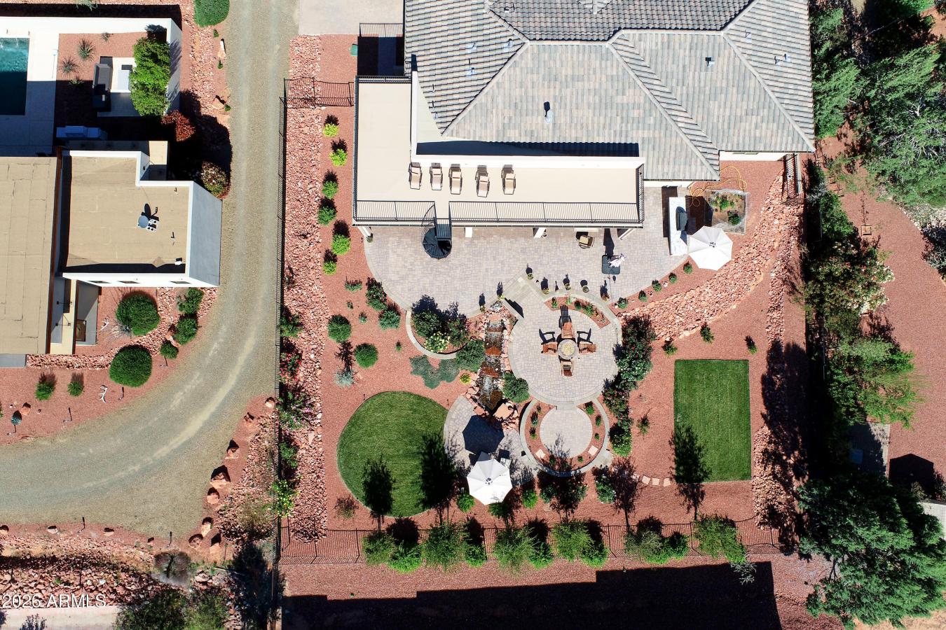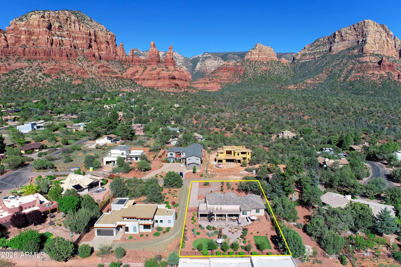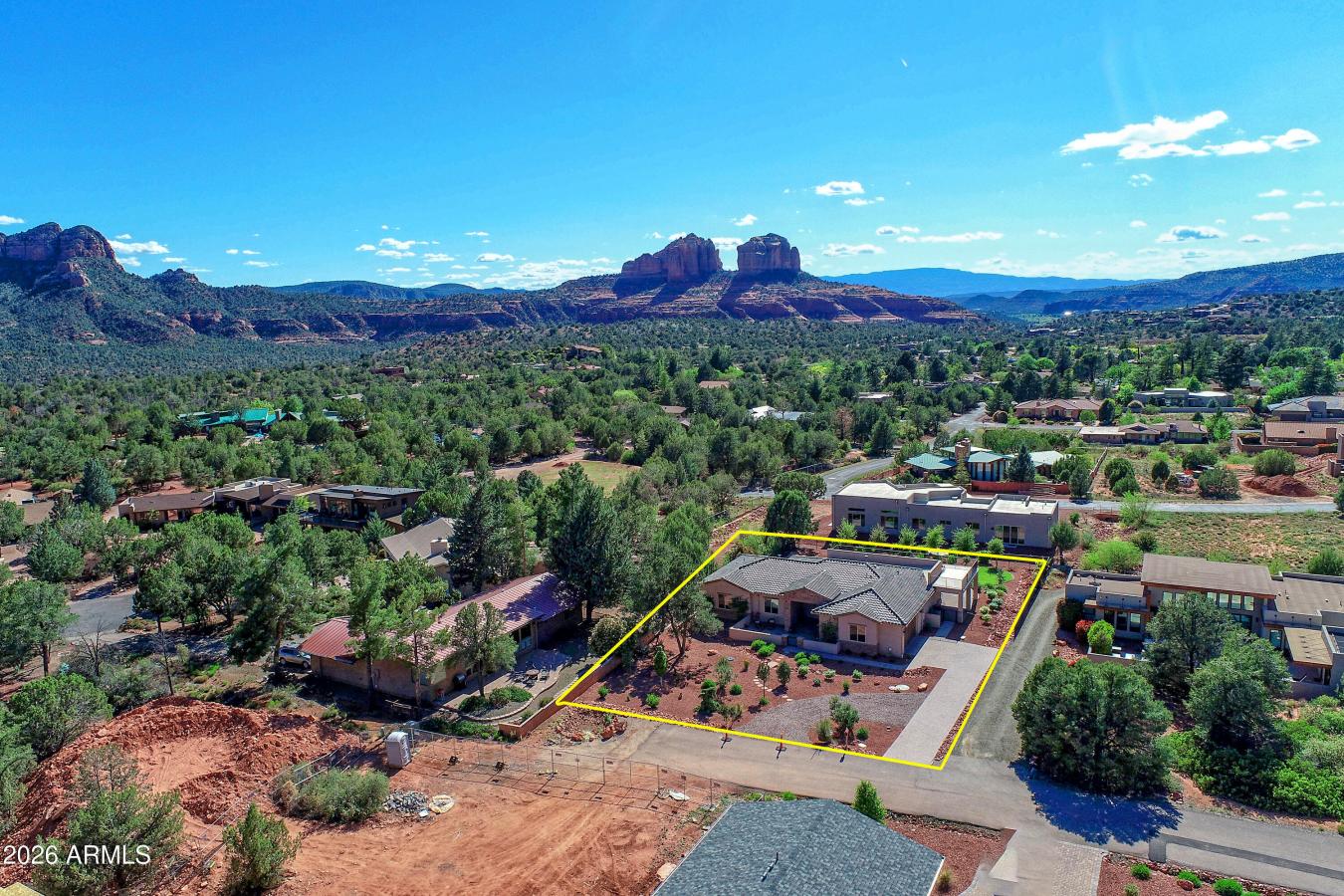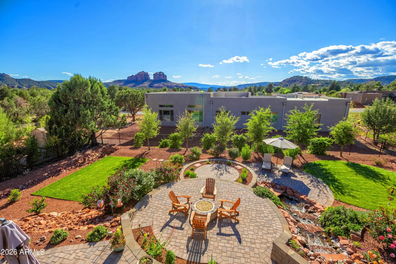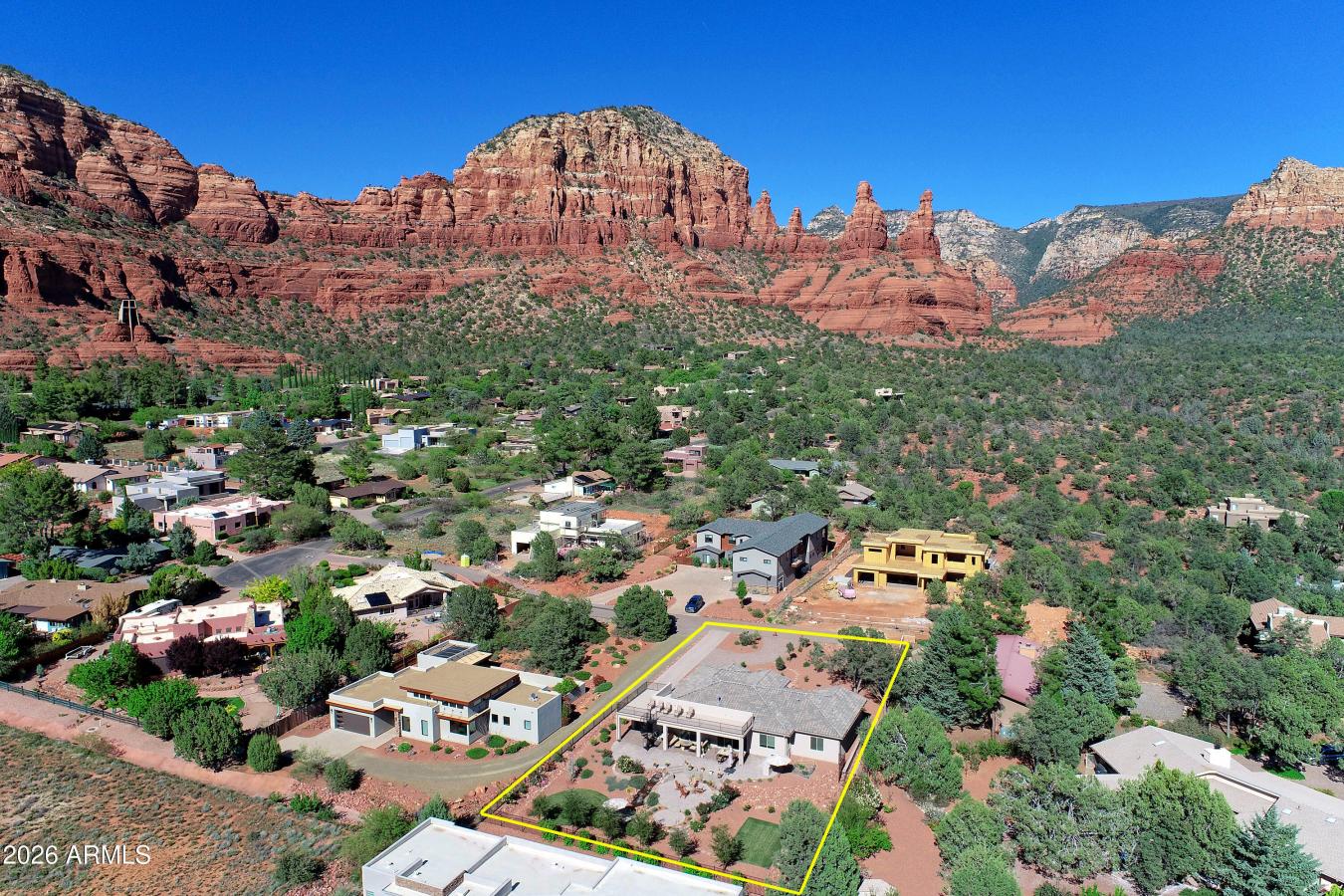 Set against the dramatic beauty of Sedona, 3 year old contemporary Single Level- STR Friendly. This home exudes elevated desert living: modern design, natural textures, & iconic red rock views converge in effortless harmony. Thoughtfully designed at approximately 2, 210 square feet, this 4-bedroom home delivers the perfect balance of sophistication, comfort, and connection to the landscape. From the moment you arrive, the home makes a quiet yet confident statement. Gorgeous, professionally designed landscaping frames the property, blending native plantings with clean architectural lines. A soothing water feature sets a tranquil tone, hinting at the sanctuary that awaits inside. With no HOA restrictions, the lifestyle here is refreshingly flexible ideal for full-time living, a 2nd home or a refined Sedona retreat. Step inside to an open and bright great room concept that immediately draws your eye outward to the red rock backdrop. Expansive windows and glass doors flood the space with natural light, creating a seamless dialogue between indoors and out. Earth-tone interior finishes echo the surrounding landscape, lending warmth and calm to the contemporary aesthetic. The result is a home that feels grounded, organic, and undeniably Sedona. At the heart of the home, the chefs kitchen is both beautiful and functional designed for gatherings, quiet mornings, and everything in between. Generous counter space, quality cabinetry, and a layout that flows naturally into the great room make entertaining effortless. Whether hosting friends after a day on the trails or preparing an intimate dinner at sunset, this kitchen supports a lifestyle that values connection and ease. The split floor plan offers privacy and balance, with the primary suite thoughtfully separated from the guest bedrooms. The primary retreat is a calming escape, perfectly positioned to take advantage of views and light, while the additional bedrooms provide comfortable accommodations for family or visitors. A dedicated office adds versatility ideal for remote work, creative pursuits, or a quiet reading space inspired by the surrounding beauty. Outdoor living is where this home truly shines. The spacious, multi-level backyard has been curated to maximize both usability and visual impact. A paver patio anchors the space, creating a natural gathering area for dining and lounging. The built-in outdoor BBQ invites relaxed entertaining, while multiple seating zones allow you to follow the sun or the shade throughout the day. Above it all, the expansive sky deck is the crown jewel. From here, youll enjoy breathtaking, unobstructed views of Sedonas most iconic red rock formations: an ever-changing canvas of color, light, and shadow. Morning coffee feels ceremonial. Evenings become unforgettable as the rocks glow at sunset and the stars emerge in the clear desert sky. Centrally located, this home offers quick access to Sedonas renowned hiking trails, restaurants, galleries, and wellness experiences, while still maintaining a sense of retreat and privacy. Its a rare combination: contemporary design, inspiring outdoor spaces, red rock views, and freedom from HOA constraints all in one beautifully executed property. This is more than a home. Its a place to slow down, breathe deeply, and live fully immersed in one of the most iconic landscapes in the world.