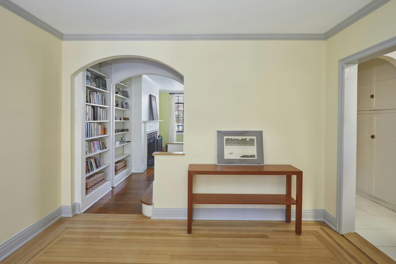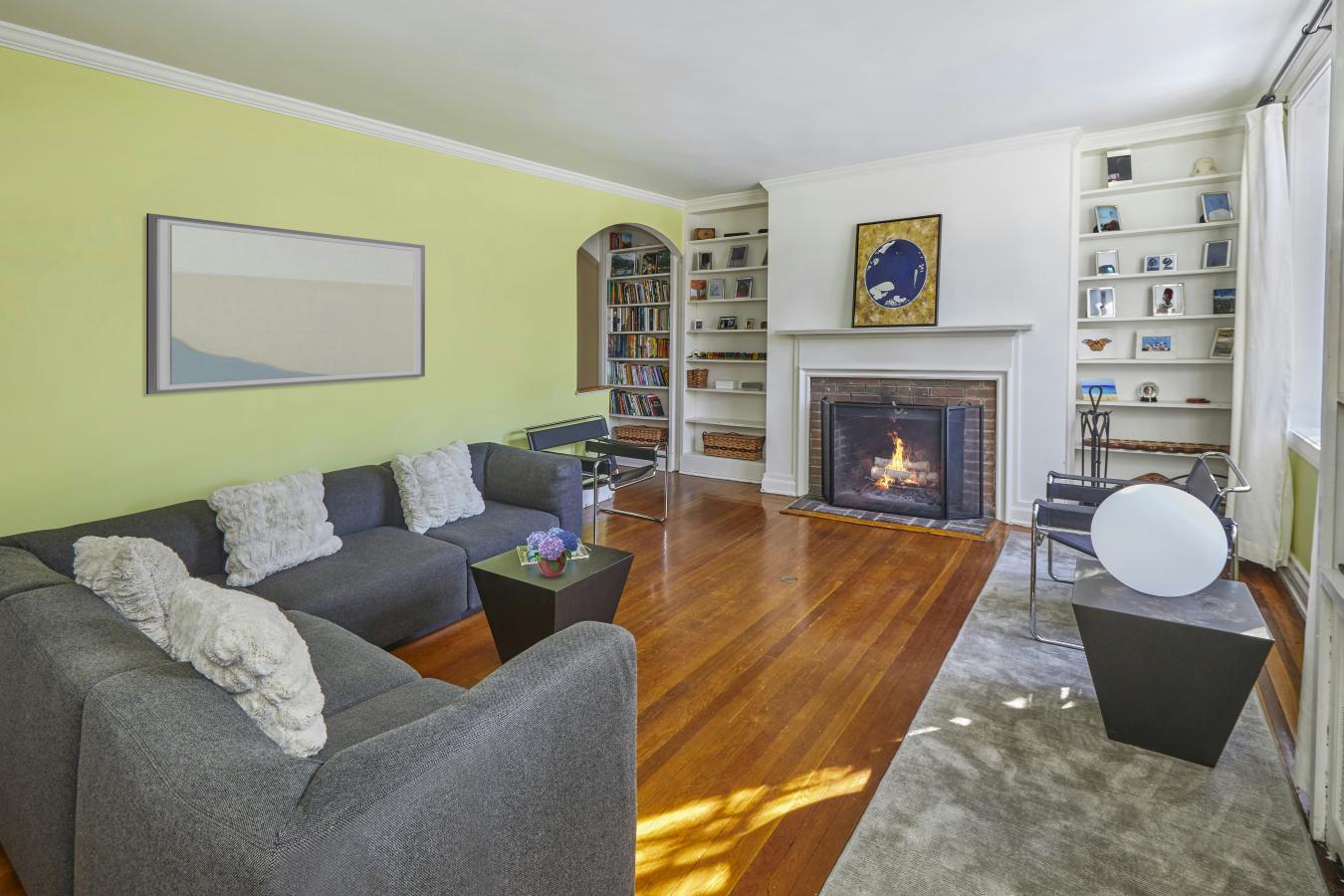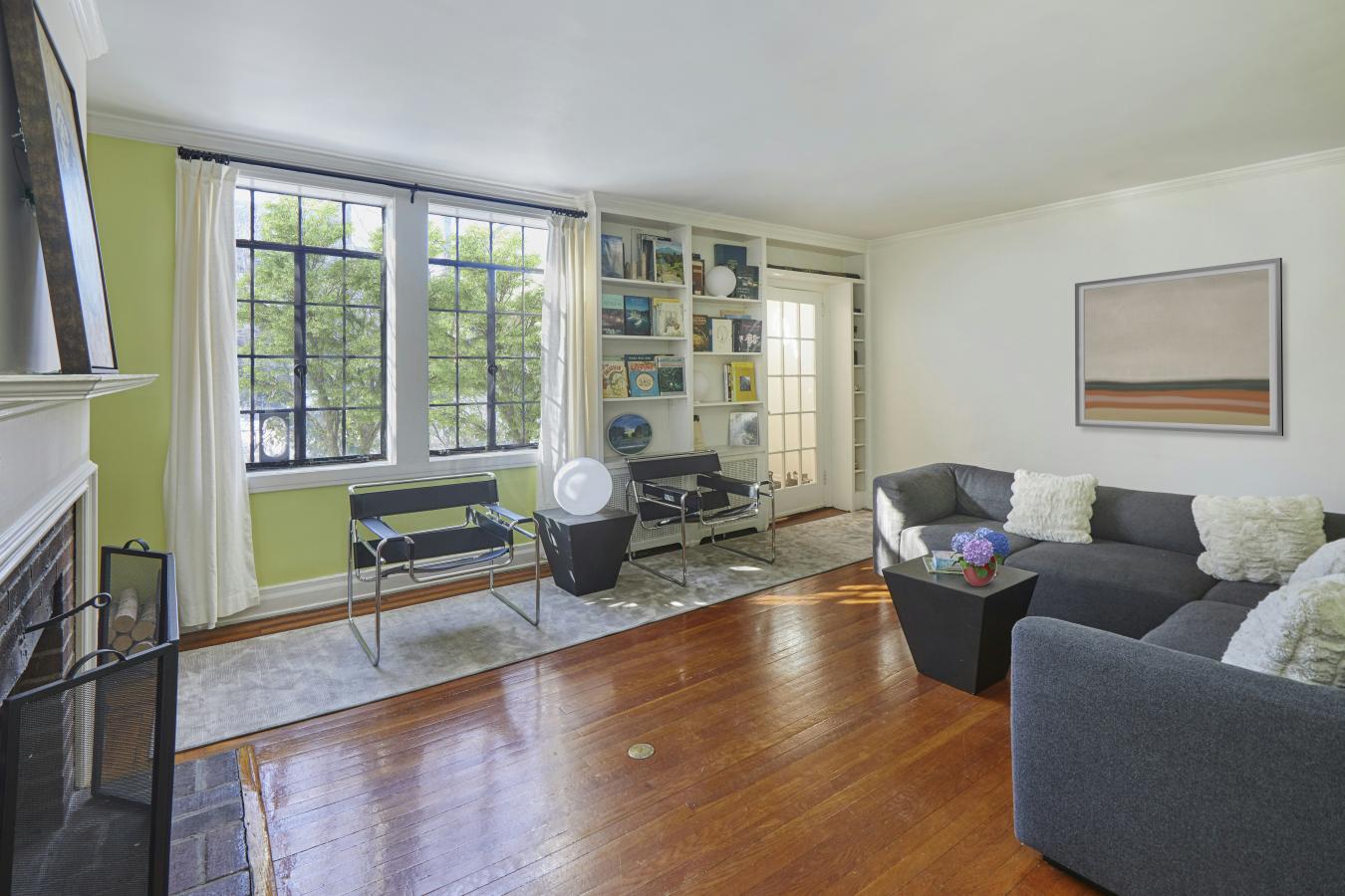 This beautiful English Garden Home, built in 1935, is located on one of the prettiest blocks in the coveted Historic District of Jackson Heights. Not only is this home beautiful, the owners have renovated extensively. The front of the house boasts a delightful rose garden and mature cherry tree, and through the front door is an inviting living room with fireplace and built-in bookshelves.