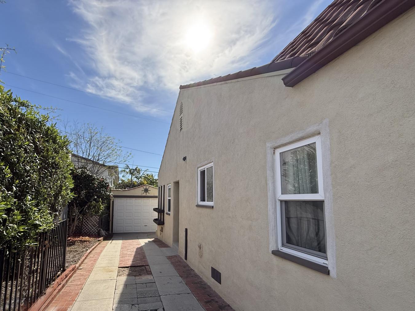 Blocks from the beach and perched on the highest lot on Miramar Dr., this charming 1930s Spanish home is a rare coastal opportunity-ideal for a builder, investor, or end user seeking ocean views and timeless character. Currently move-in ready, the property captures stunning sunset views from its thoughtfully designed outdoor living spaces. Beyond the gated entry, the professionally turfed, low-maintenance front yard welcomes you with a private outdoor retreat. Enjoy evenings gathered around the gas fire pit with custom-built seating, soaking in ocean vistas with your favorite glass of wine. The front yard offers ample space for pets and effortless entertaining. Inside, the home beautifully preserves its historic charm, featuring original coved ceilings and vintage bathroom tile, seamlessly complemented by tasteful modern upgrades. This immaculate 3-bedroom, 2-bath residence includes energy-efficient windows, French doors, hardwood floors, central heating and A/C, updated plumbing, and a whole-home water filtration system. The galley kitchen is appointed with granite countertops, a dishwasher, and updated appliances. The spacious walk-in steam shower adds a luxurious touch. Approximately 200 square feet of unregistered upper-level bonus space offers a versatile loft/dormer area with peek-a-boo ocean views-comfortably arranged with twin beds, perfect for guests or a creative retreat. Improvements include permitted windows, Berber carpet, updated lighting, ventilation, and installed hookups for an outdoor Jacuzzi. Complete the beach lifestyle with a separate outdoor shower and lush landscaping featuring 50-foot bamboo trees and native plants, providing privacy, shade, and an inviting coastal ambiance.