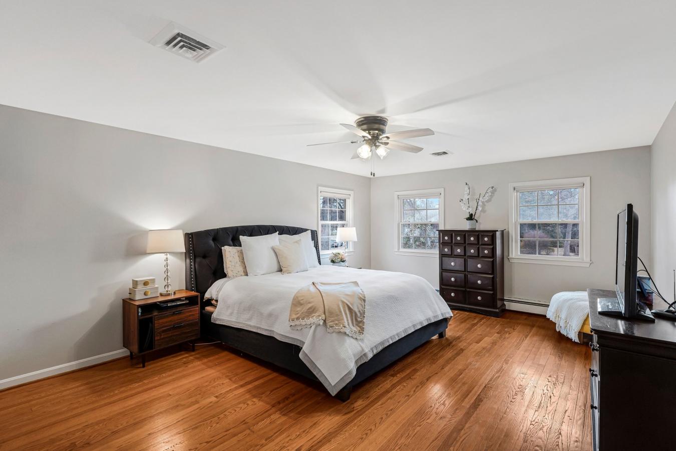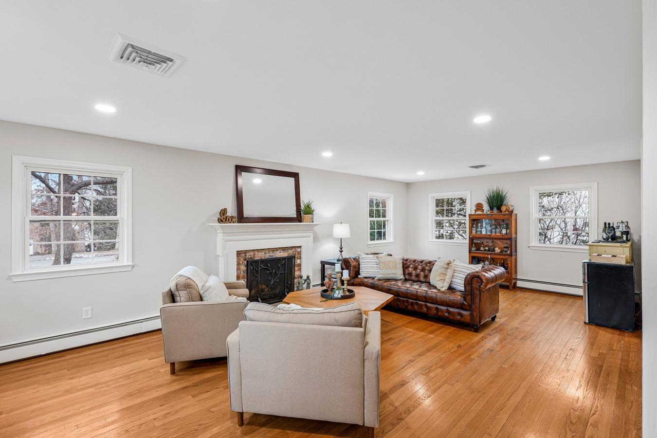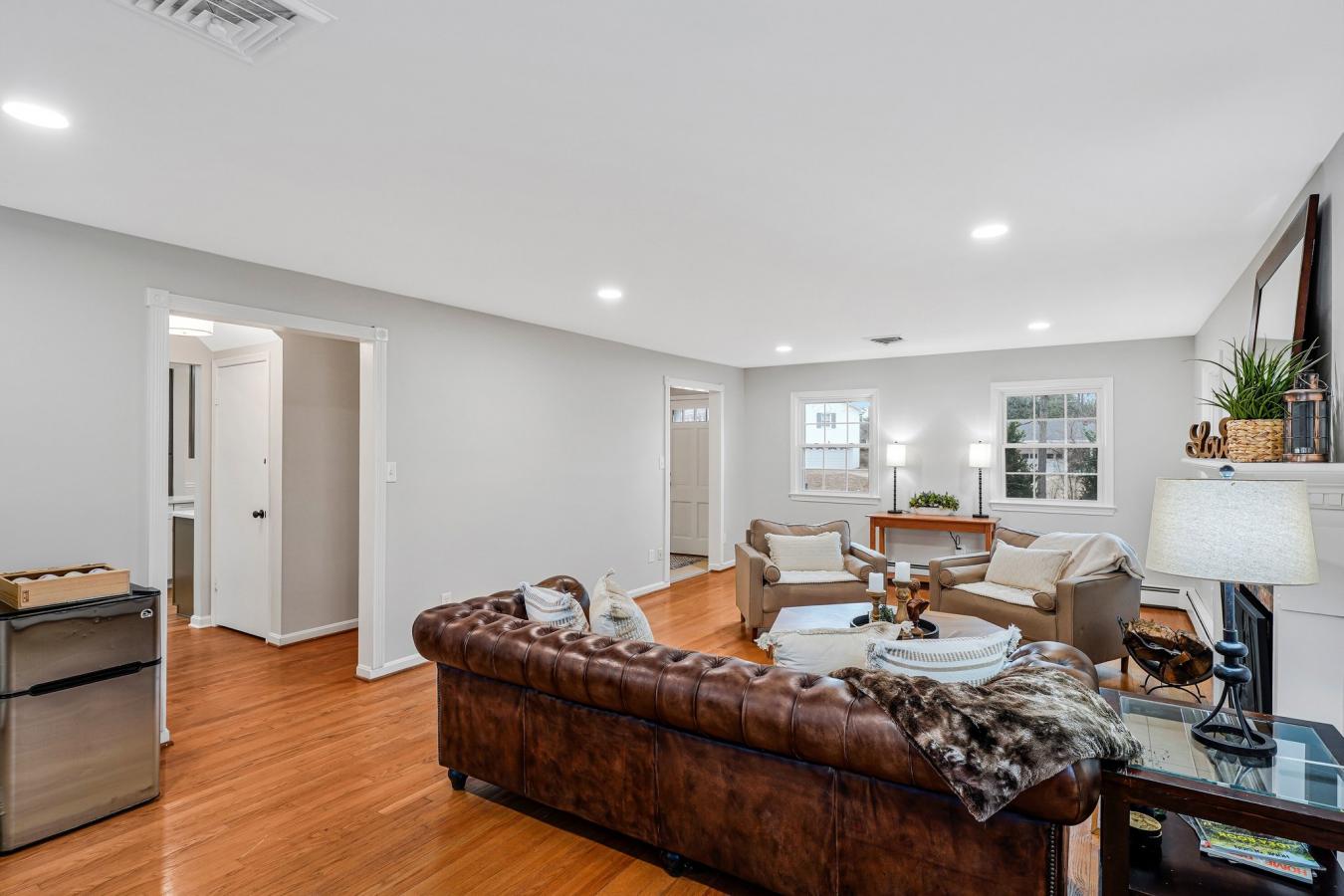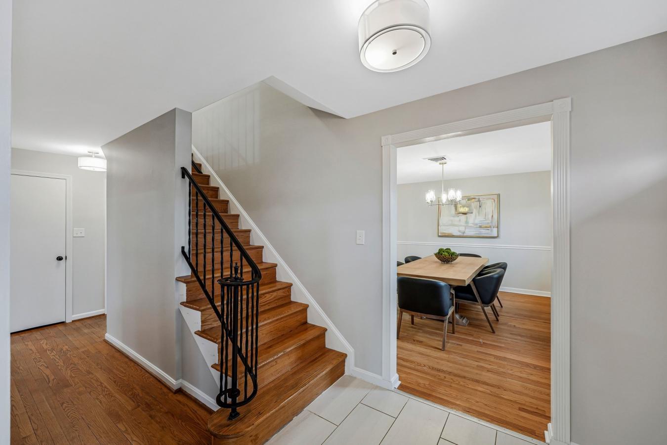 Fully remodeled and beautifully maintained, this 4-bedroom plus guest room, 3.5-bath home offers 3,526 square feet on a .32-acre cul-de-sac lot in the desirable McLean Hamlet community of McLean. The main level showcases a stunning top-to-bottom renovated eat-in kitchen with abundant cabinetry, new stainless steel appliances, and seamless flow into the spacious dining area and family room. The dining area is accented with an elegant chandelier and chair rail molding, while the bright living room features large windows and a wood-burning fireplace-ideal for entertaining or a second gathering space. A renovated center hall powder room adds convenience, and the sun-filled family room offers a second fireplace, exposed beams, and sliding doors leading to the oversized deck and private backyard. Upstairs, the spacious owners suite includes multiple windows, a walk-in closet, and a beautifully renovated en-suite bath with double vanity and glass-enclosed subway-tiled shower. Three additional bedrooms offer generous closet space and share an updated full bath with tub/shower combination and added storage. Hardwood floors run throughout the main and upper levels, enhancing the homes warmth and timeless appeal. The walk-up lower level provides expansive flex space with new flooring, a third wood-burning fireplace, large windows, a guest room, renovated full bath, laundry room, and abundant storage. Additional improvements include a professionally installed radon mitigation system, upgraded electrical panel, replaced gas lines to the meter, custom lighting throughout, designer interior hardware, newer double-pane windows, boiler heat plus HVAC (2009), and three professionally inspected fireplaces. The home is located in the sought-after McLean Hamlet community, known for its tree-lined streets, sidewalks, and streetlights. Optional membership to the McLean Hamlet Swim & Tennis Club offers extensive social and recreational activities. The location is just one mile from Spring Hill Elementary and Rec Center, approximately 2.5 miles to the Silver Line Metro, and minutes to Tysons Corner with easy access to major commuter routes including I-495, Route 7, Route 123, and the Dulles Toll Road.
