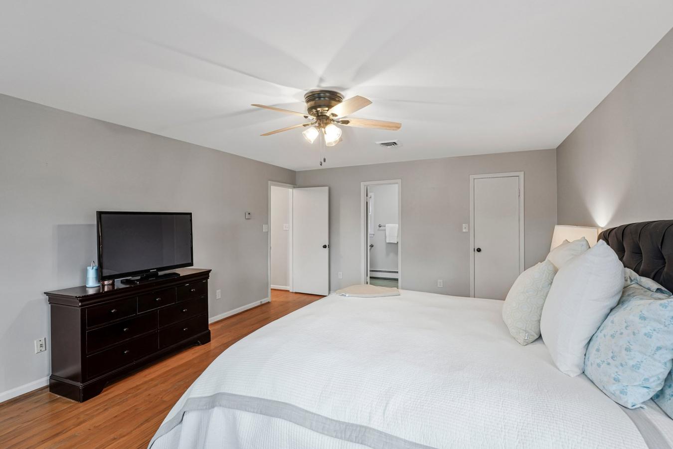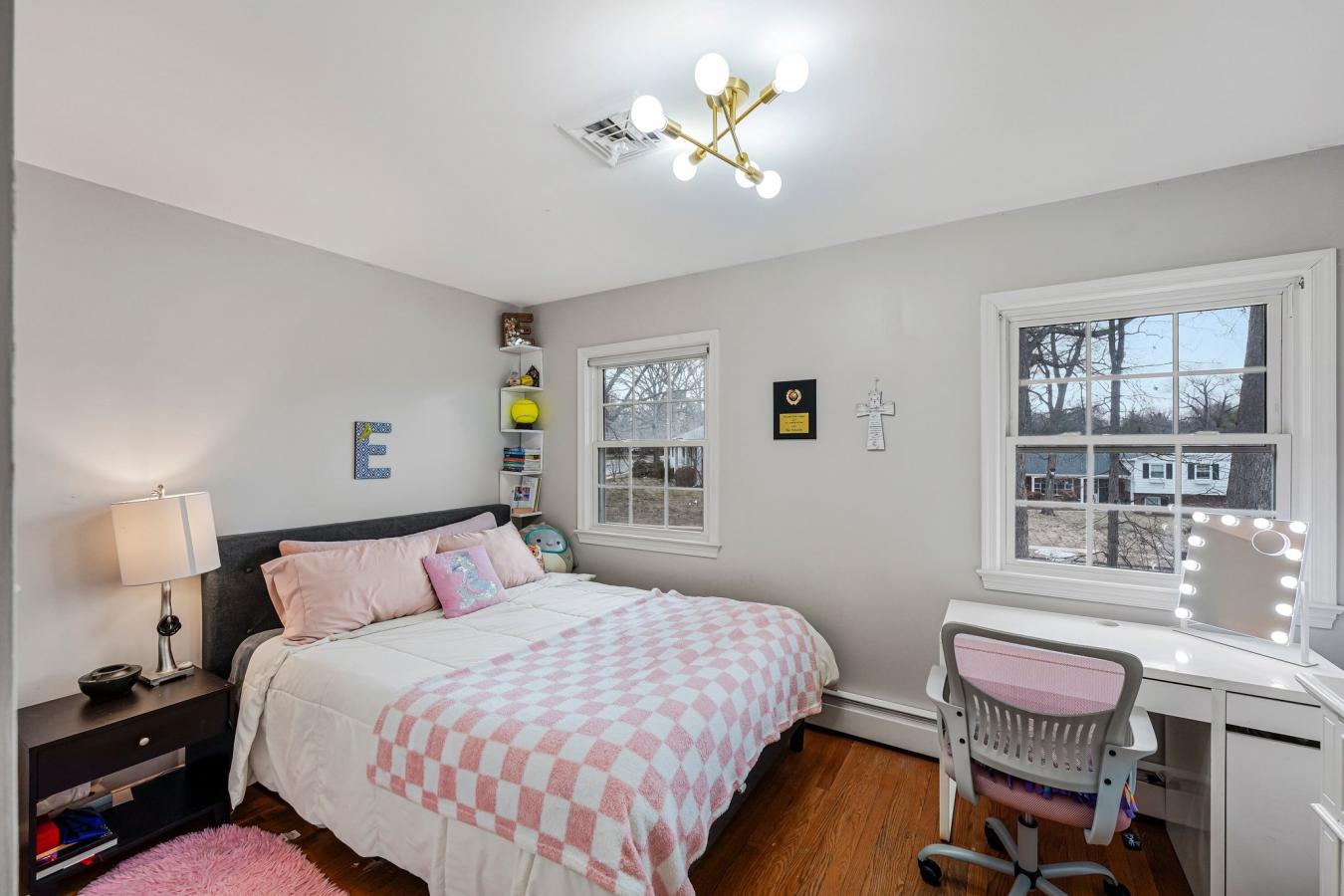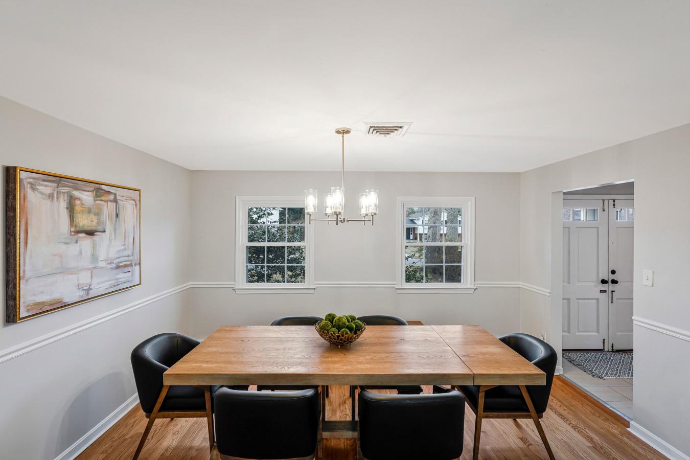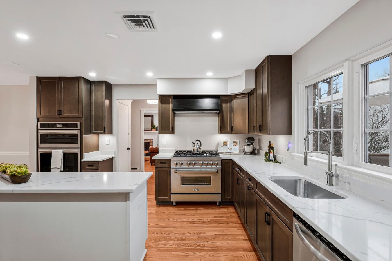 Fully remodeled and beautifully maintained, this 4-bedroom plus guest room, 3.5-bath home offers 3,526 square feet on a .32-acre cul-de-sac lot in the desirable McLean Hamlet community of McLean. The main level showcases a stunning top-to-bottom renovated eat-in kitchen with abundant cabinetry, new stainless steel appliances, and seamless flow into the spacious dining area and family room. The dining area is accented with an elegant chandelier and chair rail molding, while the bright living room features large windows and a wood-burning fireplace-ideal for entertaining or a second gathering space. A renovated center hall powder room adds convenience, and the sun-filled family room offers a second fireplace, exposed beams, and sliding doors leading to the oversized deck and private backyard. Upstairs, the spacious owners suite includes multiple windows, a walk-in closet, and a beautifully renovated en-suite bath with double vanity and glass-enclosed subway-tiled shower. Three additional bedrooms offer generous closet space and share an updated full bath with tub/shower combination and added storage. Hardwood floors run throughout the main and upper levels, enhancing the homes warmth and timeless appeal. The walk-up lower level provides expansive flex space with new flooring, a third wood-burning fireplace, large windows, a guest room, renovated full bath, laundry room, and abundant storage. Additional improvements include a professionally installed radon mitigation system, upgraded electrical panel, replaced gas lines to the meter, custom lighting throughout, designer interior hardware, newer double-pane windows, boiler heat plus HVAC (2009), and three professionally inspected fireplaces. The home is located in the sought-after McLean Hamlet community, known for its tree-lined streets, sidewalks, and streetlights. Optional membership to the McLean Hamlet Swim & Tennis Club offers extensive social and recreational activities. The location is just one mile from Spring Hill Elementary and Rec Center, approximately 2.5 miles to the Silver Line Metro, and minutes to Tysons Corner with easy access to major commuter routes including I-495, Route 7, Route 123, and the Dulles Toll Road.