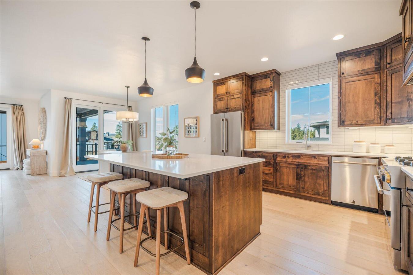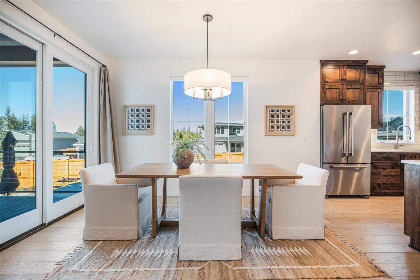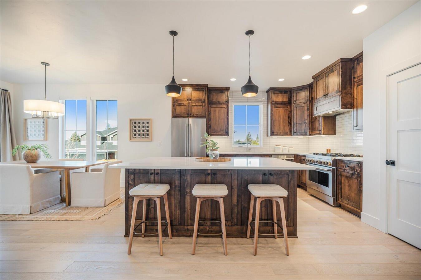 Built in 2023 by MCD Homes, this beautifully crafted residence is located in the highly desirable Shevlin West neighborhood and showcases the builders signature light, airy design and custom finishes. The open, functional floor plan is ideally situated on a generous corner lot, offering excellent privacy and a thoughtfully designed living experience. The custom kitchen flows seamlessly into the dining and living areas, perfect for everyday living and entertaining. The main level features a well-appointed primary suite, a dedicated office, and a half bath. Upstairs are two guest bedrooms, a full bath, and a versatile bonus/loft space. Outside, enjoy a spacious, low-maintenance yard with xeriscape landscaping, a hot tub, fire pit, and storage sheds. Take in Cascade Mountain views or walk just steps to the new Manzanita Ridge Park with quick trail access to Shevlin Park. This is Westside Bend living at its best.