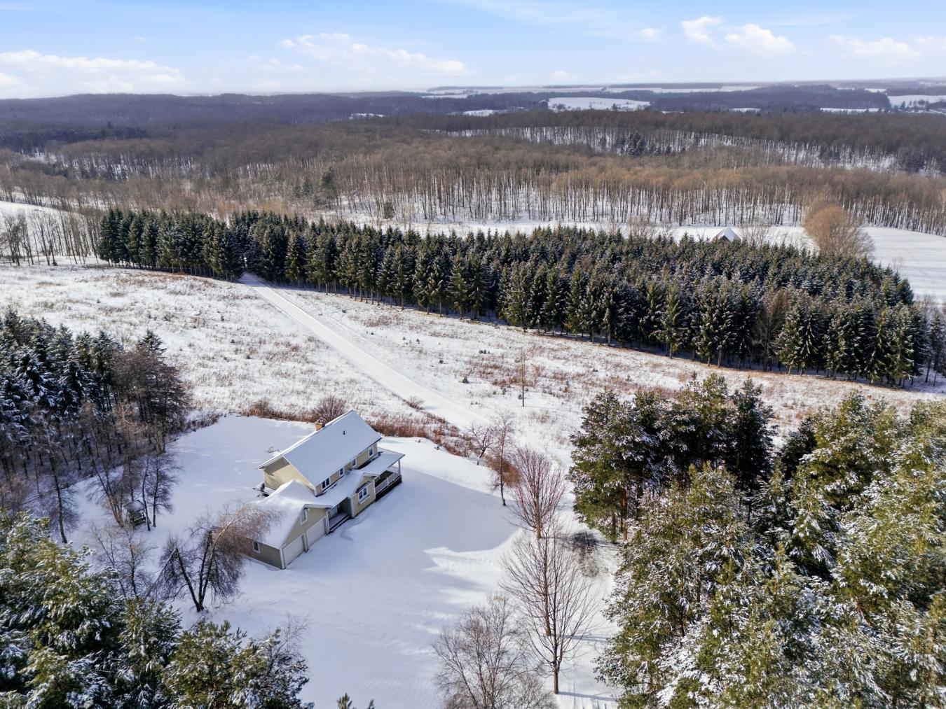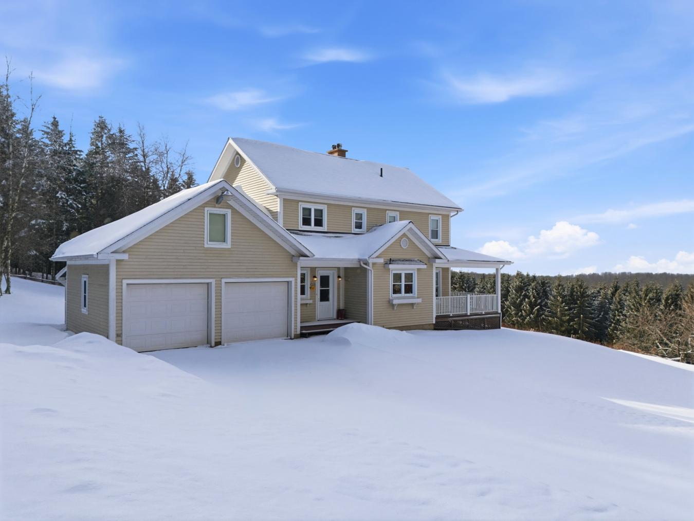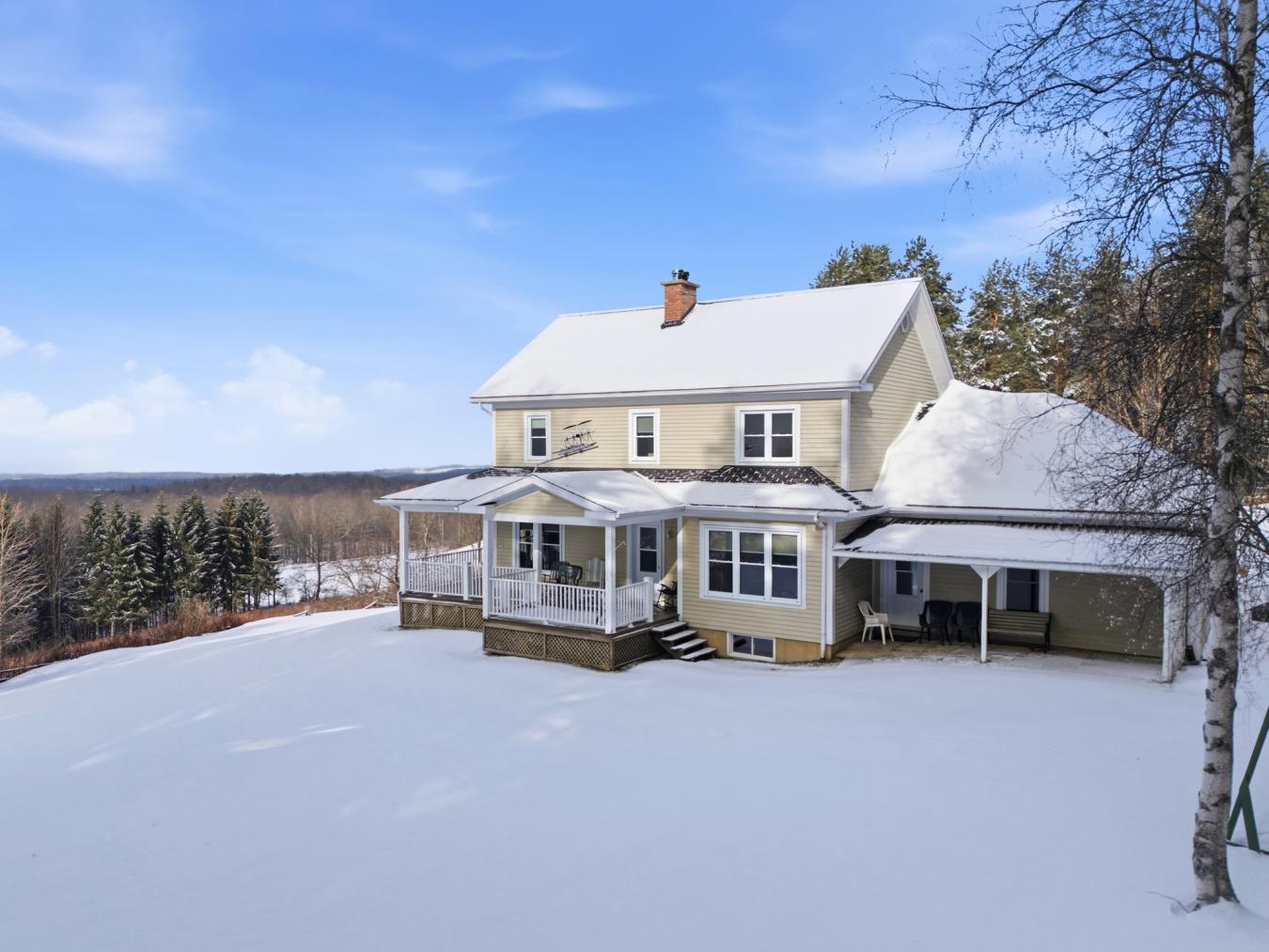 Located in the picturesque village of Hatley, this exceptional property spans 99 acres, including 22 acres of maple groves, offering a rare natural environment with breathtaking mountain views and access to a stream . Combining privacy, tranquility, and proximity to services, it enjoys a strategic location just minutes from Magog, Sherbrooke, and the regions attractions. Built in 2005 with quality materials, the house offers bright and warm spaces. The ground floor features a practical entrancehall with direct access to the garage. The cherry wood kitchen opens onto the dining room and living room, which feature a slow-burning stove and French doors leading to the gallery to enjoy the view. A bright boudoir and a bathroom with a glass shower and laundry area complete this level. The upper floor has three spacious bedrooms. The master bedroom stands out for its generous space, en-suite bathroom with bath and glass shower, and adjoining walk-in closet. Two other comfortable bedrooms enjoy natural light and share the view of the surrounding landscape. The partially finished basement includes a large family room, a powder room, a mechanical area, and ample storage space. Outside, the wooded and landscaped lot, with no neighbors behind, is ideal for enjoying all four seasons. Two auxiliary buildings--a detached shed and a metal garage--complete the property, with parking for more than ten vehicles and a double attached garage. According to the notarized deeds of June 16 and October 14, 1998, a perpetual surface rights agreement was granted to Gazoduc Trans Qubec & Maritimes Inc. for the installation and maintenance of a pipeline. The corrected right-of-way route is indicated on the attached certificate of location plan. A portion of the land is taxable. A unique opportunity to live in the heart of a private estate offering breathtaking views and an incomparable living environment . This sale is made without any legal guarantee of quality, at the buyers own risk. This document does not constitute an offer or promise that is binding on the seller to the buyer , but rather an invitation tosubmit such offers or promises.