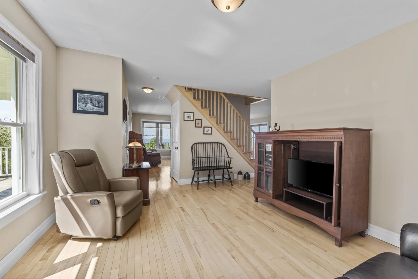 A true haven of peace awaits you in the heart of a natural setting. Located on a wooded lot of over 10,800 sq ft, it offers privacy, calm, and perfect harmony with nature. The abundant windows and cathedral ceilings flood the rooms with light, creating a grandiose and soothing atmosphere.