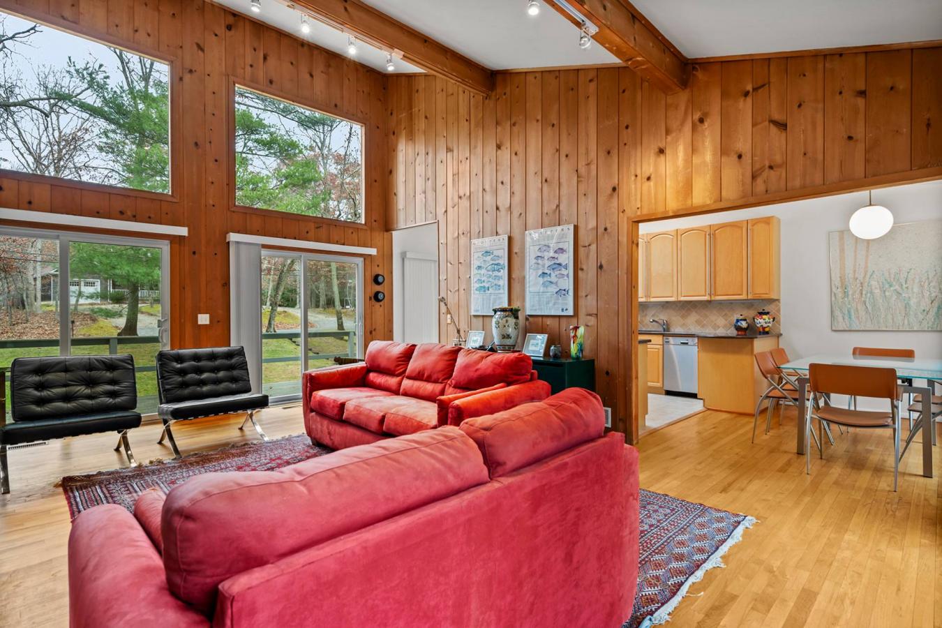 Located in desired Settlers Landing, this mid-century contemporary includes all the amenities you are looking for in a modern style Northwest Woods beach home. Situated on .51 acres the main floor offers an abundance of natural light from the east and west exposures of walls of glass flanking the open living/dining/kitchen area. The wood-paneled living room features soaring ceilings and a wood-burning fireplace. The kitchen and adjacent dining area are perfect for keeping everyone connected while entertaining and all living areas offer access to the backyard/pool and deck area and the large front deck. On the other side of the entrance foyer youll find 3 nicely sized bedrooms and 2 full baths including an ensuite primary with its own private access the backyard and pool. Downstairs the lower level with two walk-out egresses includes a recreation area, /iffice/den/guest area, a full bath, laundry/mudroom and access to the attached one car garage. Step outside to a garden oasis including multi-leveled deck and patios leading to a 20X40 heated swimming pool surrounded by gardens and mature landscaping keeping the area lush and private. With 2390/-sqft of living space over two levels including 950/-sqft in the walkout lower level pending updated CO and all with easy access to Sammys Beach and other points of access to stunning Gardiners Bay and a short drive to all that East Hampton has to offer.