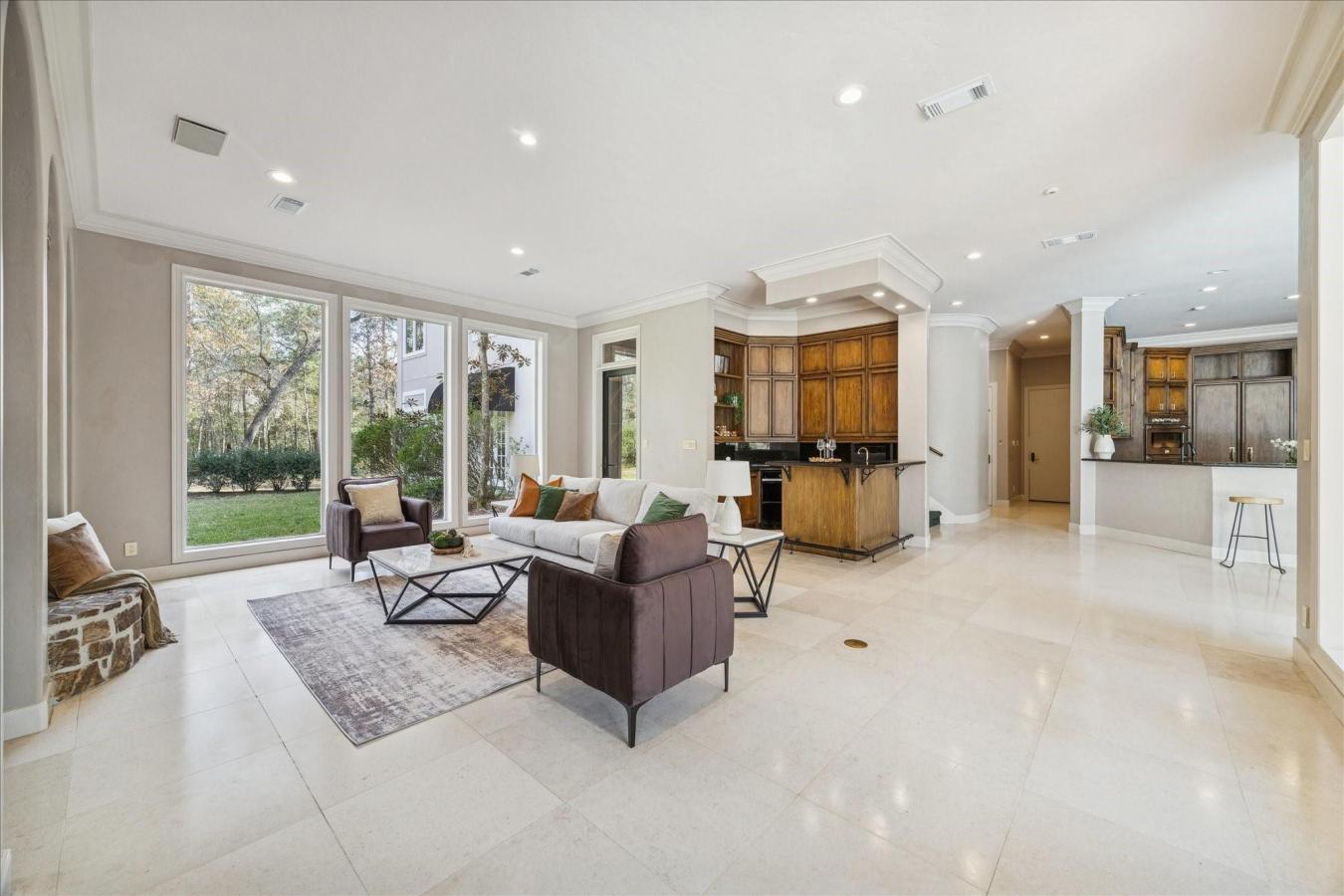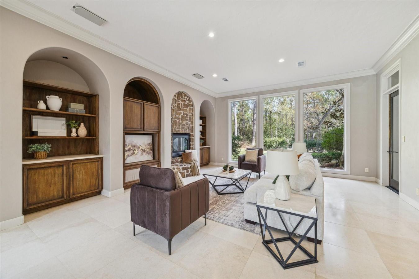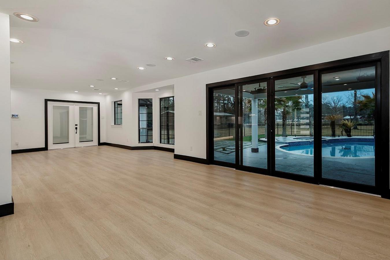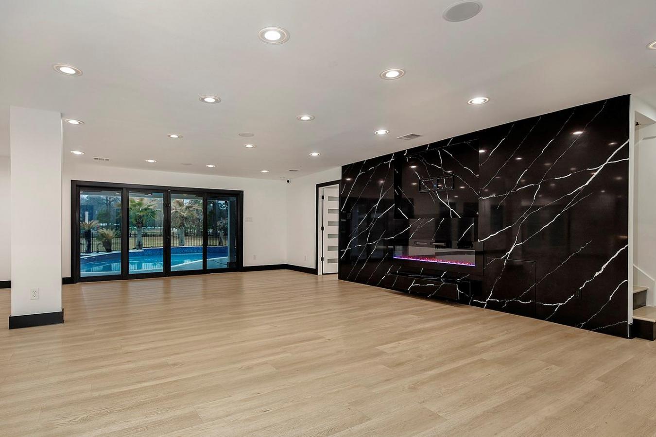 Completely remodeled home (2023) on 3.3 unrestricted acres in Big Tree Estate! Horses welcome! Close to The Woodlands and all amenities, this stunning home features high-end luxury vinyl plank wood-look flooring, designer light fixtures, smooth walls, fresh interior paint, soft-close cabinets and drawers, a new roof, all new windows, and so much more! The remodeled kitchen with a waterfall quartz island, a huge walk-in pantry, and a custom vent hood over the gas range opens to the light and bright breakfast room and den with a decorative quartz wall and fireplace. The study off the breakfast area has a built-in Murphy bed for guests. 2 bedrooms share a bathroom downstairs, and the owners retreat downstairs has a gorgeous, remodeled bath & walk-in closet; 2 bedrooms, a bathroom, a game room & a large balcony are upstairs. 3-car attached garage & insulated and A/C-controlled gym (could be 2nd garage) & a separate workshop with room for a lift & can fit 8-10 cars! Horse barns & stalls too! Well and septic-no MUD tax or HOA!