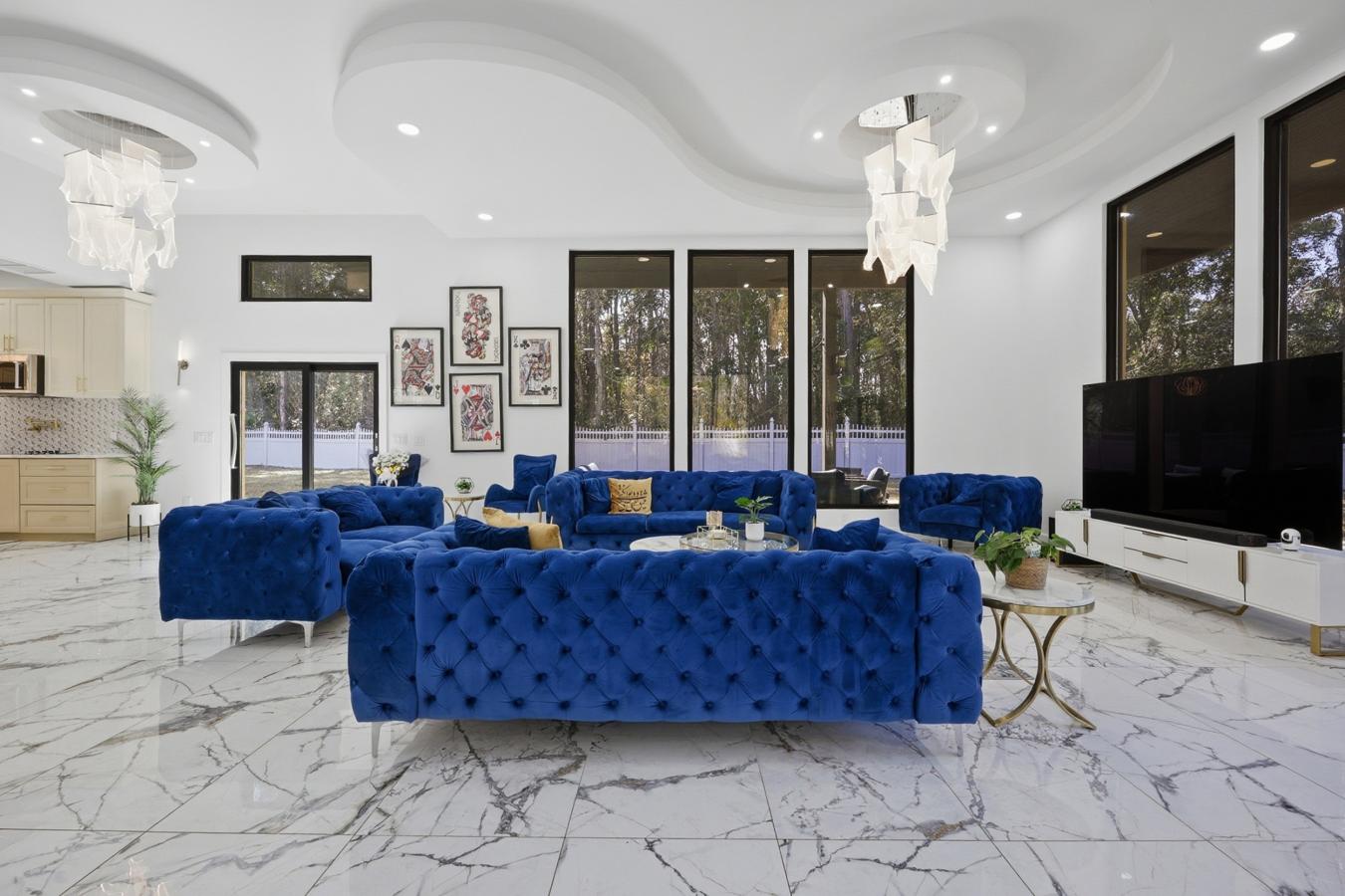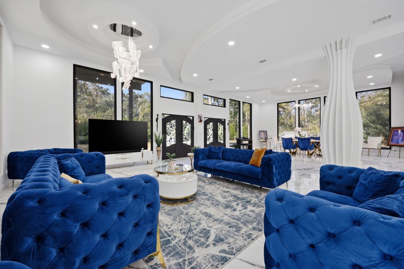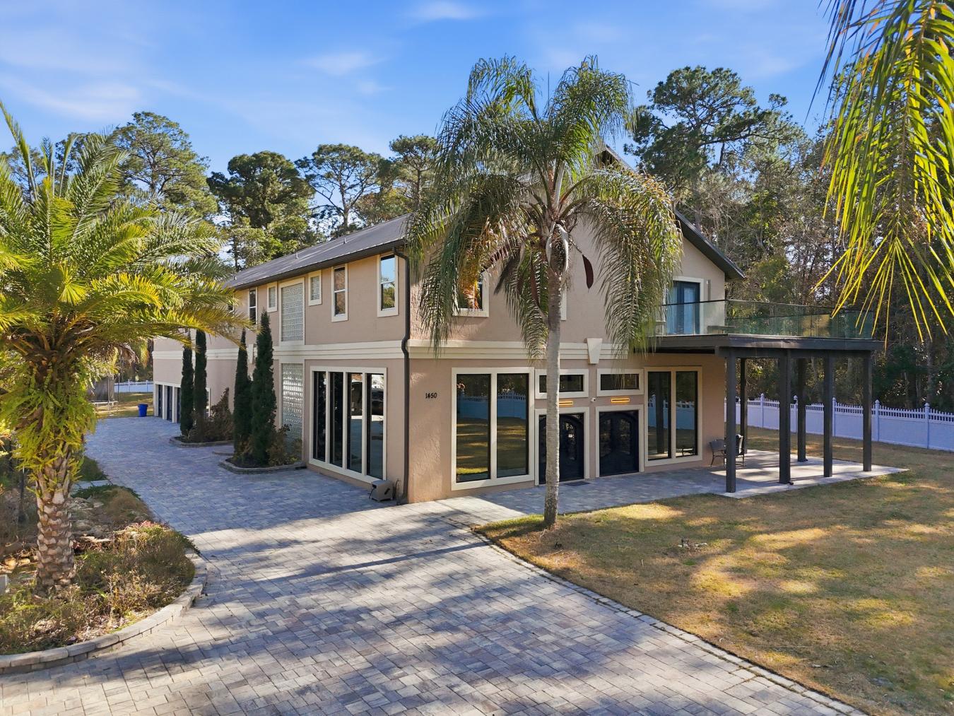 Exceptional custom estate home in St. Johns - 6 BR, 7 BA, 6,528 sq. ft. on a full acre of cleared land. Meticulously renovated (over 1M) and appointed with marble floors, custom light fixtures, unique ceiling designs, hand built columns, floating staircase, iron entry doors and oversized windows throughout. Entertain in the chefs kitchen with double ovens, kettle faucet, abundant cabinetry and a large walk-in pantry, or relax in the main level great room. Upstairs offers two primary suites (each with large jacuzzi tubs) - one with a fully turfed private deck, the other opening to a Florida room - plus four additional bedrooms, each with a private full bath. Showstopper feature: an enormous 10-car epoxy showroom garage - ideal for collectors, a workshop, or impressive vehicle storage and display. Exterior highlights include full fencing, new septic systems/drain fields/pumps, an 8,000 sq. ft. paver driveway, and a gated entry. This home is a must see!