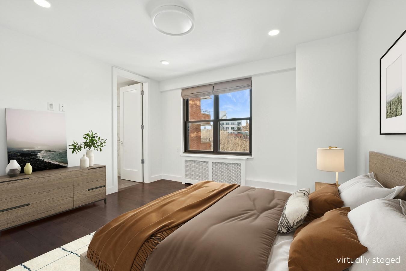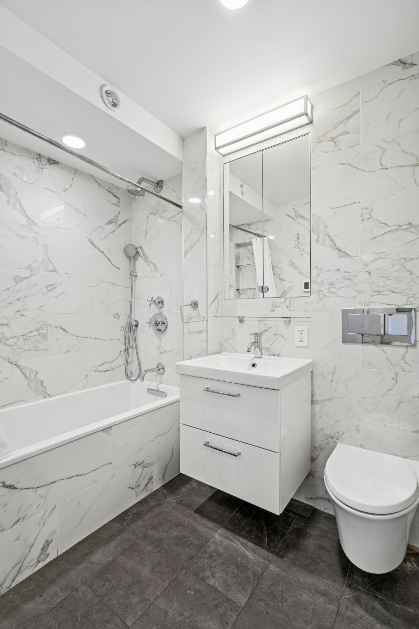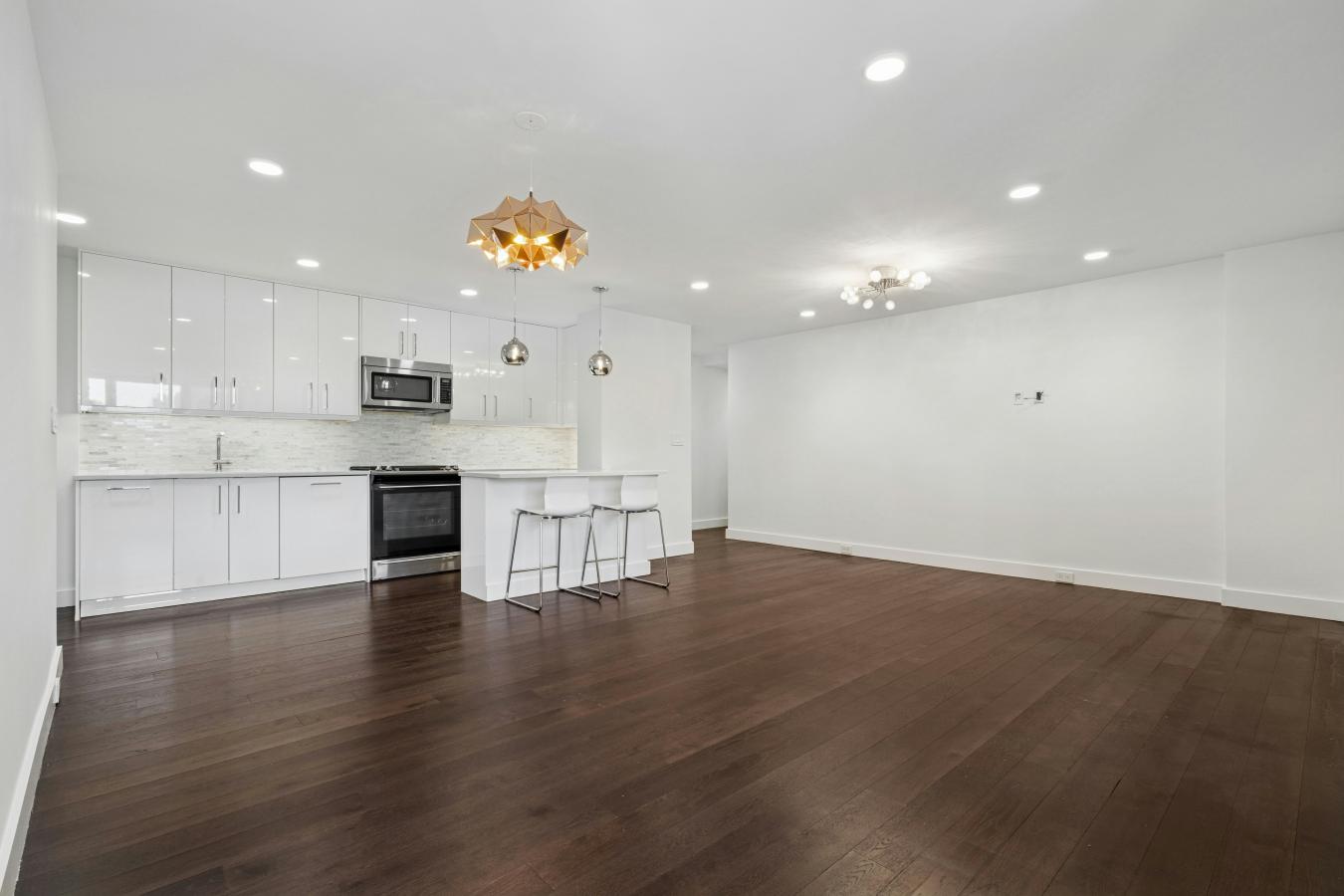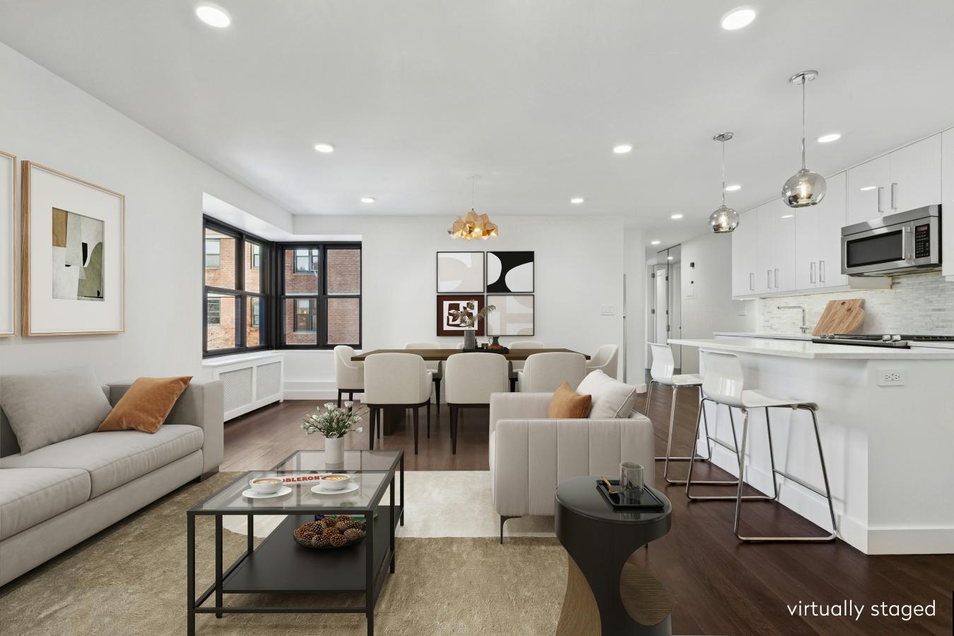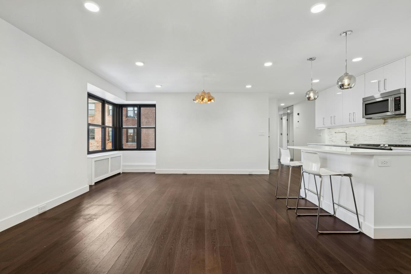 Thoughtfully renovated three bedroom/two bath home in mint condition with custom touches throughout! Modern and stylish with open concept living/dining. Spacious great room with five wrap around windows serving up southeastern & northwestern exposures. Large dining area with space for a 10-seater dining table. Kitchen features include European style white gloss cabinetry with undermount lighting, striking quartz countertops, marble mosaic subway backsplash, a two seat custom dining bar, and a suite of stainless appliances (including an integrated dishwasher and five burner gas range). Wide plank wood flooring unites the space for a warm expansive feel. A rear hallway ushers you to the sleeping quarters and two full baths, nicely offset from the main living. The primary bedroom has two northwest facing windows and boasts a spacious windowed en suite bath with double wide vanity, recessed medicine cabinet and heated flooring. The second and third bedrooms are nicely finished as well and serve up northeastern exposures. All bedrooms come with expanded floor to ceiling closets. Both the main/hall bath & the en suite feature a full size Kohler deep soaking tub, Kohler Shower Fixtures - shower head and handheld, European style Vanity with slide out drawers, recessed medicine cabinets (with power outlets inside) and are finished in Calacatta Gold style wall tiling with slate style heated flooring. All new electric with dedicated panel as well as all new plumbing! Modern fully recessed lighting, custom radiator enclosures, new moldings, custom full height solid core raised doors and high end light fixtures throughout this lovely home. Seward Park Co-op amenities include a fully equipped gym, two private gated parks, playroom, community room, in building laundry, 24 hour lobby attendant/security, and on site management and maintenance.. Close to great restaurants, cafes, galleries, etc. on Ludlow, Orchard, Division and Broome streets. Steps to Essex Crossing with Trader Joes, Target, Regal Cinema, Essex Market and more! Super convenient to all transportation with the F,J M, and Z trains just 1.5 blocks away at Delancey/Essex.