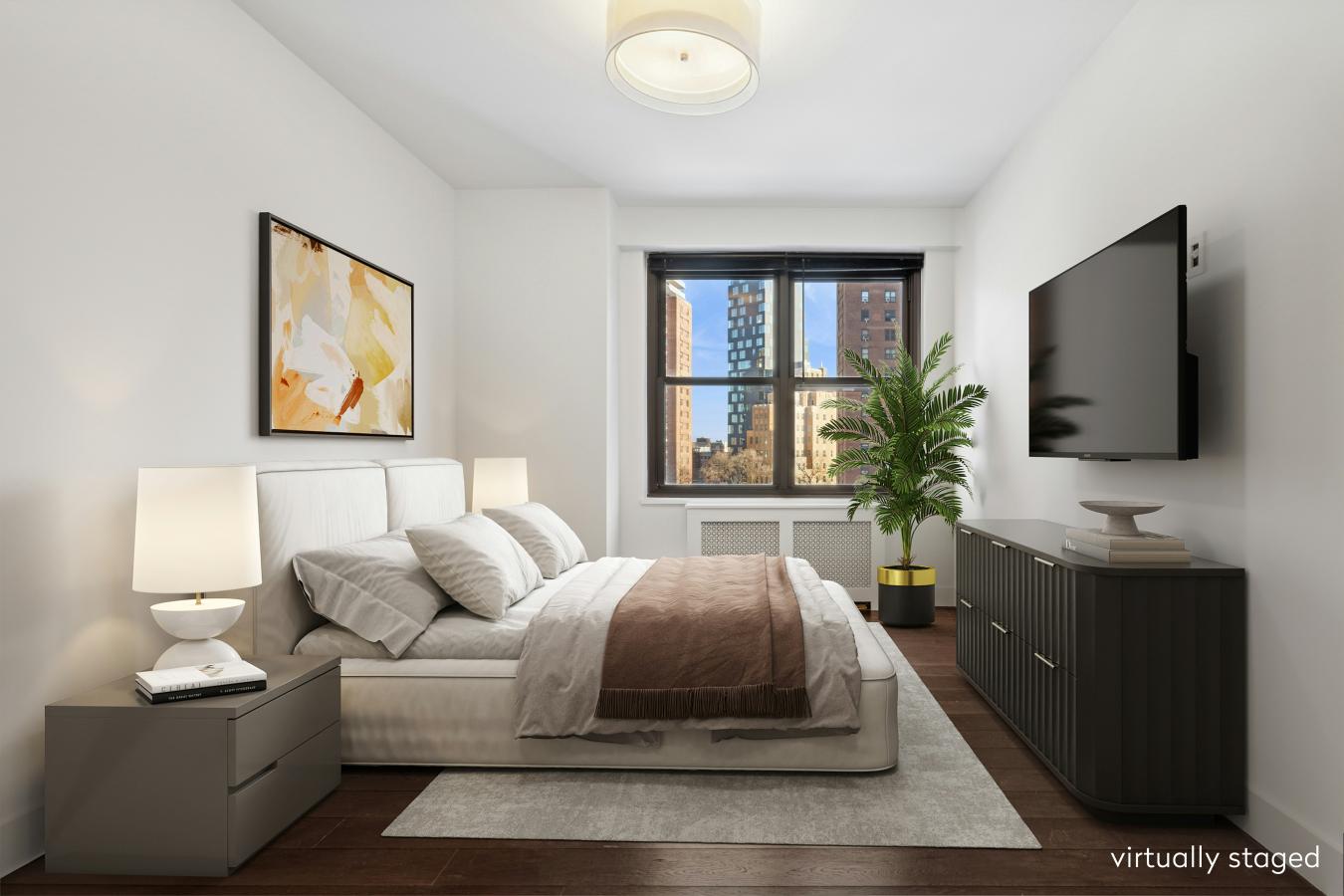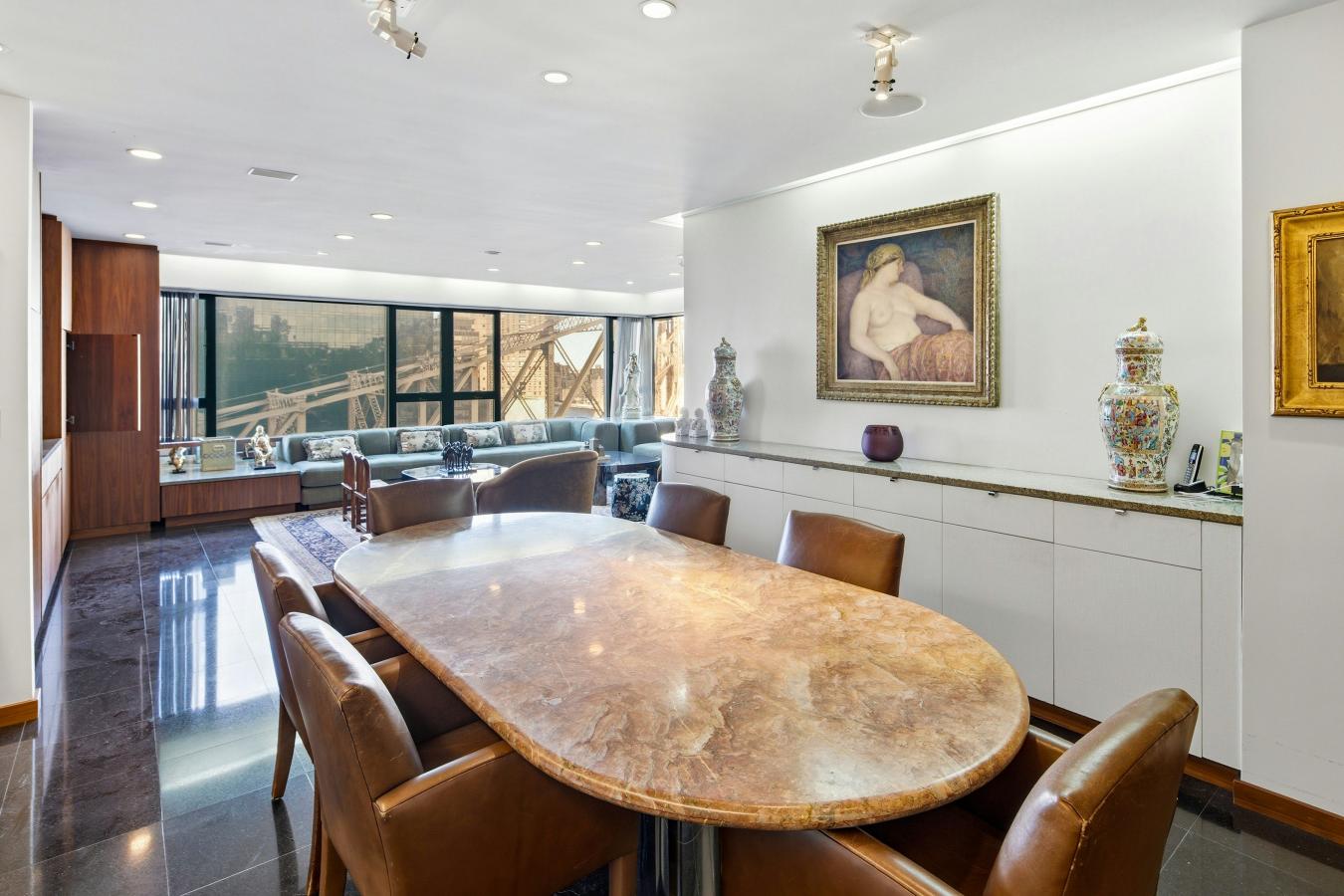 Sleek. Modern. Spacious. Renovated with the finest materials, this oversized one bedroom with large bath plus onyx powder room was designed with a rich and elegant feel. Sweeping city and river views encompass the large corner windows facing north and east.