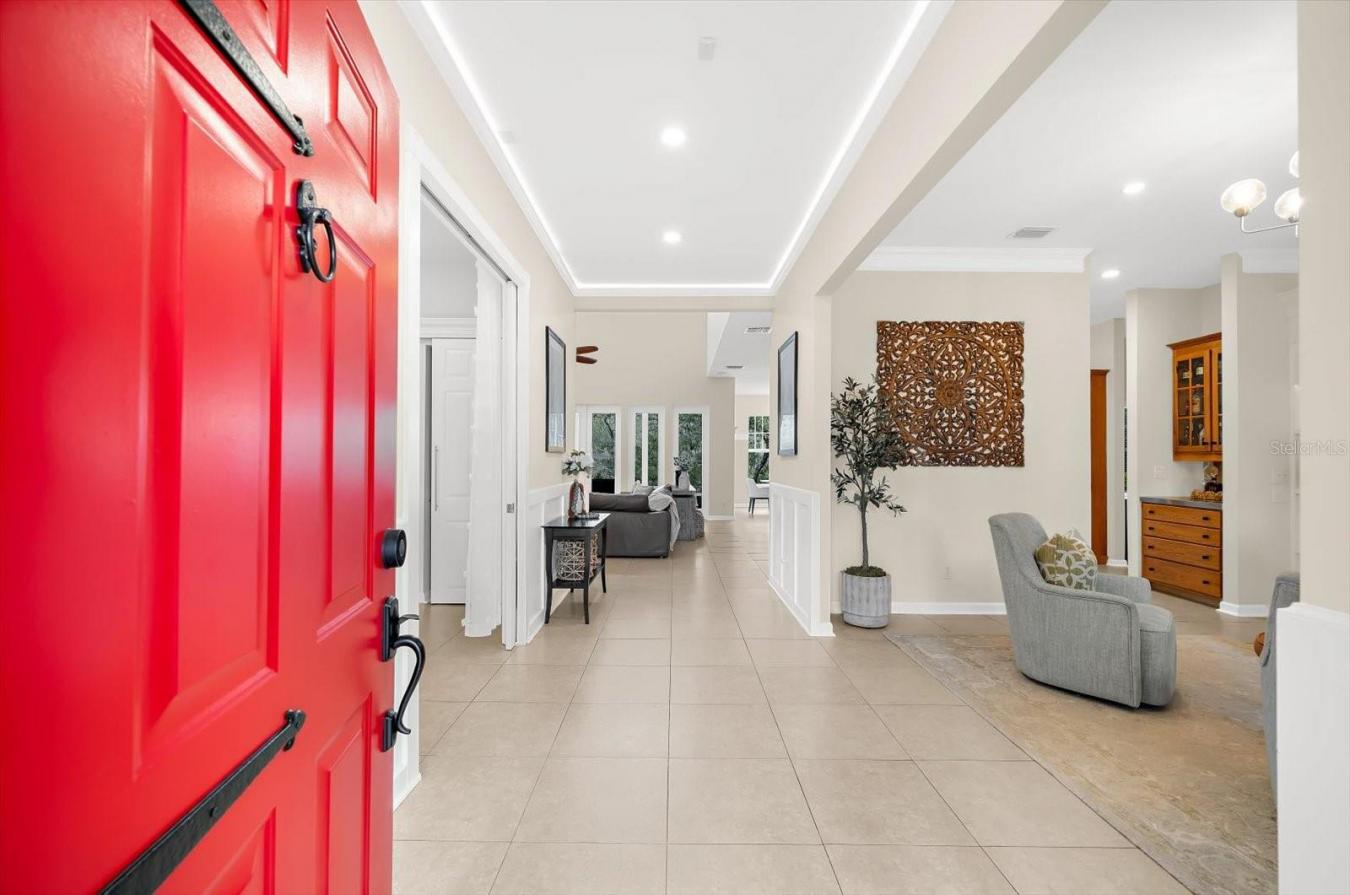 An exceptional opportunity to own a private two-acre estate in the highly sought-after East Lake corridor of Tarpon Springs. Built in 2008 and offering 2,800 MOL square feet of heated living space, this custom ranch-style residence blends architectural presence with everyday functionality in a setting that feels worlds away while remaining centrally located in Pinellas County.