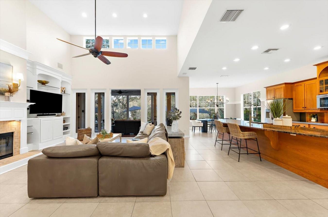 An exceptional opportunity to own a private two-acre estate in the highly sought-after East Lake corridor of Tarpon Springs. Built in 2008 and offering 2,800 MOL square feet of heated living space, this custom ranch-style residence blends architectural presence with everyday functionality in a setting that feels worlds away while remaining centrally located in Pinellas County. The interior showcases cathedral and vaulted ceilings, crown molding, skylights, ceiling fans, and a thoughtfully designed open floor plan. A wood-burning fireplace anchors the family room, creating warmth and character. The kitchen is both refined and practical, featuring solid wood cabinetry, a large island, a breakfast bar, a walk-in pantry, a built-in oven, a cooktop, and a full appliance package including a washer and dryer. A dedicated den/library/office provides flexible workspace and is an ideal third bedroom complete with an en-suite bathroom. The primary suite offers privacy overlooking the expansive, mature landscaped back lawn and comfort with dual sinks, a large his/hers walk-in closet, and a rain shower. Two additional full bathrooms serve the remaining bedrooms and living areas. Outdoors, the property transforms into a private resort setting. A saltwater, in-ground infinity pool and spa overlook mature landscaping and wooded surroundings. The screened-covered porch and outdoor shower enhance the Florida lifestyle experience. The fully fenced acreage includes a gate and security lighting. For those needing space and versatility, the estate includes a three-car attached side-entry garage, boat parking, a gravel drive, a barn complete with its own bathroom, a workshop, and multiple storage buildings. Utilities include public water and sewer, natural gas service, central air conditioning, an electric heat pump, and a well dedicated to irrigation. Zoned A-E with no HOA, no CDD, no lease restrictions, and fee simple ownership, this homesteaded property offers rare flexibility. Located near golf courses, parks, and top-rated Brooker Creek Elementary and East Lake High School, the setting combines rural privacy with accessibility to Lake Tarpon, beaches, dining, and major commuter routes. A rare and refined offering in one of East Lakes most desirable areas.
