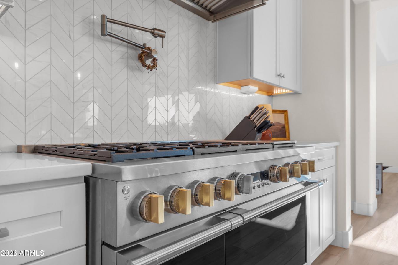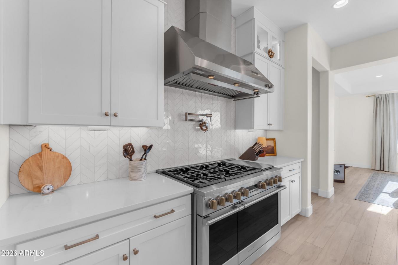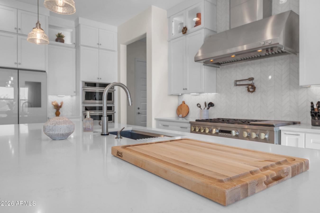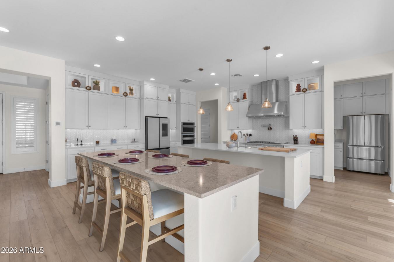 Homes like this simply dont come around often. Welcome to the highly sought-after Majestic floor plan by Woodside, a statement residence where scale, design, and function converge at the highest level. Offering 6 spacious bedrooms, 6.5 bathrooms, and three full-size garage spaces, including a private casita / next-gen suite, this home was designed for flexibility without compromise. Every secondary bedroom features its own en-suite bath and walk-in closet, creating true privacy and comfort throughout. At the heart of the home is a luxury modern kitchen built to impress and perform. Highlights include glass-front stacked display cabinetry, an executive chefs kitchen package, dual oversized islands with premium quartz, a butlers pantry, pot filler, touch-activated faucet, and high-end Monogram appliances. Custom cabinetry with soft-close drawers, rollout shelving, spice pullouts and designer lighting complete a space that is as functional as it is striking. The extended primary suite is a retreat of its own, featuring added square footage ideal for a private office, lounge, or nursery, along with a spa-inspired bath with freestanding soaking tub, rain shower, premium stone surfaces, and direct access to the laundry room from the primary closet. Designed for seamless indoor-outdoor living, the home opens via multiple multi-slide doors to a covered patio with exterior fireplace, overlooking a heated pool and spa. The lot offers no rear neighbors, delivering rare privacy and a true resort feel. Beyond aesthetics, this home excels in performance and resilience. A paid solar system paired with a triple Powerwall provides full-home backup, delivering the amperage required to support large-scale HVAC systems and essential appliances simultaneously. This advanced setup offers exceptional energy efficiency, reliability, and peace of mind for a high-demand modern household. Additional builder upgrades include two-tone designer paint, coffered ceilings, upgraded baseboards and casing, extensive luxury flooring, upgraded electrical and low-voltage packages, hot water recirculation, gas stub for outdoor BBQ, garage extensions and thoughtful structural enhancements throughout. Extraordinary in scale. Intentional in design.