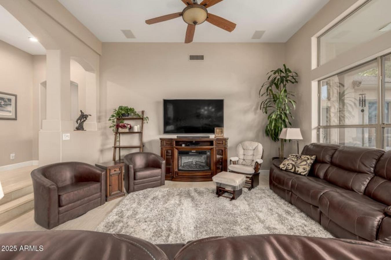 Set within the desirable Monterra community by Maracay Homes, this beautifully maintained residence blends privacy, comfort, and timeless appeal. The single level floor plan features three bedrooms, three baths, and a spacious three car garage. The home sits on an expansive lot surrounded by natural open space on both sides and behind, offering exceptional seclusion and scenic desert views.