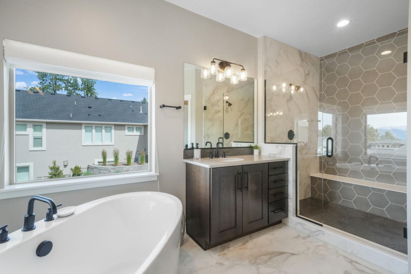 Every so often, a home captures not just the eye-but the imagination. Welcome to 370 Golden Eagle Drive, a designer-remodeled showpiece gracefully perched along the fairways of Eagle Trace Golf Club, where timeless architecture meets inspired artistry. From its elegant custom wood entry door to the warm glow gleaming through oversized windows at sunset, every detail whispers of quality & sophistication. Inside, rich hardwood floors anchor an open & inviting layout where light, texture, and design converge. The great room exudes warmth & grandeur with its floor-to-ceiling brick fireplace, vaulted ceilings & hand-finished accent wall, a space that feels equal parts cinematic and intimate.The kitchen is a triumph of form & function, crafted for both the gourmet & the entertainer. A dramatic Titanium Gold leathered finished island, bespoke cabinetry & designer lighting complement a built-in breakfast nook framed by golf-course views. For entertaining & function, we highlight the double Bosch dishwashers & luxurious parquet tiled Butlers Pantry w/ wine cooler seamlessly connecting the kitchen to the elegant entry sitting room. The main-level primary suite is pure indulgence, a retreat of texture & tranquility. A rustic stone hearth & chandelier set the tone for evenings by the fire, while the spa-inspired bath blends modern elegance w/ old-world charm through black marble counters, gold-framed mirrors, voice command toilet & artisan lighting. Upstairs are 3 addl bedrooms, while the walk-out lower level extends the homes living experience w/ a built-in theater room, game area & seamless outdoor access. Outside, the redwood deck & manicured landscape open to panoramic mtn vistas and the lush greens of Eagle Trace-a front-row seat to Colorados four-season beauty. Blending European sophistication with Colorado soul, this one-of-a-kind residence is more than a home; its a work of art designed for those who appreciate the extraordinary.