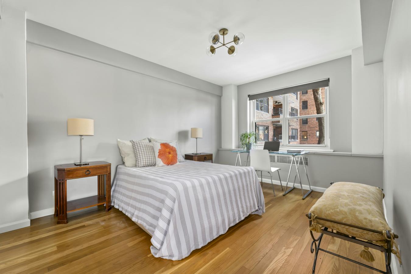 Renovated 2nd Floor 2BD Facing Riverside Park! Immediately upon entry, enjoy the stellar views of Riverside Park! Being one flight up from the street, above the ground level apartments, is the perfect height to appreciate the beauty of the trees and observe the activity that makes Riverside Park so special. This renovated 2 bed 1 bath is conveniently - and privately - located on the lobby level of Schwab House, avoiding the need for elevators and with a ground level apartment directly beneath, this apartment is well above Riverside Drive, equivalent to the 2nd floor in both feel and park view. This corner home has sunny western and southern exposures with park and private garden views from every window. Enjoy a large living room, two spacious split bedrooms, a gracious entry gallery as well as a complete renovation and garden-facing windows in both the kitchen and hall bathroom. Five custom closets, through-wall air conditioning, hardwood strip flooring and ten new white windows complete this lovely home. Move right in and enjoy the Riverside Park views! The Schwab House, a fully serviced cooperative in the coveted West 70s on the Upper West Side, is in the middle of one of the most desirable, vibrant, beautiful and historic residential neighborhoods in Manhattan. It is conveniently located around the corner from Citarella, Fairway, Trader Joes, The Beacon Theater and the 1, 2 & 3 subways. It is just across the street from Riverside Park with its playgrounds, bicycle paths, sports fields, restaurants and dog runs. Enjoy the neighborhood, for in addition to fantastic dining and shopping venues, it is a very short distance to Lincoln Center for the Performing Arts and multiple cinemas. Schwab House features newly renovated hallways and lobby, on-site management and 24 hour: doormen, concierge, handymen and garage, plus a gym, playroom/community room (offering teen hours and pilates, yoga and tai chi classes), two enormous & luxuriously landscaped roof decks with fantastic city/river views, a bike room, storage lockers, a dry cleaner/tailor, a lending library and an air-conditioned lobby. Schwab House permits pied-a-terre ownership, parents buying for children, guarantors and joint purchases and is accessible and pet friendly.