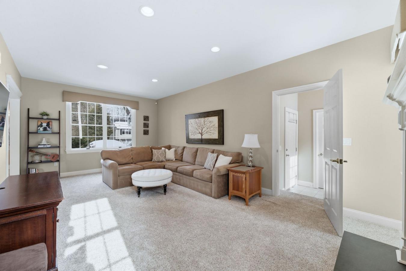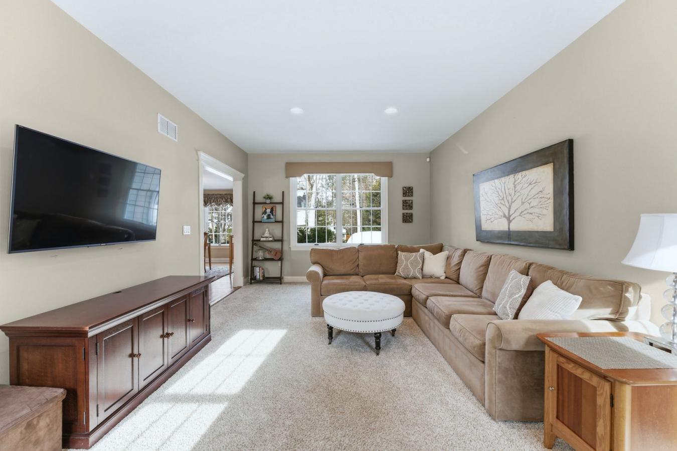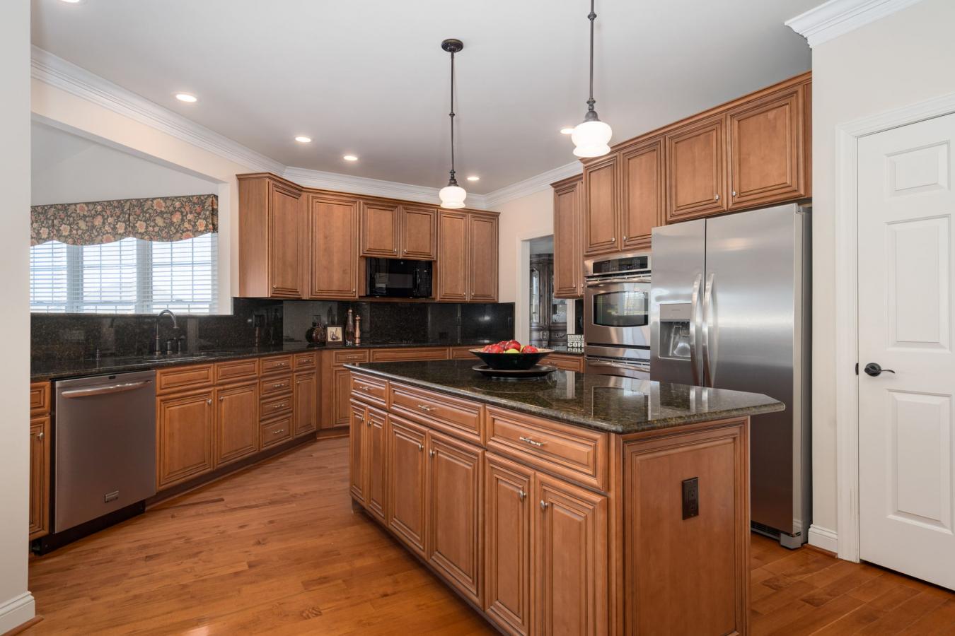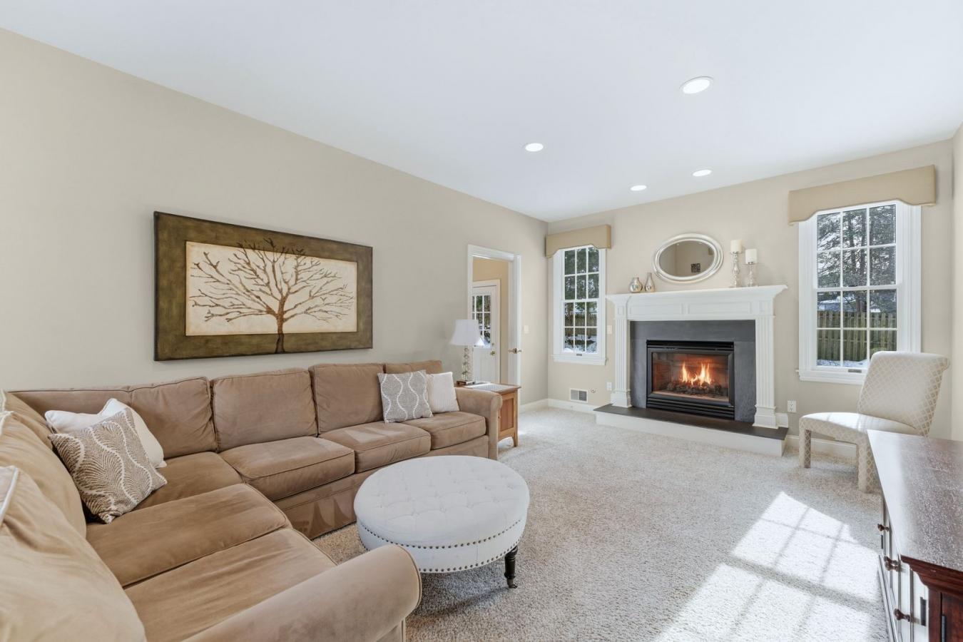 This spacious stone home offers over 3,200 sq ft of finished living space, ideal for large families or multi-generational living. The main floor features a grand foyer with vaulted ceilings, a powder room, and a striking solid maple staircase that sets the tone for the quality throughout.