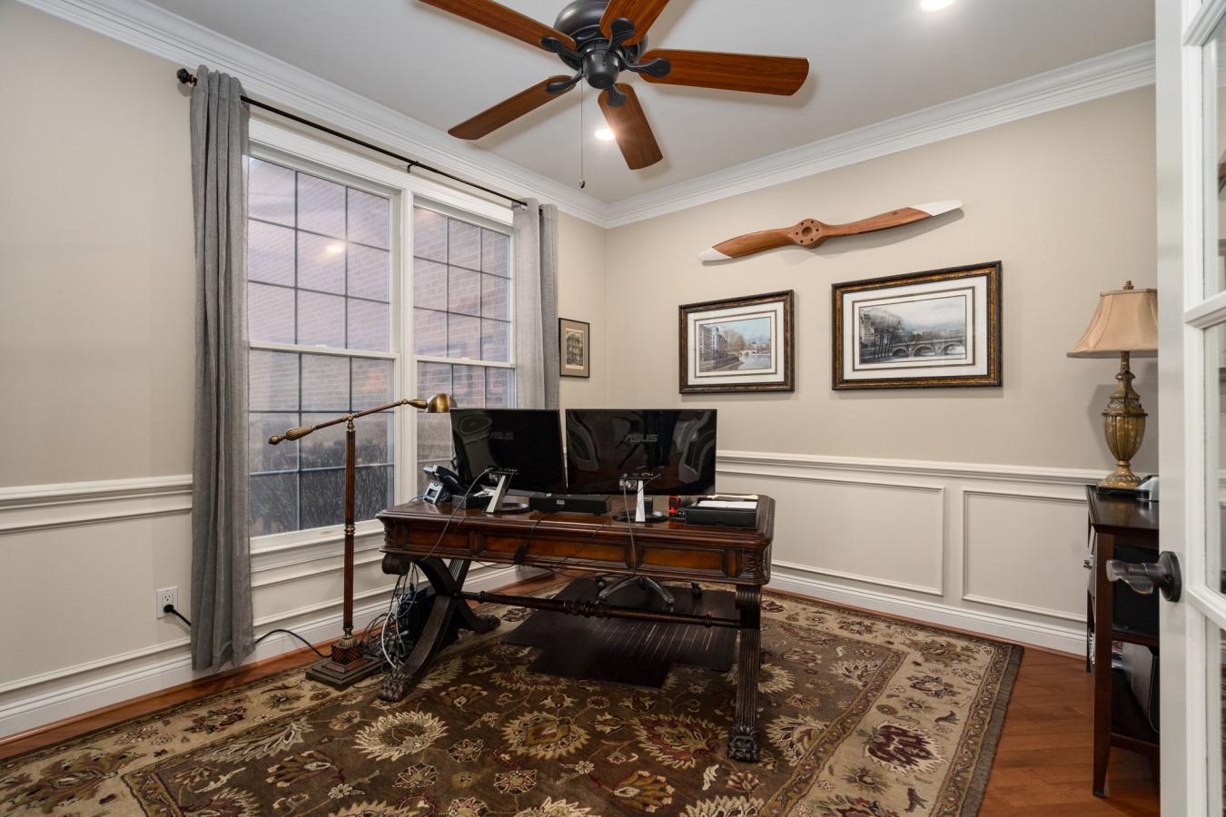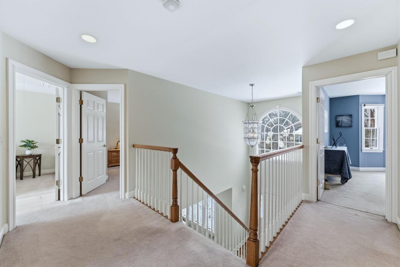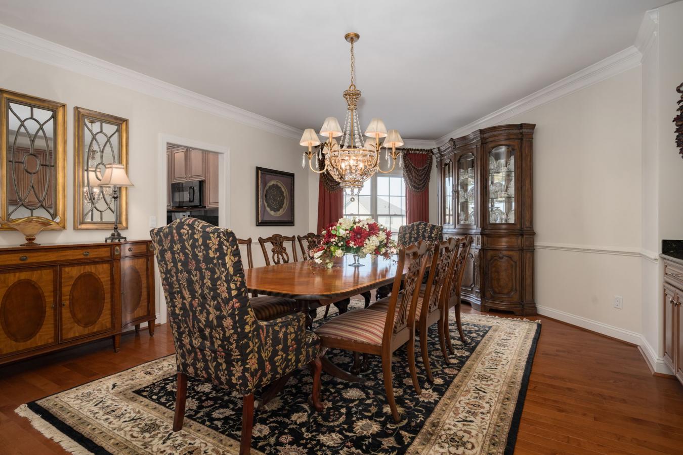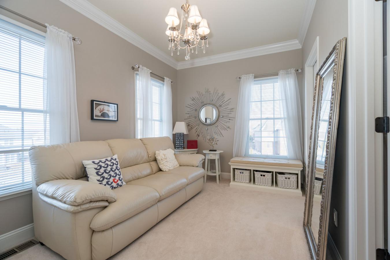 This spacious stone home offers over 3,200 sq ft of finished living space, ideal for large families or multi-generational living. The main floor features a grand foyer with vaulted ceilings, a powder room, and a striking solid maple staircase that sets the tone for the quality throughout.