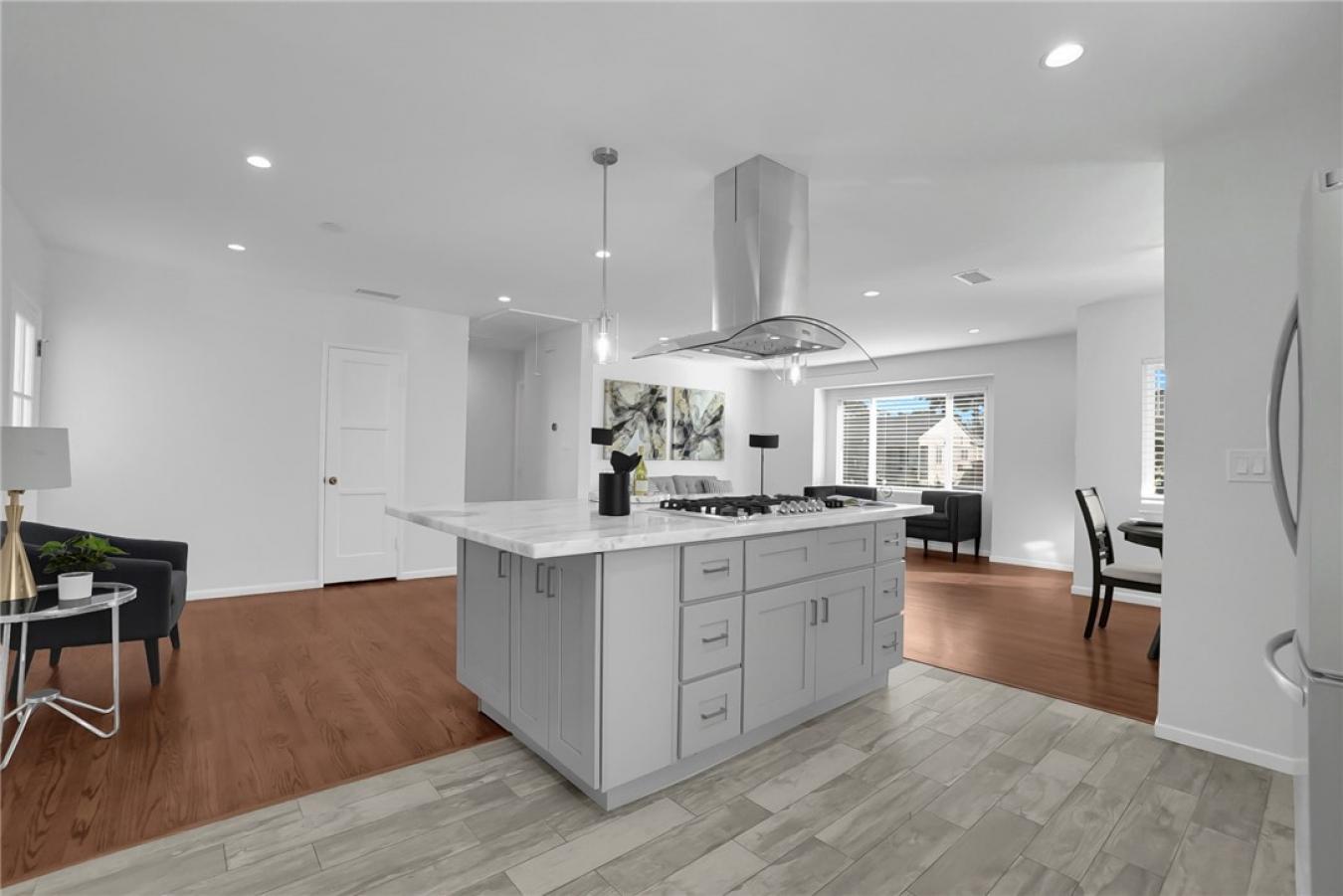 Your Dream Home Is For Sale! Completely renovated and truly turnkey, this beautifully reimagined residence offers refined comfort, thoughtful design, and modern functionality in every detail. A brand-new roof, fresh interior and exterior paint, and professionally designed landscaping create impressive curb appeal and long-term peace of mind. Step inside to an open-concept floor plan filled with natural flow and warmth. The professionally refinished original wood flooring adds timeless character, while recessed lighting throughout enhances the bright, contemporary ambiance. The spacious kitchen is designed for both everyday living and elevated entertaining, featuring a professional built-in island cooktop, separate oven, and seamless connection to the dining and living areas, creating an inviting space to gather and host. The remodeled bathrooms showcase updated finishes and quality craftsmanship, offering a spa-inspired feel. Every improvement has been carefully executed to deliver a move-in-ready experience without compromise. Ideally positioned near convenient freeway access, shopping, dining, and entertainment, this home combines location, lifestyle, and modern upgrades in one exceptional opportunity. A rare chance to secure a fully updated property in a highly sought residential pocket-schedule your private showing and experience it in person.