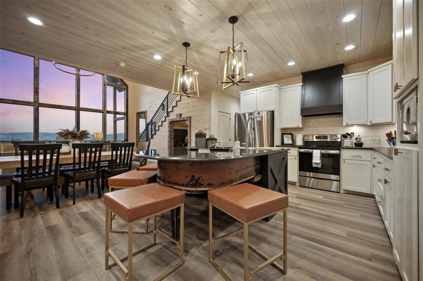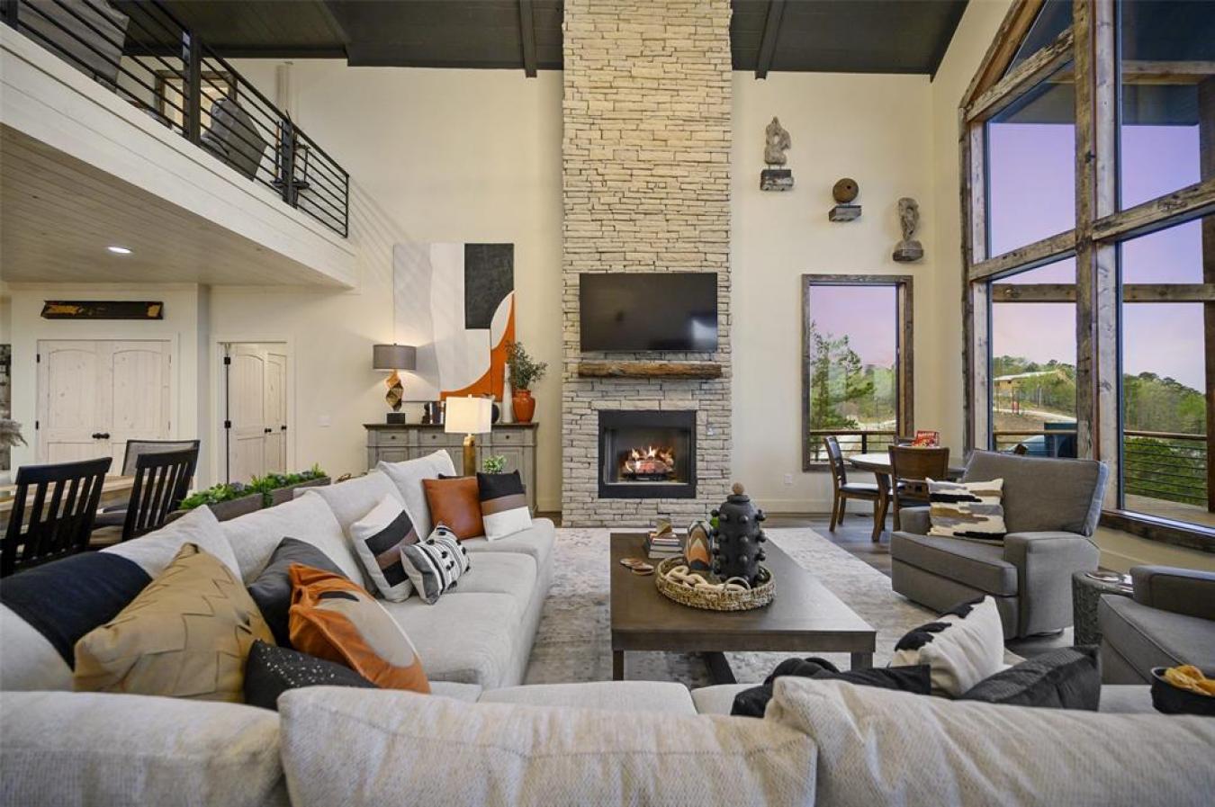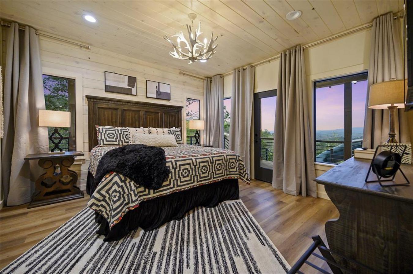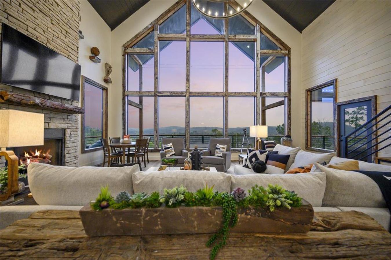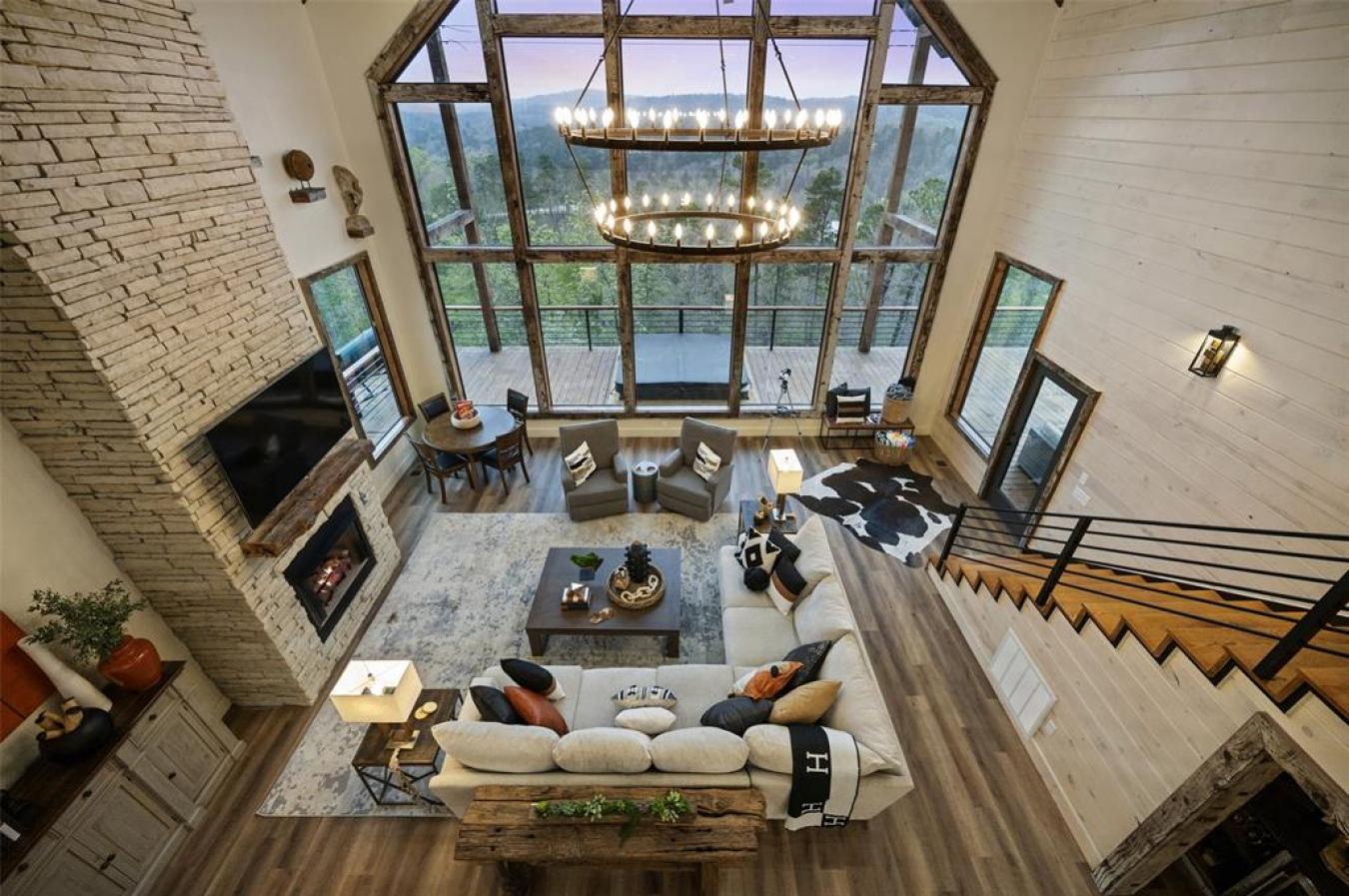HELL OF A VIEW A Newer Luxury STR with Commanding Mountain Views & Above-Average Rental Performance Perched at the highest point of the exclusive Forest Brook development, Hell of a View is a newly built luxury cabin that lives up to its name. This show-stopping short-term rental delivers a rare 200-degree panoramic mountain view-one of the most dramatic vantage points in the Broken Bow market-making it a proven guest favorite and a standout income producer. From the moment guests arrive, the experience is unforgettable. A wrap-around rear porch, floor-to-ceiling glass windows, and a countersunk 8-person hot tub all frame the sweeping horizon. Adventurous guests love the 14-foot enclosed slide from the deck, while night owls gravitate to the on-site telescope for stargazing from this elevated peak. Designed to comfortably accommodate up to 16 guests, the expansive great room anchors the home with ample seating and a layout built for entertaining. The cabin features three king master suites with private en-suite baths, plus an additional upstairs bedroom with two queen beds and its own full bath, easily functioning as a fourth master. A dedicated bunk room on the main level sleeps four, complemented by a trundle bed in the game area for flexible guest arrangements. The game room boasts an 8-foot professionally leveled slate pool table, a gaming console, and a PlayStation 4. The covered deck has a fireplace and gas grill. A custom built-in bar beneath the staircase adds both style and function, complete with a secondary refrigerator. Music lovers will appreciate the cabins inspired design. A 118-year-old Baldwin baby grand piano, once featured in a New Orleans bar, serves as the kitchen island, accompanied by custom musical details throughout, including a one-of-a-kind chandelier crafted from piano hammers and strings. Minutes from Beavers Bend State Park & the attractions of Broken Bow Lake, this luxury STR offers both lifestyle appeal and strong investment fundamentals.