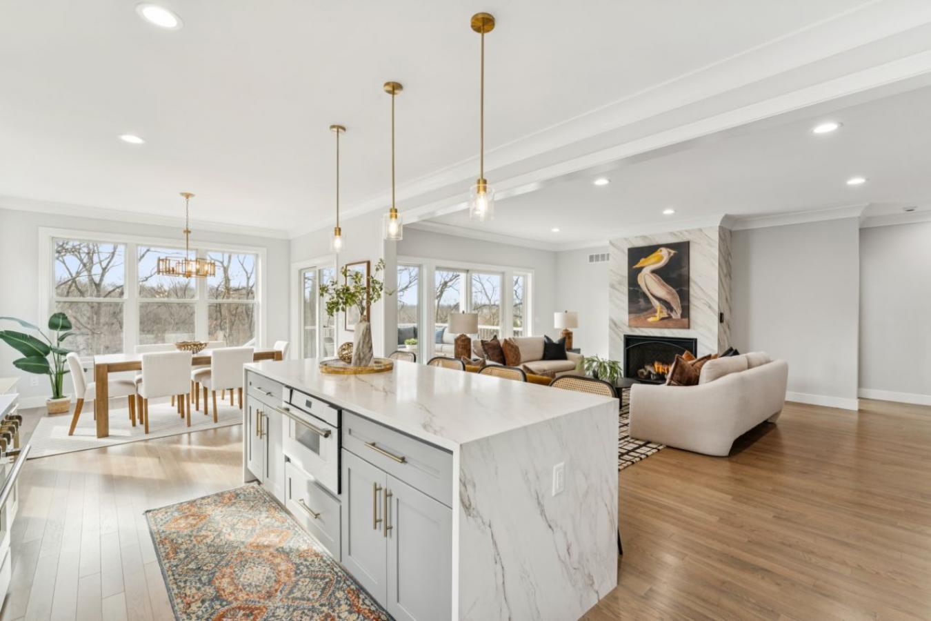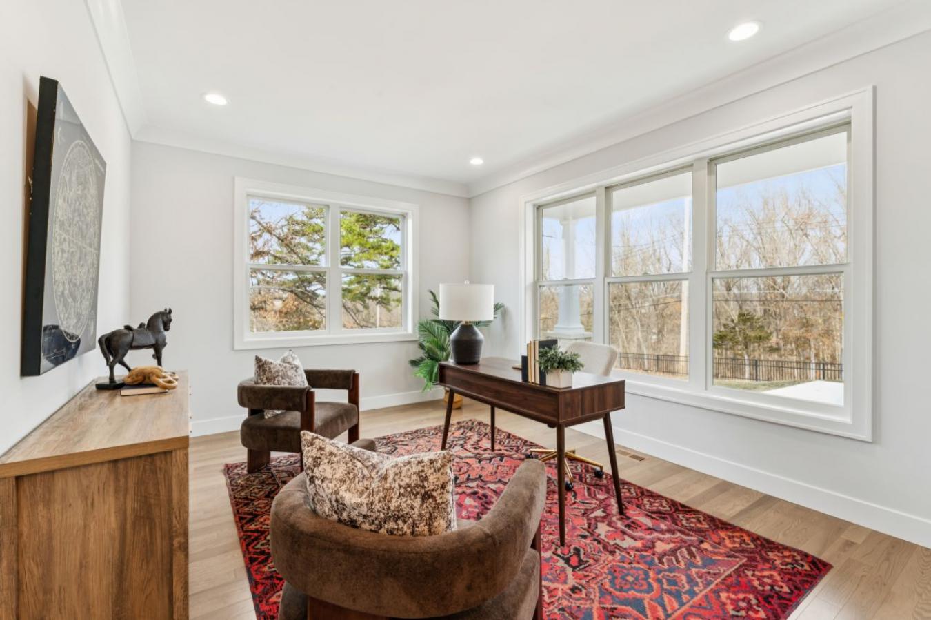 Welcome to this thoughtfully designed custom new construction home offering rare flexibility and elevated finishes in Sunset Hills and the Lindbergh School District in St. Louis. With two primary suites, two laundry rooms, and multiple living areas across three finished levels, this home delivers a layout thats as smart as it is stylish in over 5,200 square feet. The sun-filled main level features hardwood floors, crown molding, a private office, and an open-concept living area anchored by a sleek marble-slab gas fireplace. The show-stopping kitchen pairs beauty and function with quartz countertops, high-end appliances, a waterfall island with built-in microwave, pantry, and a built-in buffet with beverage cooler. A window-lined dining area opens directly to the back deck, creating an ideal setup for entertaining. A highly sought-after main-floor primary suite offers a true retreat with heated marble bathroom floors, soaking tub, separate shower, double vanity, and custom walk-in closet. A floor-to-ceiling tiled powder room and spacious mudroom with main-floor laundry complete the level. Upstairs, a generous loft provides flexible living ideal for work, play, or relaxation. The second primary suite features a spa-worthy bath with heated floors, soaking tub, and oversized shower. Two additional bedrooms, a full bath, and a second laundry room complete the upper level. The finished walk-out lower level includes tall ceilings, a large rec area with wet bar, plus a bedroom with egress window and full bath. Exceptional storage with custom closets throughout. A refined blend of comfort, flexibility, and elevated design in a prime Sunset Hills location, closes to gold course and parks.