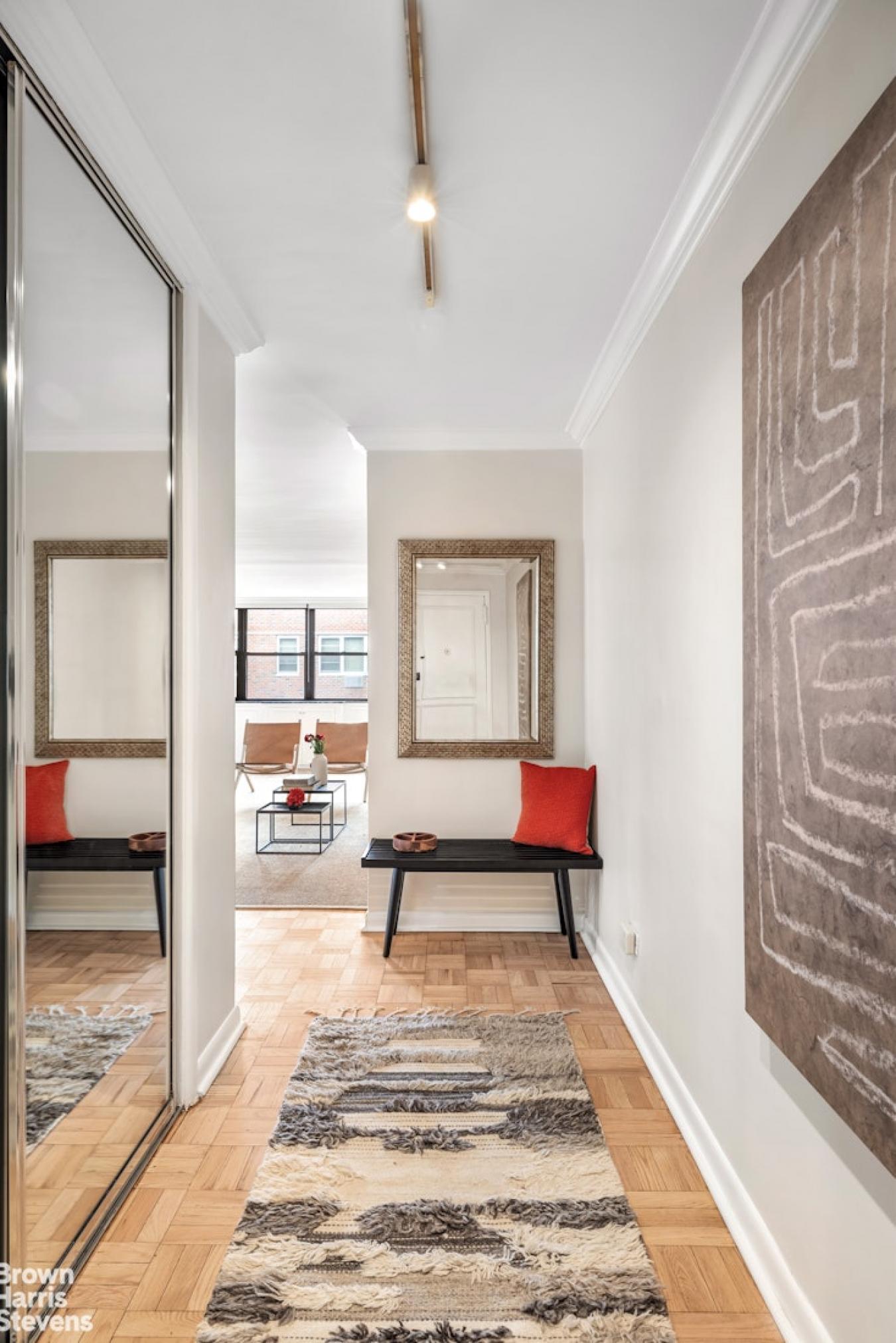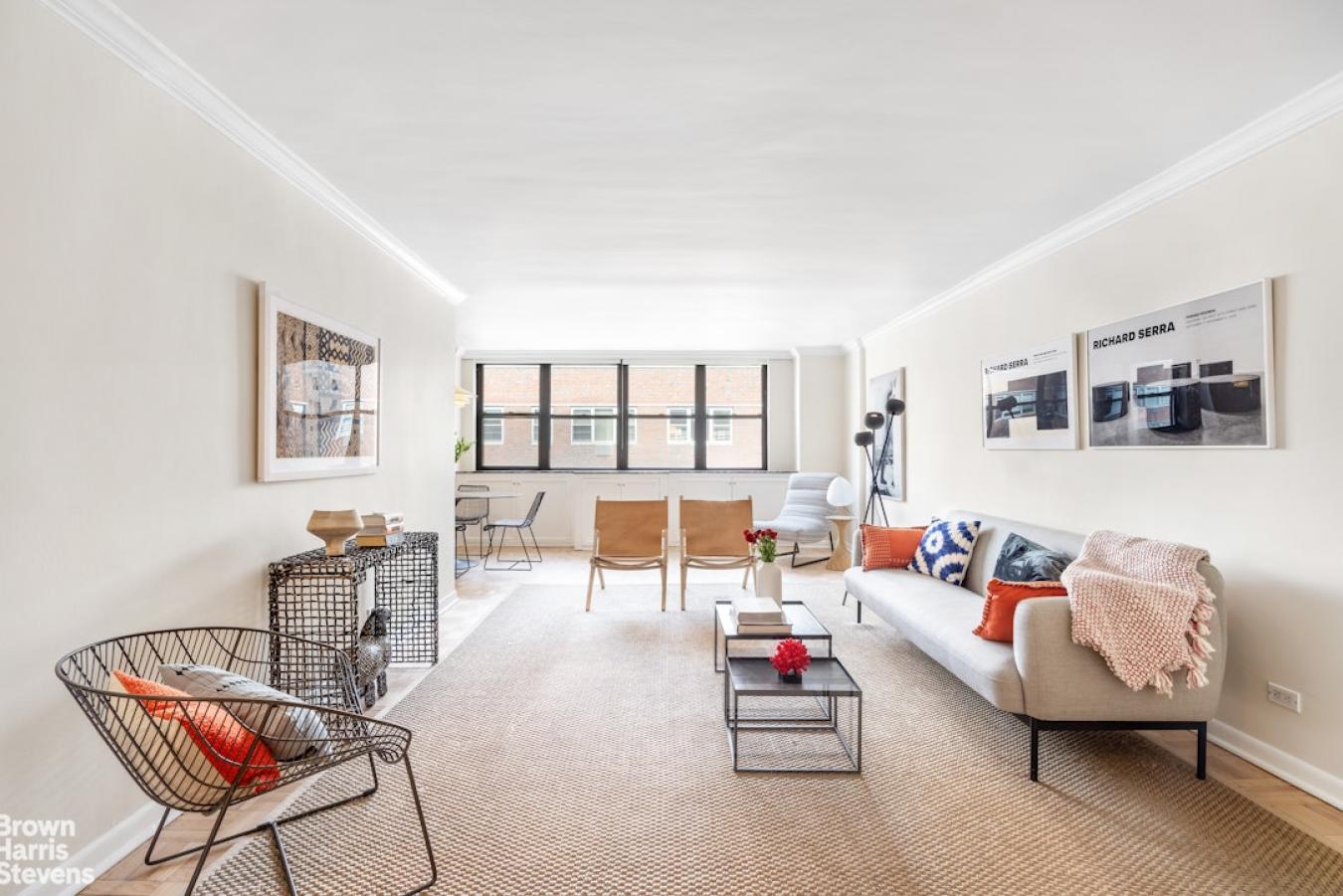 This high-floor corner two-bedroom two-bathroom features an expansive living room and dining area. The gracious layout features a large proper entrance gallery, plentiful closet space and a formal dining area that could be converted to a third bedroom. With north and west exposures, this home boasts abundant natural light and sunshine. There are plenty of closets throughout, new crown and baseboard moldings, thru-wall air conditioning, and the beautiful original wood floors have just been refinished. The pass-thru kitchen has stone countertops and stainless appliances. The master bedroom suite features double exposure and an ensuite updated bathroom. Washer/dryer within. This full-service building has newly renovated hallways and lobby, permits pets and has an extremely helpful staff including a 24-hour doorman. There is a magnificent roof deck featuring comfortable and elegant furnishings including lounging, dining and reclining. The location is central and ideal, a few blocks from the 4, 5, 6-trains and the Second Avenue Q-train. Pristine financials, management, and service have made 239 East 79th Street one of the most sought-after cooperatives on the Upper East Side. The unusually strong financial condition of this cooperative (boasting a large reserve fund), along with very stable maintenance, makes this a wise investment. Also, no flip tax.