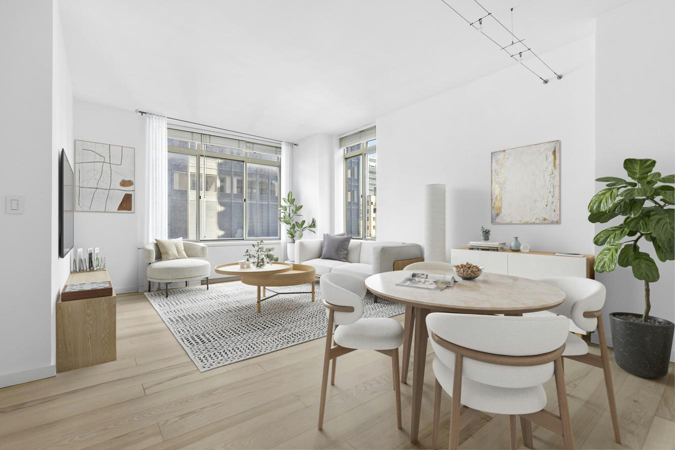 Turn-key 2 Bedroom, 2 Bathroom Home with Open Skyline Views - 1.3M Spanning approximately 1,400 square feet, this completely renovated, sun filled 2 bedroom, 2 bathroom residence offers open Manhattan skyline views from oversized windows throughout. The attention to detail showcases the elegant architectural detailing and fine materials used from the floors to the finishes.