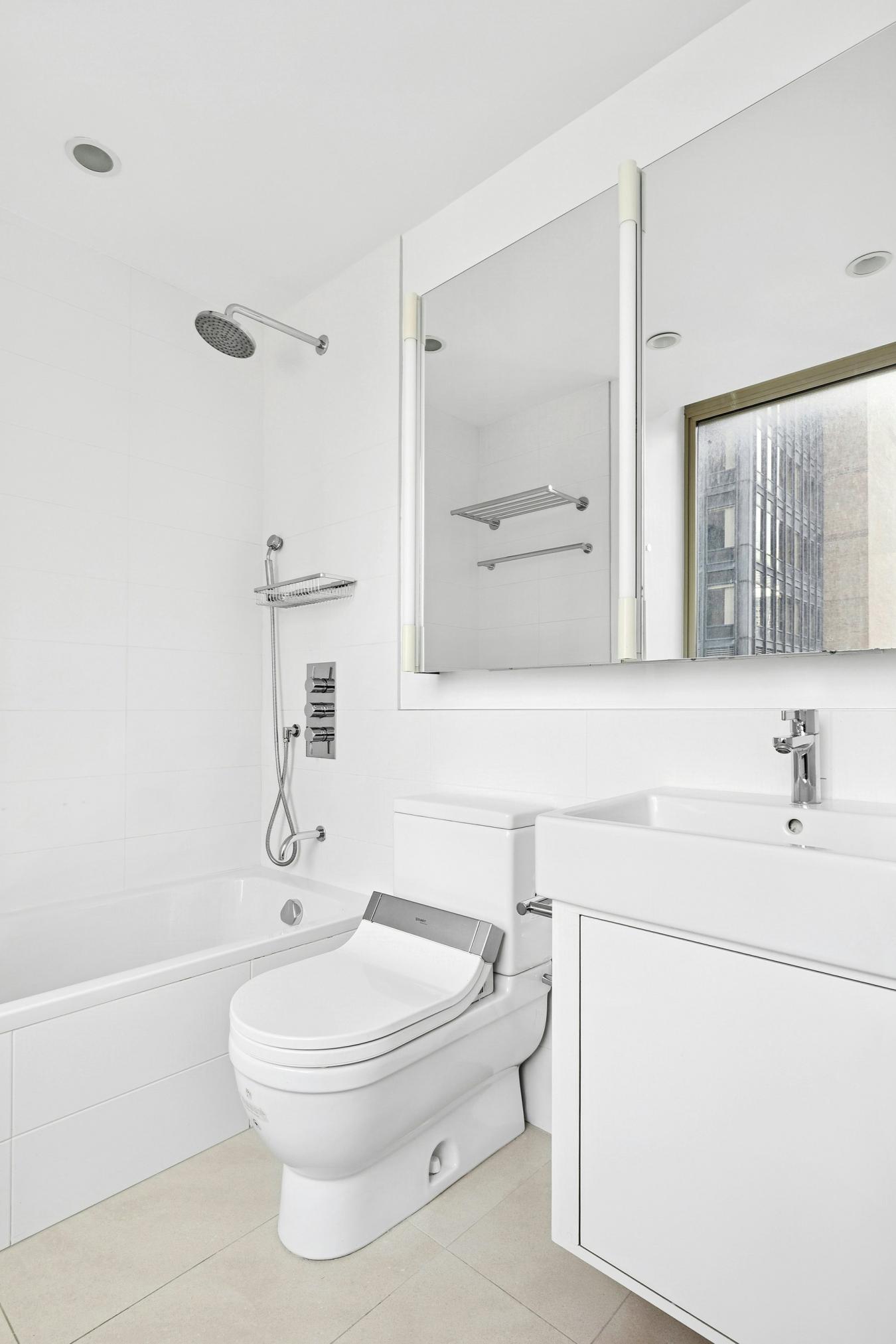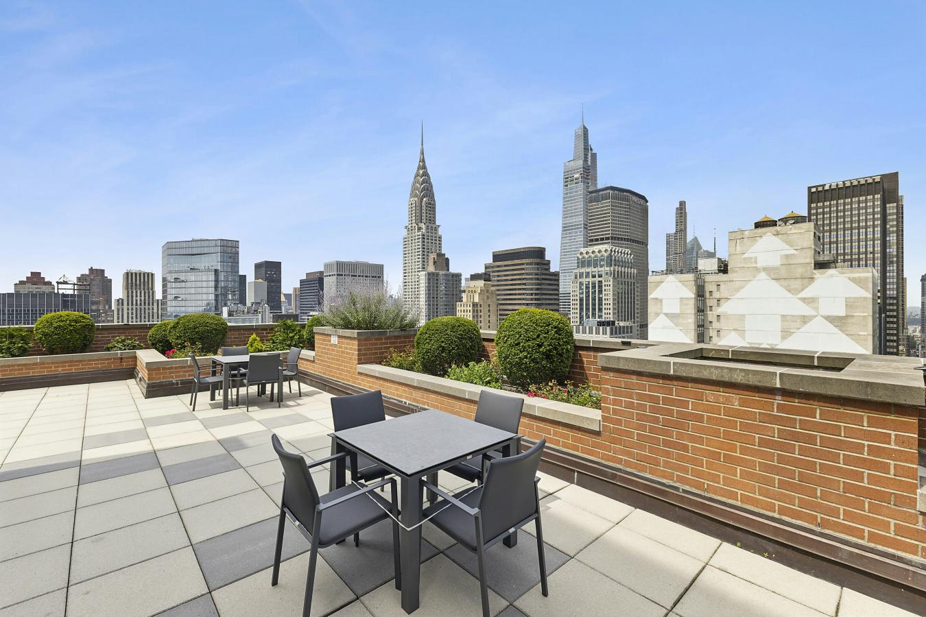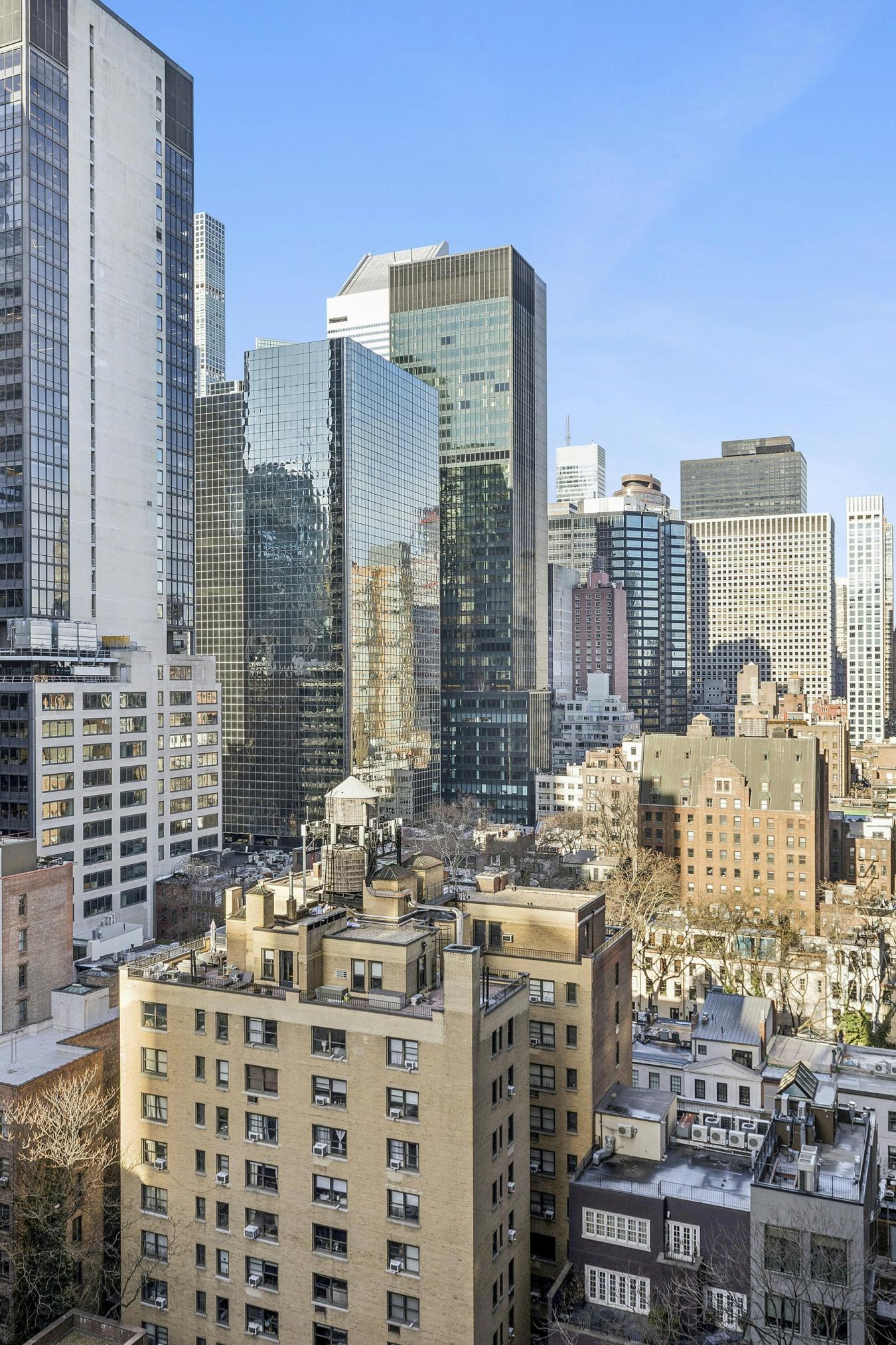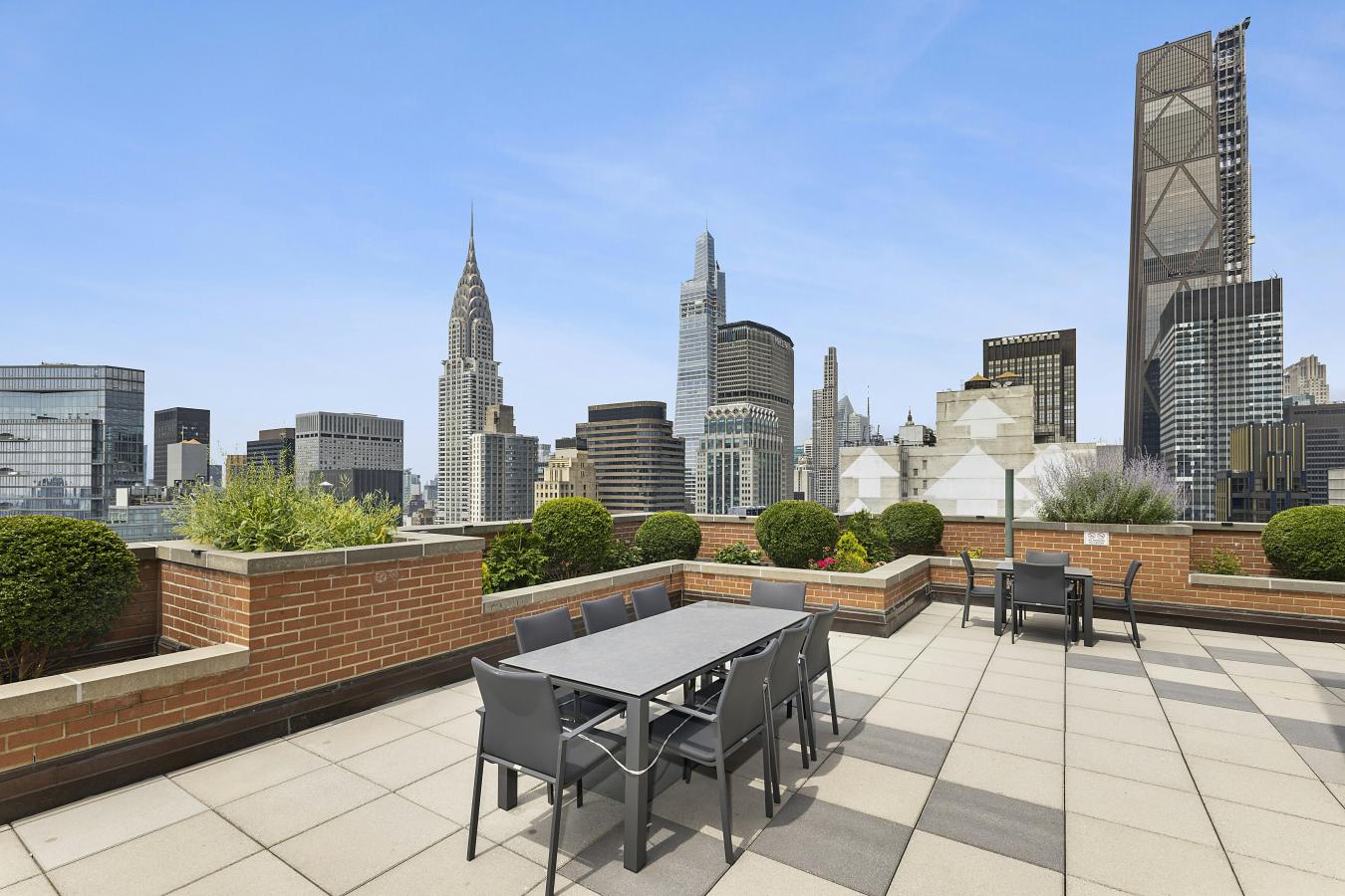 A loft-like home in a luxury condominium! This pristinely renovated, spacious two-bedroom residence offers sweeping northeast views of the Manhattan skyline through oversized windows. The expansive living area easily accommodates a full dining table, creating an ideal setting for both everyday living and entertaining. The separate, windowed kitchen is beautifully designed with seamless renovations and top-of-the-line appliances. The primary bedroom features an en-suite bath with a large window and a soaking tub. The second bedroom is well-proportioned, and the additional full bath has been newly renovated with a sleek shower. Additional highlights include beautiful hardwood floors, abundant custom-fitted closets, and an in-unit washer/dryer. The Club at Turtle Bay is a full-service, luxury condominium with a 24-hour doorman. Amenities include a stunning roof deck, a glass-enclosed rooftop lounge, resident superintendent, storage, and a central laundry room. Parking and a gym are available for a fee.