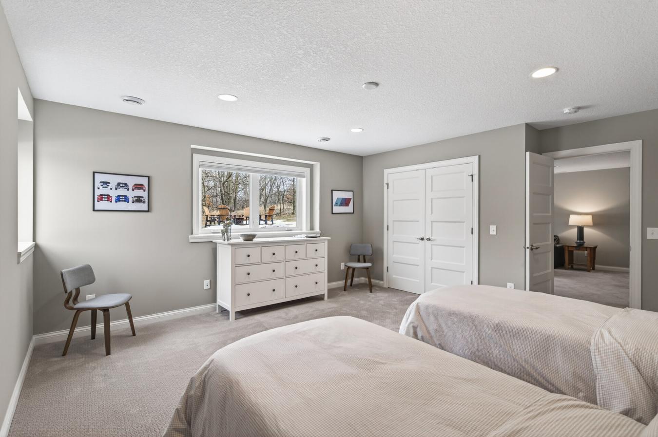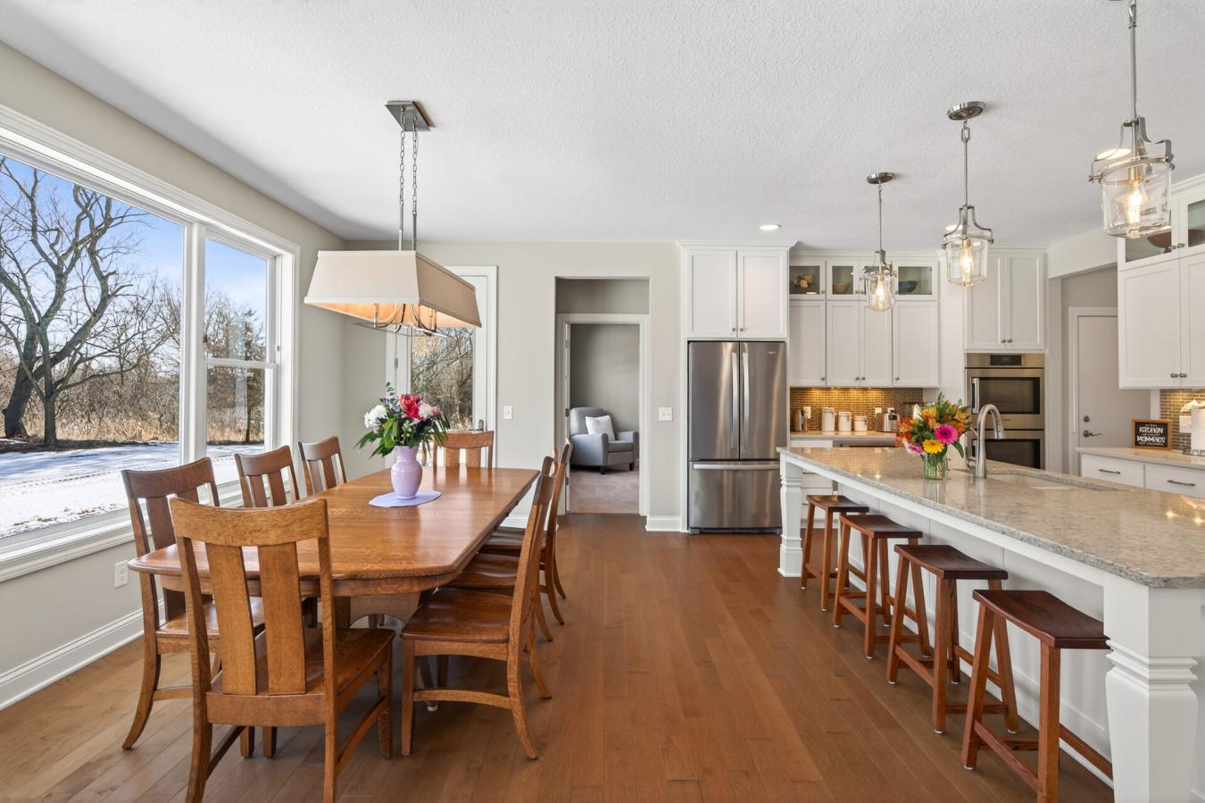 This exceptional 5-bedroom, 4-bathroom custom modern Craftsman offers an extraordinary blend of refined design, expansive living spaces, and breathtaking natural surroundings on 2.81 private acres of restored prairie in the Lakeville School District. With no neighbors behind the home and a scenic wooded backdrop, the setting provides remarkable privacy and serene, uninterrupted views.