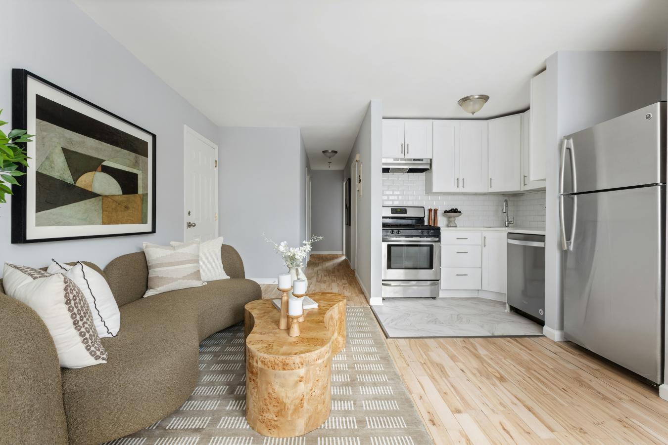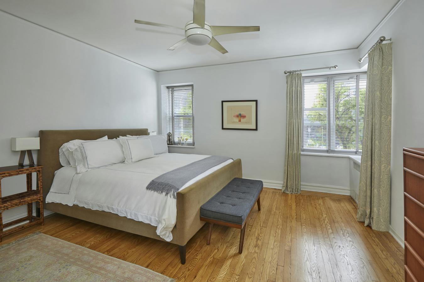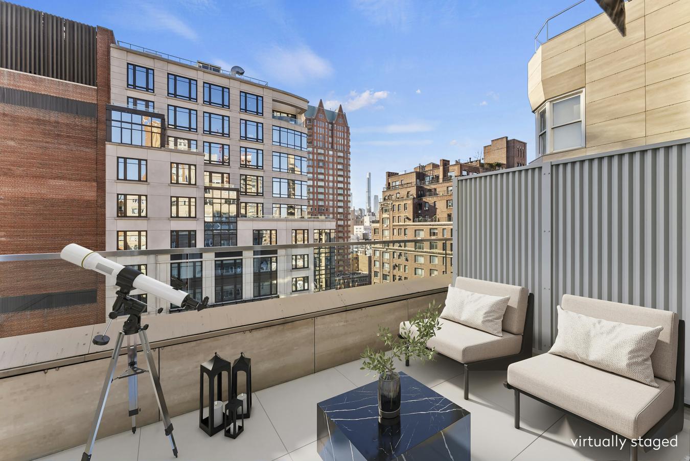 Beautifully renovated and thoughtfully converted from a one-bedroom into a true two-bedroom, this bright, one-bath coop offers exceptional indoor-outdoor living. Two private terraces with East, South, and West exposures provide open sky views and wonderful natural light all day.