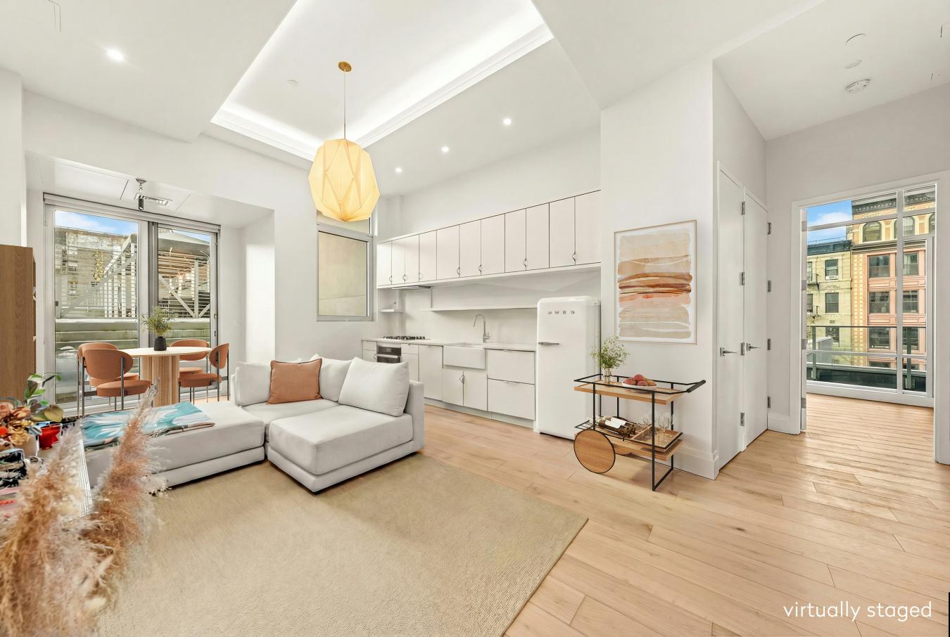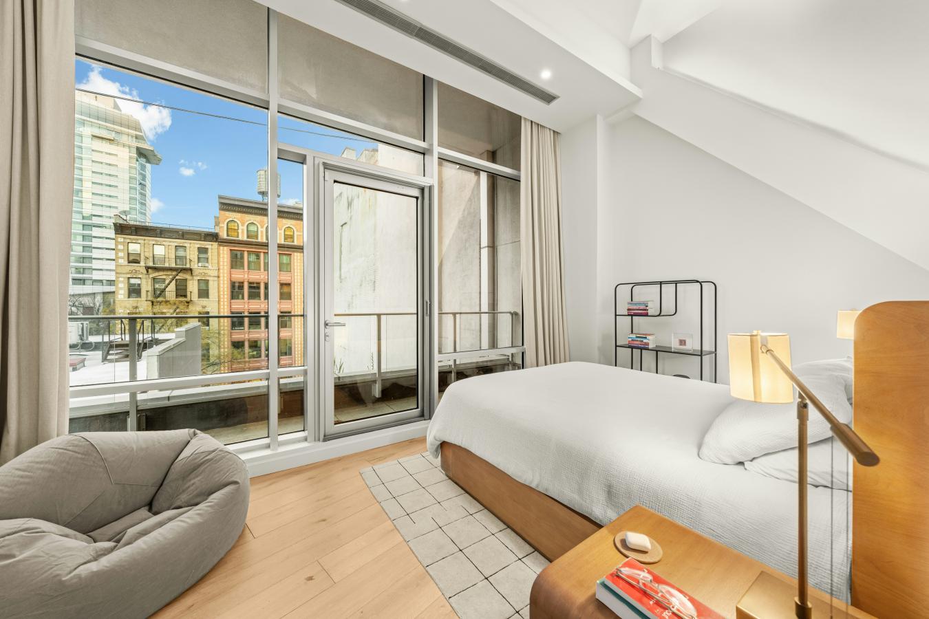 A striking, loft-like one-bedroom residence in a boutique luxury condominium with a pool, perfectly positioned at the crossroads of NoHo, the East Village, and Nolita. Upon entering residence 4N, youre immediately met with dramatic scale and light. Soaring 12-foot ceilings and oversized windows creates a spacious, modern atmosphere reminiscent of classic loft living.