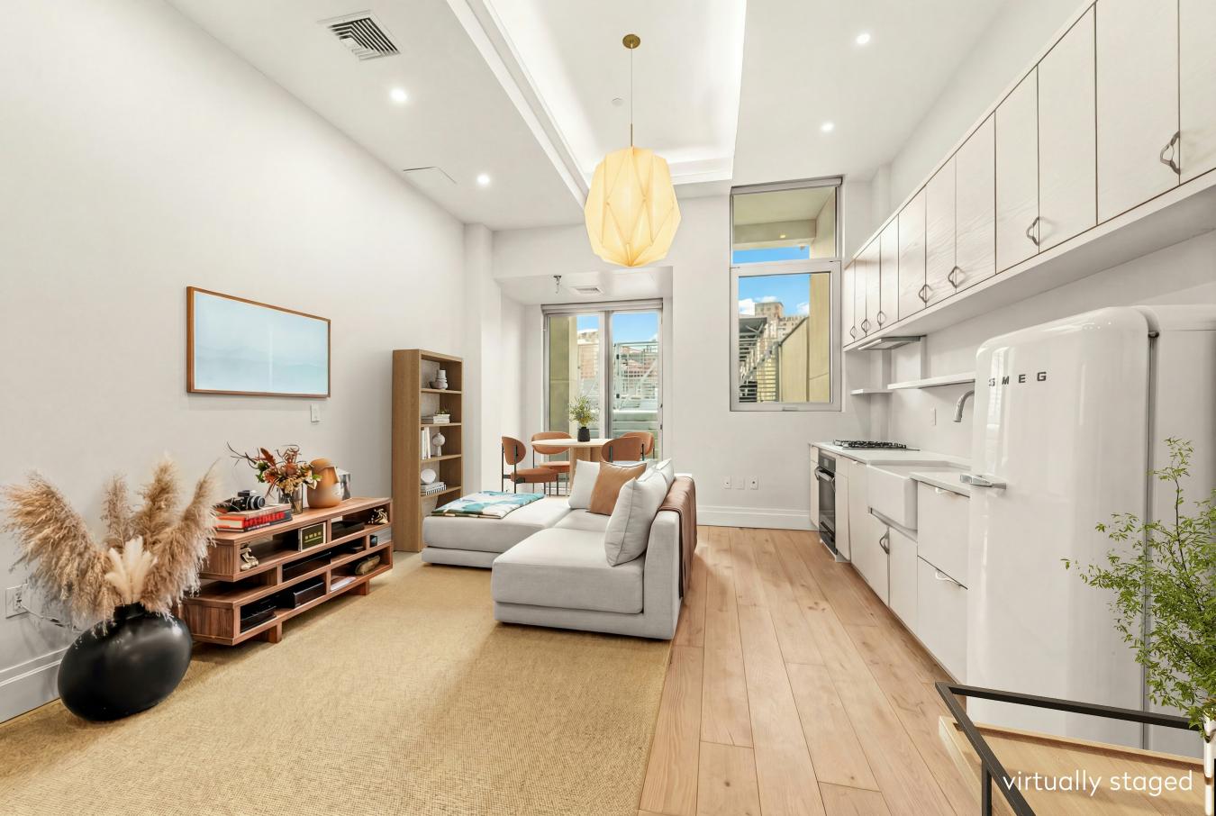 EXPANSIVE WEST CHELSEA LOFT 12 CEILINGS FULL-SERVICE CONDO Spanning 1,036 square feet, this sun-filled West Chelsea loft offers greater scale than many comparable one-bedroom residences.