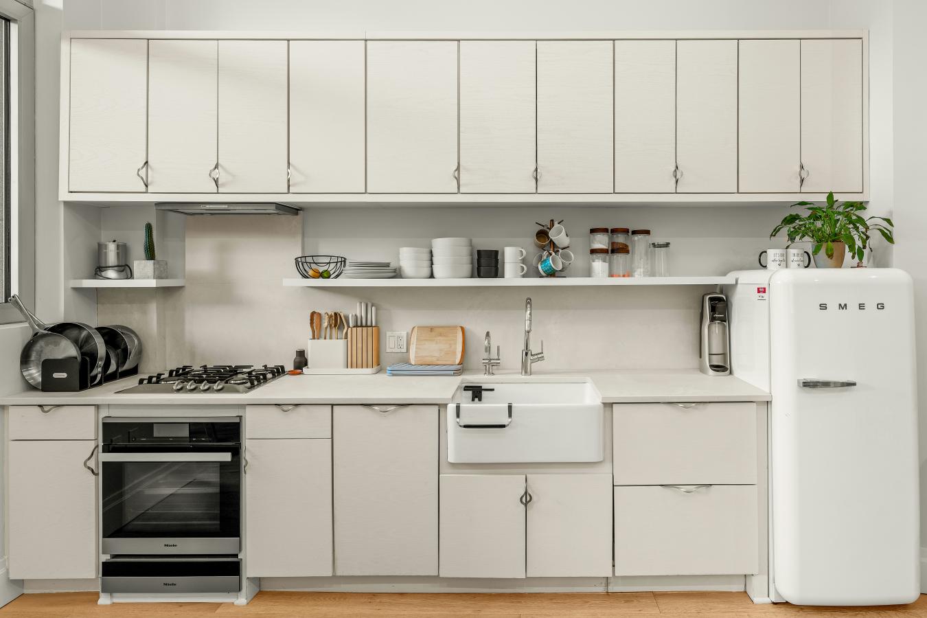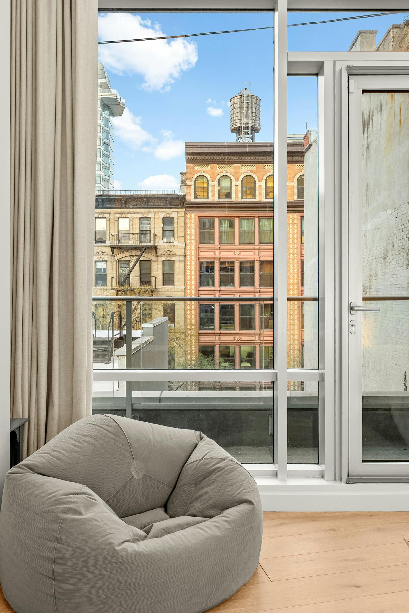 A striking, loft-like one-bedroom residence in a boutique luxury condominium with a pool, perfectly positioned at the crossroads of NoHo, the East Village, and Nolita. Upon entering residence 4N, youre immediately met with dramatic scale and light. Soaring 12-foot ceilings and oversized windows creates a spacious, modern atmosphere reminiscent of classic loft living. The expansive living area is ideal for both entertaining and everyday living, featuring a windowed dining nook and generous proportions throughout. The sleek kitchen is outfitted with new cabinetry and a premium appliance suite, including a Miele range and oven, a retro-style Smeg refrigerator, Sub-Zero freezer drawers, an integrated Miele dishwasher, and an in-unit LG washer and dryer to add everyday convenience. Just off the dining area, a private patio offers a seamless indoor-outdoor lifestyle. From there, six short steps lead to an expansive common sundeck centered around a tranquil swimming pool, complete with cabanas and loungers. This rare pool oasis in the heart of the East Village offers sweeping city views and an unparalleled escape from the energy below. The primary bedroom is flooded with natural light through floor-to-ceiling windows and features a glass door opening onto a charming private balcony. A custom double closet provides excellent storage, while the adjacent spa-inspired bathroom offers a deep soaking tub for relaxation. Throughout the home, wide-plank hardwood floors and abundant closet space reinforce the apartments refined, contemporary feel. 52 East 4th Street is a 15-story, award-winning boutique condominium designed by renowned architect Robert Scarano, with sophisticated interiors by Andres Escobar. Residents enjoy exceptional amenities, including a private on-site garage (available for rent), a part-time doorman, and a full-time superintendent. Just moments from the Bowery Hotel, Il Buco, Alta, BONDST, Frank, Whole Foods, Nolitas boutique shops, and cultural institutions such as the New Museum, this location places you at the heart of one of Manhattans most vibrant neighborhoods.
