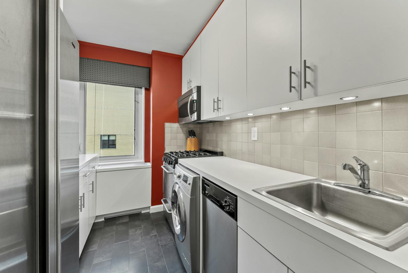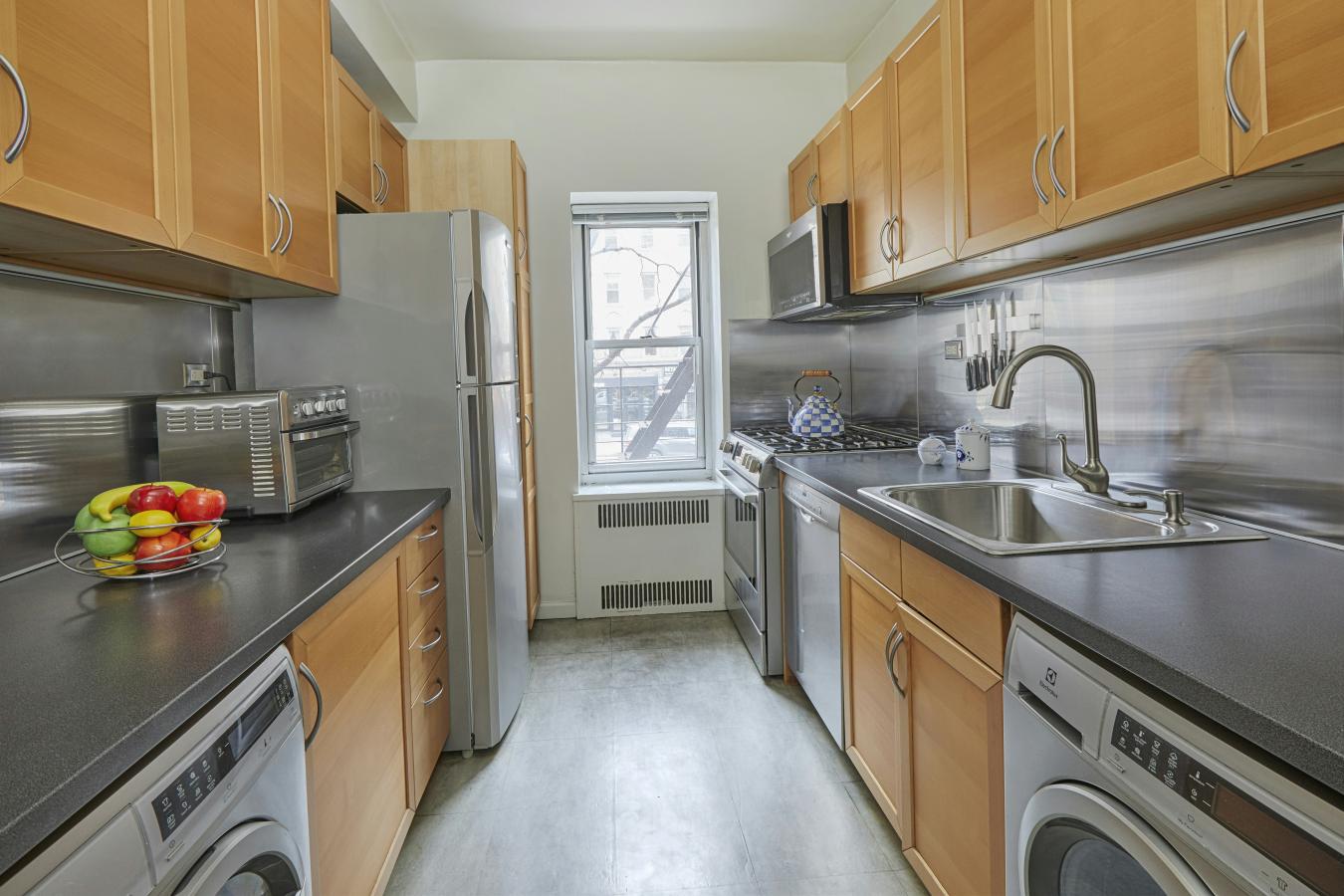 This is a chance to live in a brand new built from the ground up by GRADE NY (Architects/interior design Thomas Hickey) and CB development who brought you 173/175 Perry (Richard Meier) and Urban glass house (330 Spring) and now The Parker West - 214 West 72nd St on the Upper West Side. This European feeling boutique condo has two common outdoor spaces plus a fitness space on site as well. Residence #2B is an oversized 1BR home with soaring over 9 FT ceilings, a private Bosch washer dryer and a vented cooking hood in the kitchen. And a sink insinkerator! There is a zero entry glass shower in a spa like bathroom. This serene home faces south to gardens and blue skies over townhouses from the second floor of this glass and limestone condominium. The apartment is in move in mint condition. The Parker West on 72nd is located between Hudson River and Central Park with the express train on the corner. This is as good as it gets in one bedroom condominium living under two million. Do you cook? This incredible chefs kitchen features a vented hood that goes up to the roof. The open kitchen layout is perfect for entertaining and has custom Italian oak cabinetry with stunning millwork and honed marble slab counters and backsplash. The High-end appliances include a Miele refrigerator , freezer and dishwasher as well as a Bertazzoni gas range that vents outside. Dreaming of a spa like bathroom? Residence 2B has a decadent bathroom with heated floors (wow) & custom millwork and stone. There is honed marble - an oversized glass enclosed shower with that sought after and RARE zero entry feature, a custom medicine cabinet & most importantly radiant heated floors that keeping your toes warm. In addition, of course beautiful water works fixtures. Wish to control your environment? 2B has its own dedicated condenser. You can control your A/C and heat 365 days a year! The living room perfect for entertaining and has soaring ceilings over 9FT tall and oversized insulated windows with SOUTH views to a green filled happy space that feels calm and quiet. There are blue skies floating over townhouses nearby. Both the living room & bedroom feature stunning oak plank floors with a rare layer of acoustic sound protection above and below. The bedroom has generous closet space. This MINT 1BR condominium has a private Bosch washer dryer, which is very rare for a ONE bedroom. In addition, even rarer is this European feeling residence has its very own private rubbish spot to toss what you wish and you do not even have to leave your apartment. For extra privacy seekers this is the only residential unit on this floor. Perfect for those that dream of privacy in the big city. The Parker West condo has a 360-degree boutique roof deck upstairs with fabulous Hudson River and city views plus seating and a gas grill. There is a second outdoor green space downstairs as well. In addition, there is a boutique light and airy fitness room on premises. This 21 story brand new construction condo was conceived from the ground up by award-winning design firm GRADE New York. The building features a window wall and Limestone brick and has only 19 units. It is 100% owned and it has a PT lobby attendant 7 days a week in addition to the high end video security butterfly system plus a generator! All in the heart of NYC! Located near iconic culture destinations such as Lincoln Center, the MET, The Beacon Theatre, The Museum of Natural history, Planetarium and butterfly garden and more. Plus fabulous restaurants like Café Luxemburg, Tavern on the Green with 2 Parks (Central and Riverside ) Pier1 on the Hudson river café, Strawberry fields in Central Park , the express train 2,3 and 1, B, C local , Trader Joes on the corner , Citarella , Fairway , Zabars and more. Nearby shopping includes- The Bloomingdale fashion outlet, the Apple store w/a Genius bar all in your immediate area. Showings by private appointment 24 hours required. Good luck!