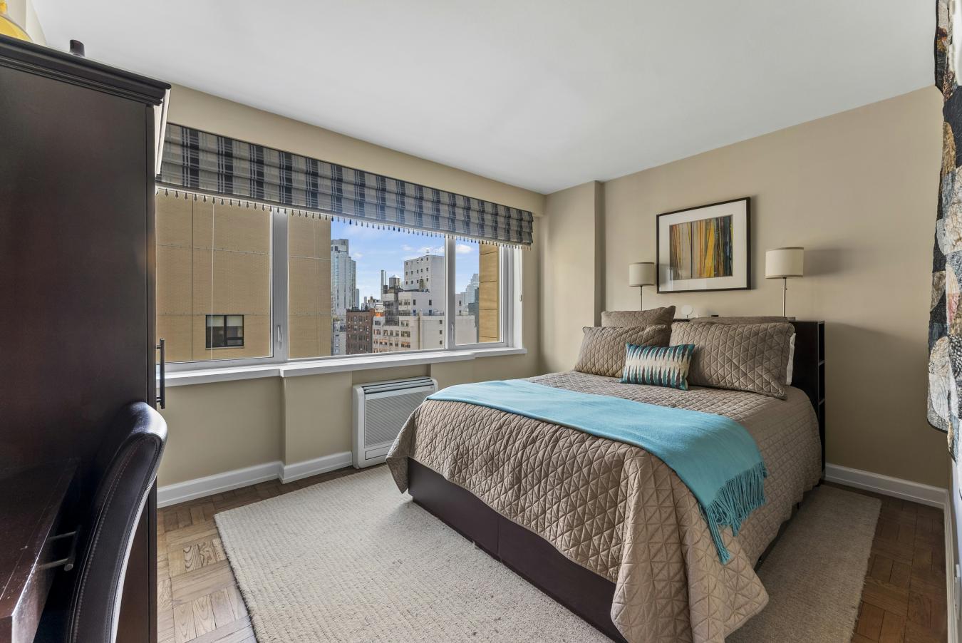Beautifully renovated and thoughtfully converted from a one-bedroom into a true two-bedroom, this bright, one-bath coop offers exceptional indoor-outdoor living. Two private terraces with East, South, and West exposures provide open sky views and wonderful natural light all day. Features include: Central A/C with thermostat-controlled HVAC Windowed kitchen In-unit washer/dryer combo New thermal windows Private storage included 201 East 79th Street has recently completed a striking facade transformation with an energy-efficient porcelain rain screen system, upgraded insulation, waterproofing, and structural improvements-enhancing both aesthetics and long-term value. This full-service, pet-friendly coop offers a 24-hour doorman, concierge, resident manager, package room, bike room, central laundry, private garden, roof deck, and on-site garage. Ideally located near Central Park, Museum Mile, dining, and shopping. Residence 17B is a rare opportunity to enjoy light, terraces, and full-service living on the Upper East Side.