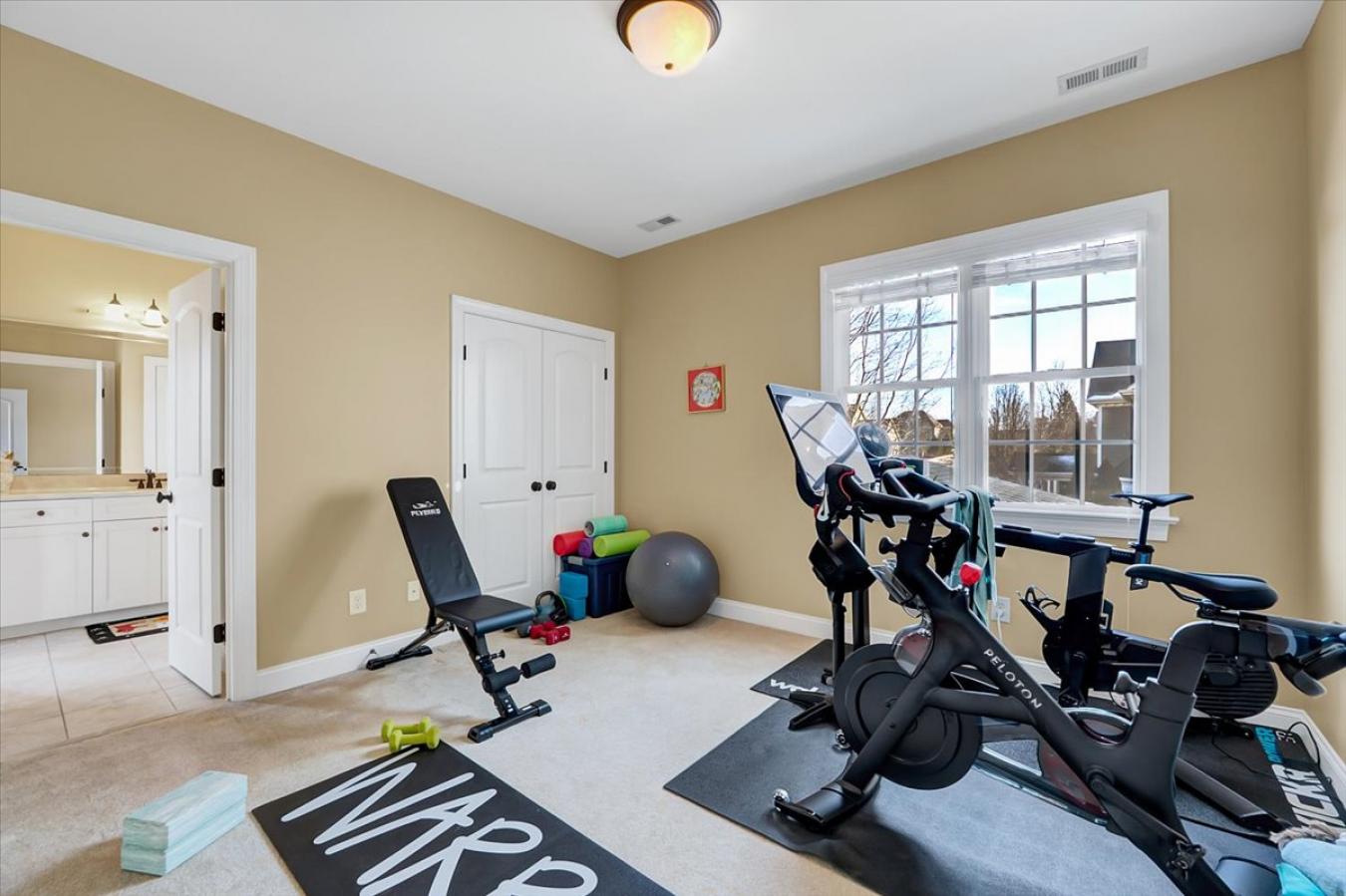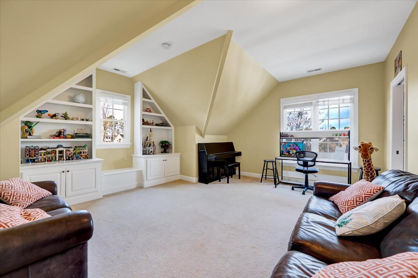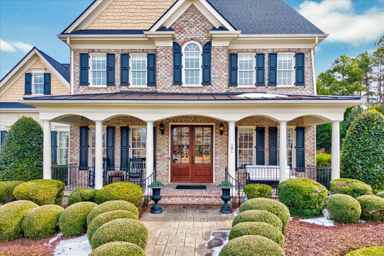 Rare opportunity in the highly desirable Weycroft subdivision of Cary. Located on a quiet cul-de-sac, this former Parade of Homes property offers 5 bedrooms and 4.5 baths with a flexible floor plan featuring a first-floor bedroom with full bath and a fully finished third-floor attic with built-in bar-ideal for a bonus space, home office, or theater room.