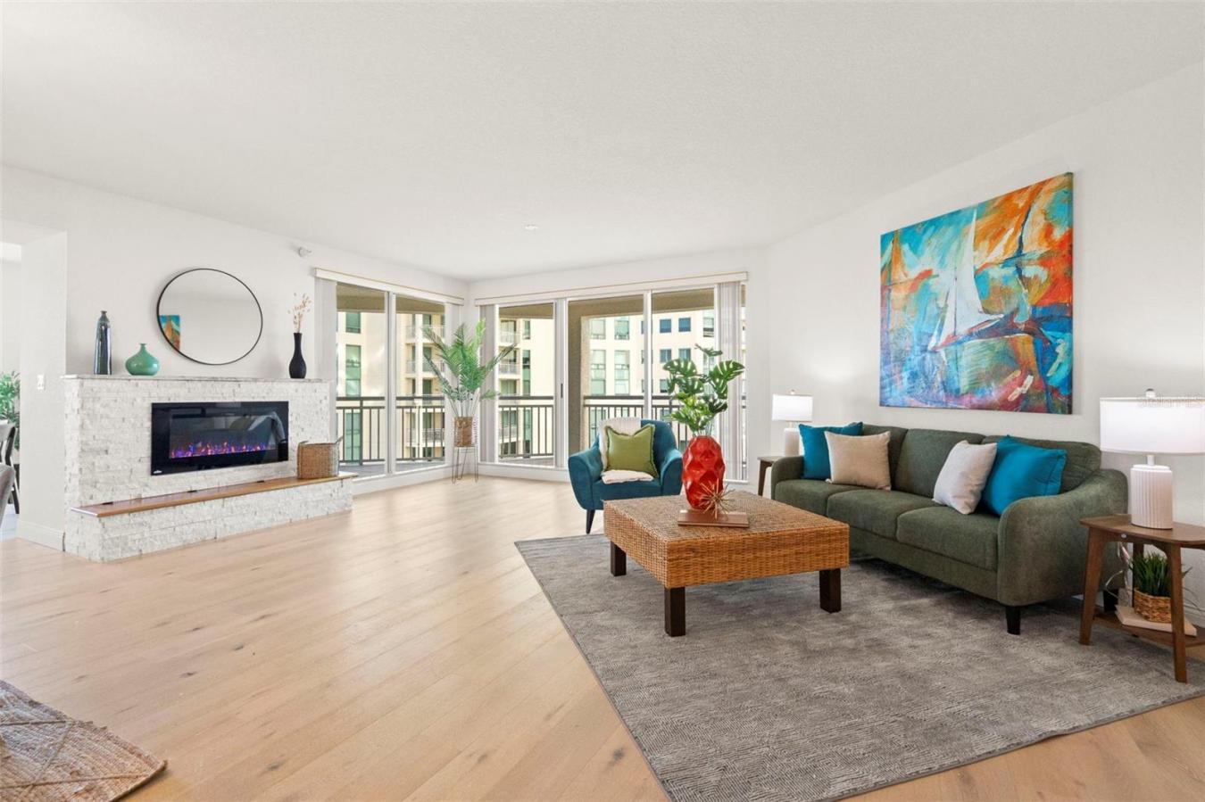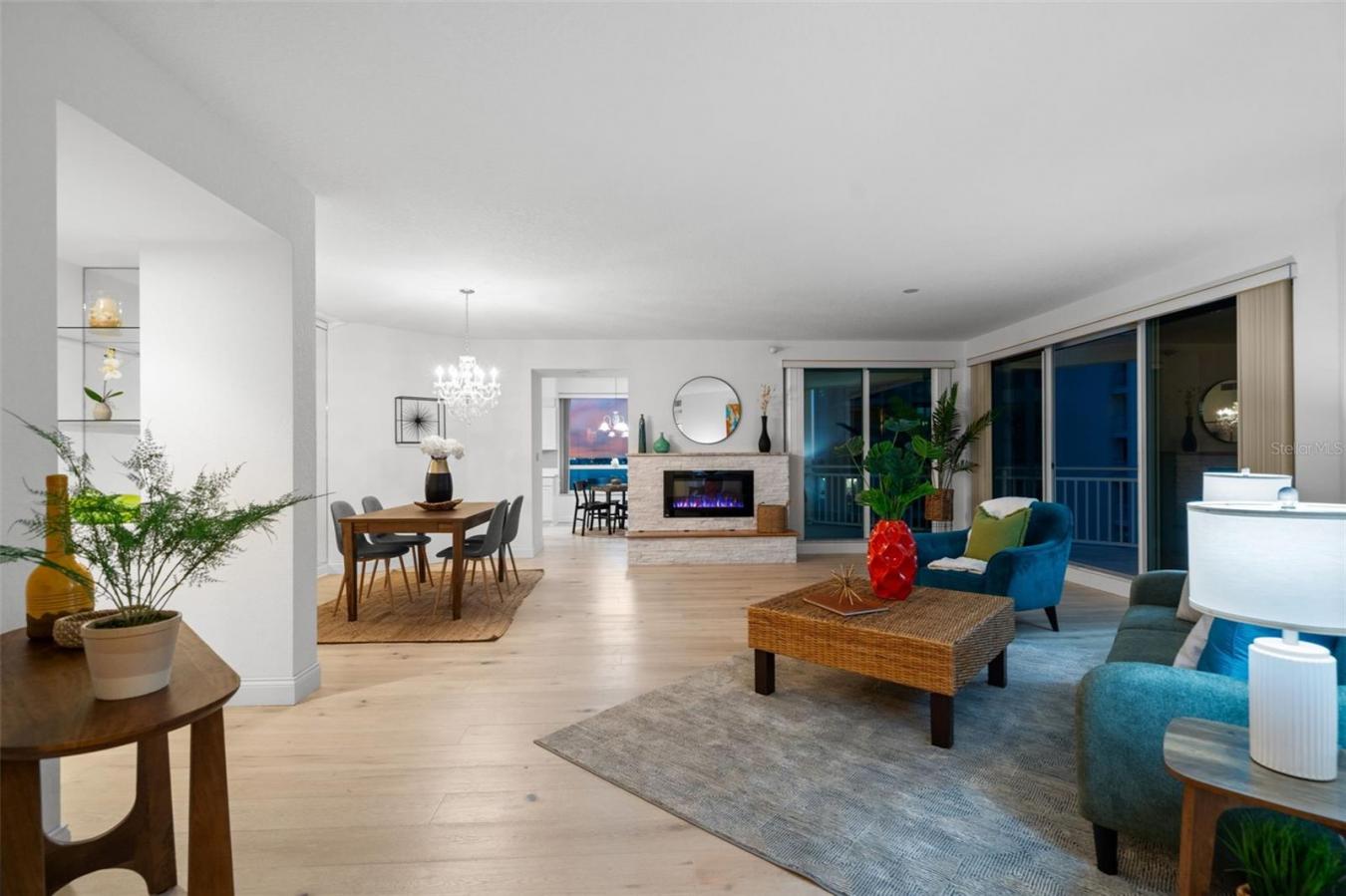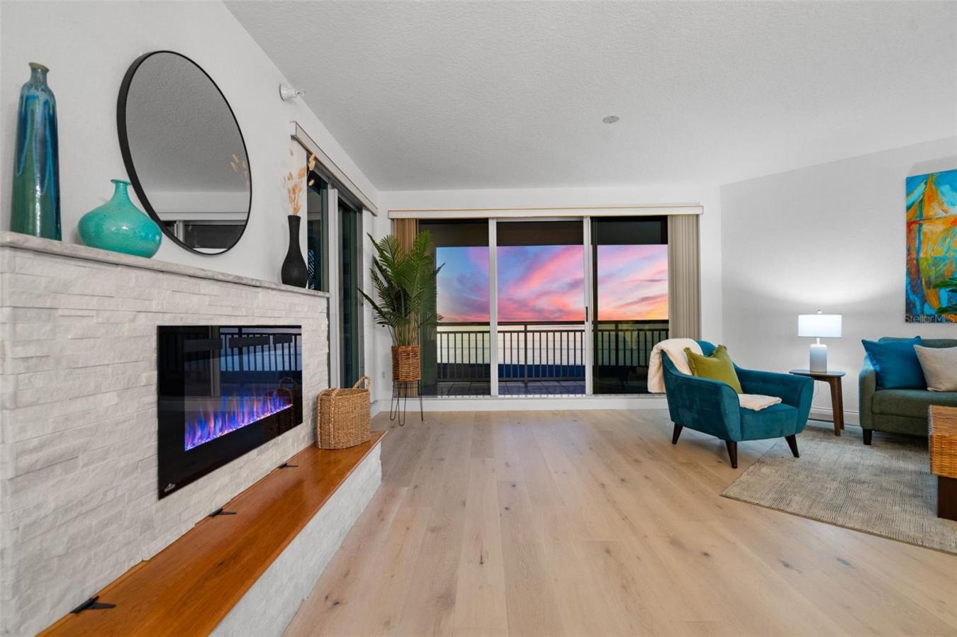 Immerse yourself in Gulffront opulence in this 3-bedroom, 2.5-bath corner-unit condo at The Grande on Clearwater Beach. Light-filled living spaces capture stunning sunrises over the Intracoastal and breathtaking sunsets over the Gulf. The eat-in kitchen features light cabinetry and abundant storage, flowing seamlessly into the main living area. The spacious primary suite offers a private porch, two closets including a walk-in, and a spa-inspired en-suite with double vanity, large walk-in shower, and separate water closet. A second bedroom with full en-suite bath and a flexible third bedroom ideal for guests, office, or den provide versatile living options. Storm shutters (2025), a custom electric fireplace, dedicated garage parking, and a private storage locker add value and convenience. Two wraparound balconies showcase panoramic water and city views. Residents enjoy 24/7 security and concierge, two pools and spa, fitness centers, clubhouses, tennis courts, dog walk areas, and private beach access all just steps from dining, shopping, and the trolley, and minutes to Tampa and St. Pete airports.