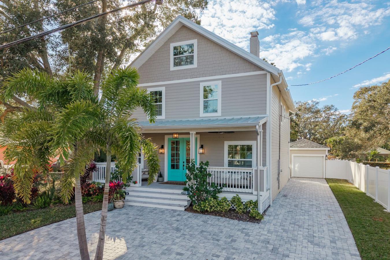 Welcome home to 623 1st Ave N in Safety Harbor FL that is set on a picturesque, tree-lined street, this beautifully reimagined 1925 residence radiates the charm, character, and warmth that define Safety Harbors most beloved homes. 4 bedrooms plus a den/home office and 5 full baths. From the moment you step onto the wide front porch framed by mature landscaping and double turquoise doors, the home feels inviting, soulful, and distinctly crafted. This location delivers the ideal Safety Harbor lifestyle. Enjoy effortless walks to downtown cafes, boutiques, 3rd Friday night events, Sunday markets and local festivals, and the iconic Safety Harbor Resort & Spa. Spend weekends exploring the waterfront vistas of Philippe Park, just moments away. Step outside and within minutes, hop onto the 13 mile Ream Wilson Trail for morning rides or evening strolls along the waters of Tampa Bay. Clearwater Beach and Tampa airport remain easily accessible, making travel and coastal adventures wonderfully convenient. Inside, nearly 3, 800 square feet unfold with a thoughtful blend of period charm and modern design. Rich millwork, plantation shutters, warm flooring, and a wood-burning fireplace anchor the open main floor and highlight the homes character. The living and dining spaces flow naturally into the designer kitchen featuring a 9-foot island, marble countertops, stainless steel appliances, pot filler, and an expansive butlers pantry. A first-floor office with custom built-ins offers an elevated work-from-home environment. At the rear of the home, a set of French doors opens to the backyard, creating a seamless indoor outdoor connection and enhancing the homes inviting, relaxed atmosphere. Upstairs, every bedroom is a true ensuite, offering exceptional comfort and privacy. The primary suite includes a large walk-in closet and a spa-inspired bath with a luxury soaking tub, dual vanities, and a multi-jet shower with multiple shower heads. A well-placed second-floor laundry adds daily convenience. The third floor provides flexible space ideal for a media room, playroom, studio, fitness area, or additional guest suite. Outdoor living is a defining element of this property. The welcoming front porch sets the tone for neighborly connection and slow, easy mornings with a cup of coffee. The back deck, accessed through French doors, overlooks a private tropical yard with new sod and irrigation, lush foliage, and fruiting Meyer lemon and lime trees. A charming cottage-style shed enhances the appeal and functionality of the space. A detached, oversized garage has been finished with air conditioning, butcher block counters, and shiplap walls. It includes a 12, 000-watt generator hook-up, pegboard walls, built-in cabinets, drawers, and abundant storage, making it an ideal gym, studio, workshop, or climate-controlled utility space. High-end upgrades such as impact windows and doors, CAT 6 internet, stainless steel appliances, marble countertops, and fully updated systems, including HVAC, plumbing, electrical, and water heater (all 2021). A new standing seam metal roof was installed in 2024. Non-flood zone, and no HOA, the home offers peace of mind alongside its unmistakable charm and character. Historic charm. Modern luxury. A walkable coastal lifestyle unlike anything else. Welcome home.