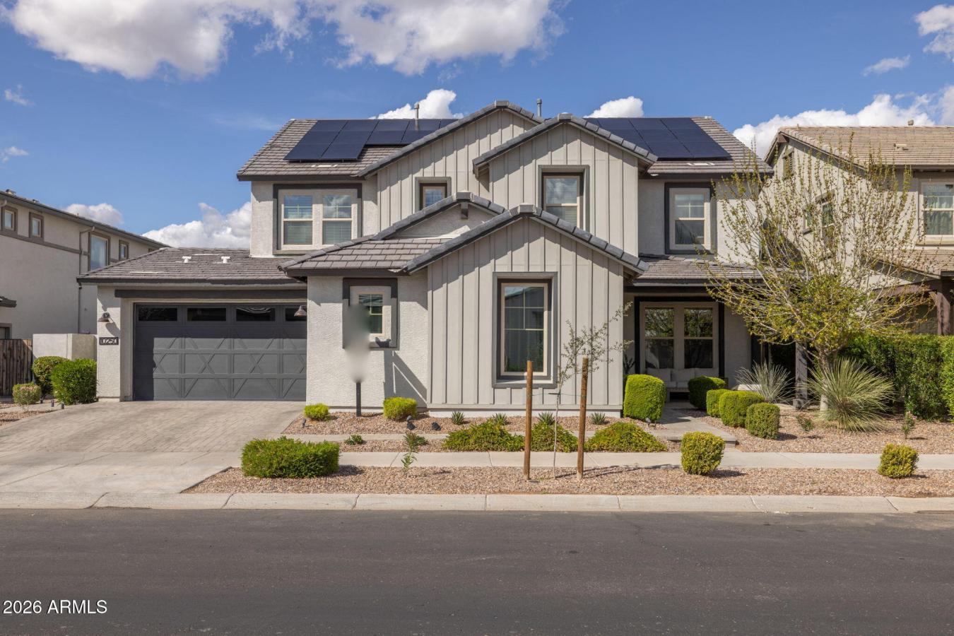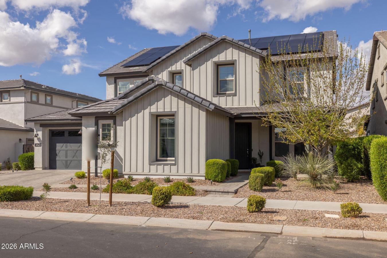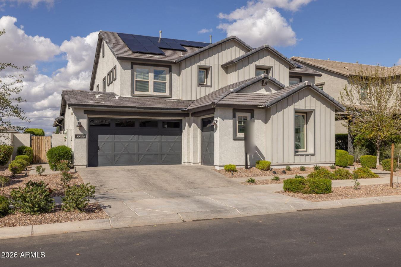 Welcome home to elevated living in Eastmark. From the moment you arrive, the curb appeal makes a statement with low maintenance desert landscaping, modern accents, a pavered driveway, covered front patio, and beautiful landscape lighting that highlights the homes charm. Step inside and youre immediately greeted by a bright, open feel and a stunning half spiral staircase with accent tile inlays.