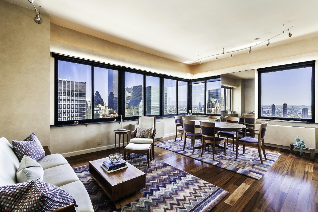 High-floor corner one-bedroom, one-and-a-half-bath residence with dazzling open views, thoughtfully updated and located at the coveted full-service Vanderbilt. On the 40th floor, as you enter the living room with a wall of large windows to the left you can nearly touch the Chrysler Building and to the right you can admire wide open East River views for miles to watch planes landing at LaGuardia airport. The pass-through chefs kitchen has an east-facing window and updated stainless steel appliances with wine storage. The large and warm living room welcomes a separate sitting area with home office desk and dining area capable of seating 8 for formal dinner along with custom track lighting and hardwood flooring throughout. Renovated powder room for guests is situated off the living room. The primary bedroom easily accommodates a king size bed and home office or seating area with a large walk-in closet and en suite renovated bathroom with shower door and custom light fixtures. Large foyer hallway provides privacy with large closet for storage and artwork. Living at The Vanderbilt Condominium is first-class living centrally located Midtown. The top notch amenities include the full-time doorman, the Vanderbilt Health Club (complimentary to all residents), featuring a double-level gym overlooking the 70 ft long swimming pool, a whirlpool Jacuzzi, multiple sauna rooms, a racquetball/half basketball court, ping pong and recreational area, sitting and television room and renovated locker rooms with a private massage lounge. The building has easy direct elevator access to the parking garage connected to the building (third party operated at an additional fee), a generous central laundry room, a pass-through driveway from 40th to 41st streets and on-site dry cleaners and salon. Grand Central Madison train station, One Vanderbilt and its headline restaurant Le Pavillon by Chef Daniel Boulud cements the future of this convenient location nearly around the corner from Grand Central and its massive transportation options, select buses heading north, south and west as well as the Midtown Tunnel. Whether you need to be in the heart of Midtown, north of Manhattan or Long Island, the neighborhood boasts amazing shopping led by Amish Market, the Grand Central Market, Trader Joes and Fairway all a short distance away while you are at the heart of world-class Midtown dining options. Sorry no pets permitted. Furniture can be purchased for an additional price (inquiry within for more details). Real estate taxes displayed may be reduced by 17.5% if purchasing as your primary residence (Consult your CPA). All measurements and square footages are approximate and all information should be confirmed by customer. Home is available for both lease and sale.