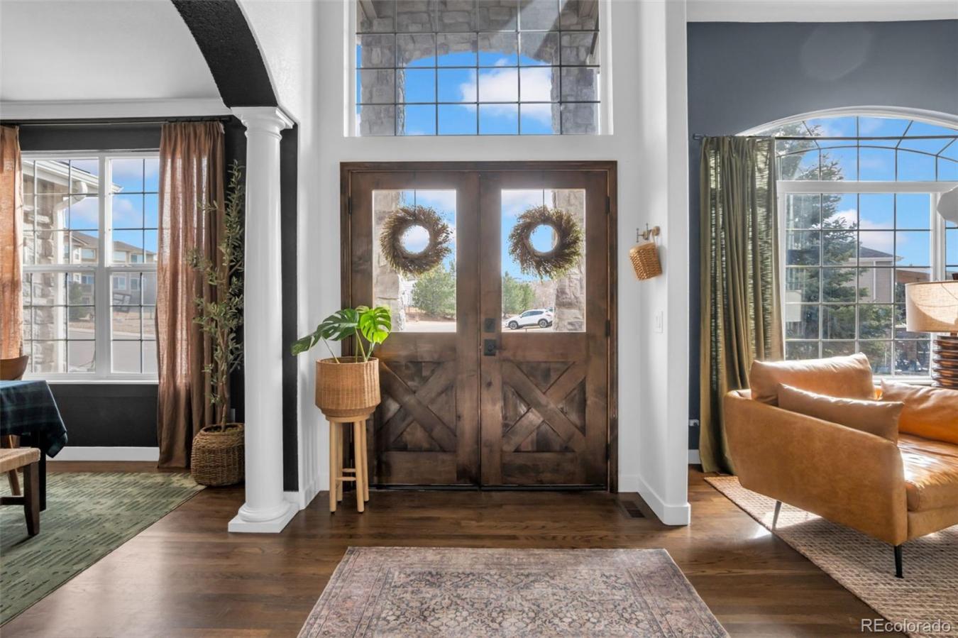 Experience elevated Colorado living in this beautifully remodeled golf course home with stunning views of the iconic Rock. Thoughtfully redesigned with a dramatic, high-end renovation, this residence blends modern luxury with timeless comfort in one of Castle Rocks most desirable settings. Step inside to discover rich hardwood floors flowing throughout the main living spaces, creating a warm and sophisticated foundation for the homes open and inviting layout. Sunny picture windows throughout the home flood the interior with natural light while perfectly framing the picturesque golf course and rock views. At the heart of the home, the stunning remodeled kitchen showcases stylish finishes, modern design, and exceptional functionality-perfect for both everyday living and entertaining. Upstairs, four bedrooms are conveniently located on the same level, including a secondary bedroom with its own en-suite bathroom, ideal for guests or multigenerational living. The expansive primary suite is a true retreat, featuring a private sitting room, a cozy fireplace, and a luxurious spa-inspired bathroom complete with a soaking tub, a glass-enclosed shower, and generous his-and-hers closets. The fully finished basement expands the homes living space with versatile areas perfect for entertaining, relaxing, or hosting guests. Outdoors, enjoy the peaceful golf course setting and breathtaking views that make this home truly special. All of this is within walking distance of the restaurants, shops, and charm of downtown Castle Rock. A rare opportunity to enjoy luxury, location, and lifestyle in one remarkable home. Across on the west side of I-25 in the not-so-distant future, youll also have a new Costco to enjoy! ASK ABOUT OUR INCREDIBLE LENDER INCENTIVES ON THIS ONE!