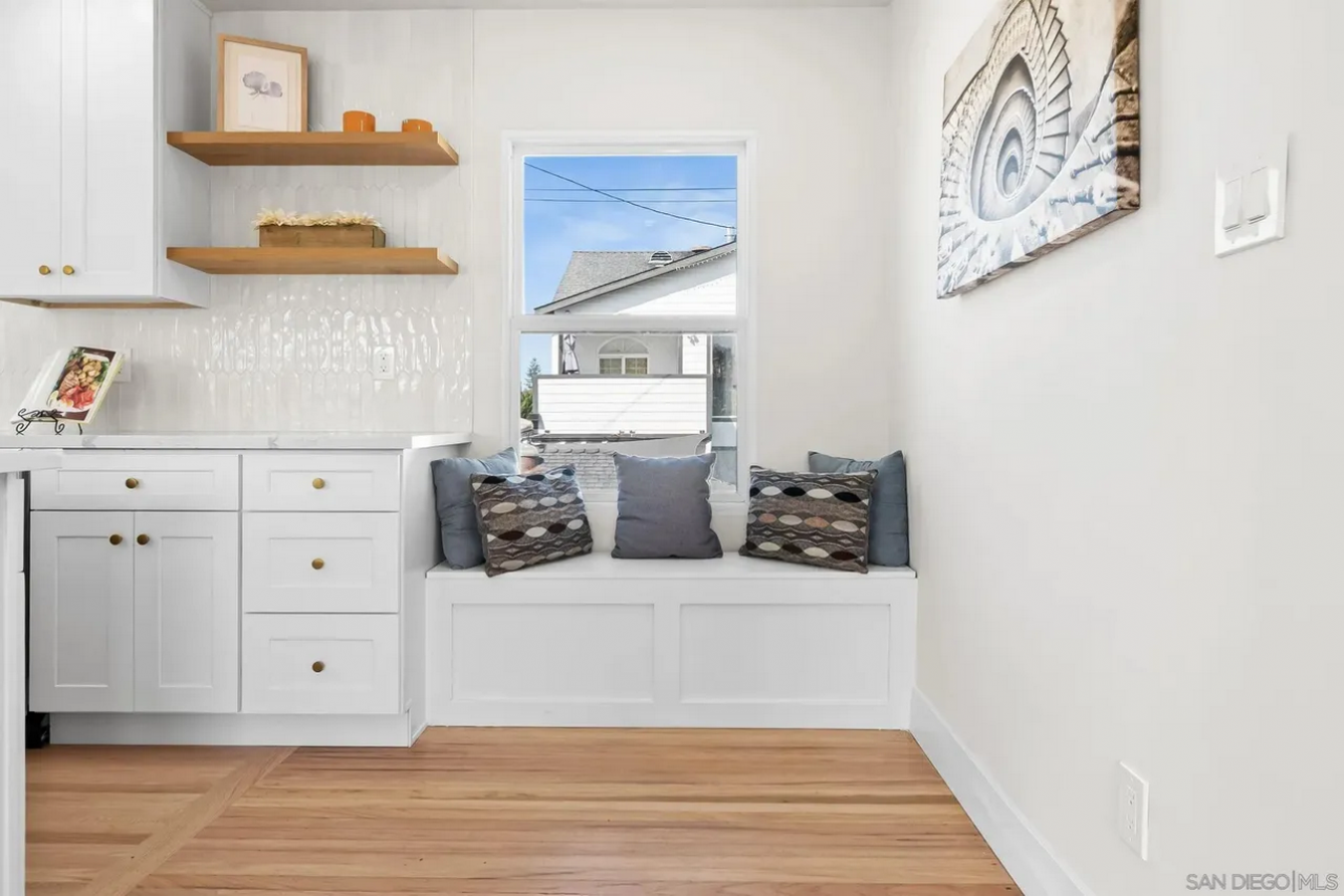 Fully renovated coastal retreat in the heart of Coronado Village. This beautifully redesigned 1BR/1BA residence has been thoughtfully opened to create an airy, light-filled living space with a seamless modern flow. Refinished oak flooring pairs effortlessly with fresh paint, recessed lighting, updated electrical, and clean-lined finishes throughout. The sophisticated kitchen showcases Calacatta countertops, shaker cabinetry, a full tile backsplash, floating shelves, and premium appliances, delivering both style and functionality. The spa-like bath has been completely refreshed with new tile flooring and surround, an updated vanity, an LED mirror, and designer fixtures. Additional enhancements include new windows, upgraded insulation, a new front door and hardware, attic improvements, in-unit laundry, and curated exterior updates. Moments from Coronados charming boutiques, restaurants, and beaches, this turnkey residence offers effortless luxury island living. Fully renovated coastal retreat in the heart of Coronado Village. This beautifully redesigned 1BR/1BA residence has been thoughtfully opened to create an airy, light-filled living space with a seamless modern flow. Refinished oak flooring pairs effortlessly with fresh paint, recessed lighting, updated electrical, and clean-lined finishes throughout. The sophisticated kitchen showcases Calacatta countertops, shaker cabinetry, a full tile backsplash, floating shelves, and premium appliances, delivering both style and functionality. The spa-like bath has been completely refreshed with new tile flooring and surround, an updated vanity, an LED mirror, and designer fixtures. Additional enhancements include new windows, upgraded insulation, a new front door and hardware, attic improvements, in-unit laundry, air conditioning, and curated exterior updates. Moments from Coronados charming boutiques, restaurants, and beaches, this turnkey residence offers effortless luxury island living.